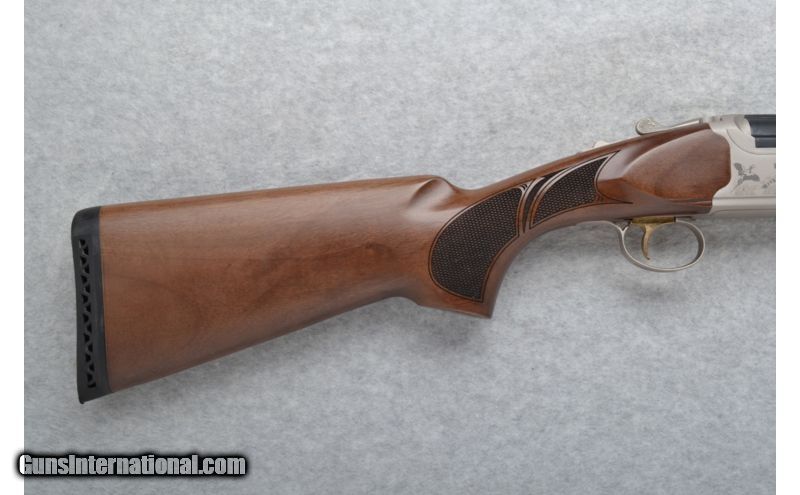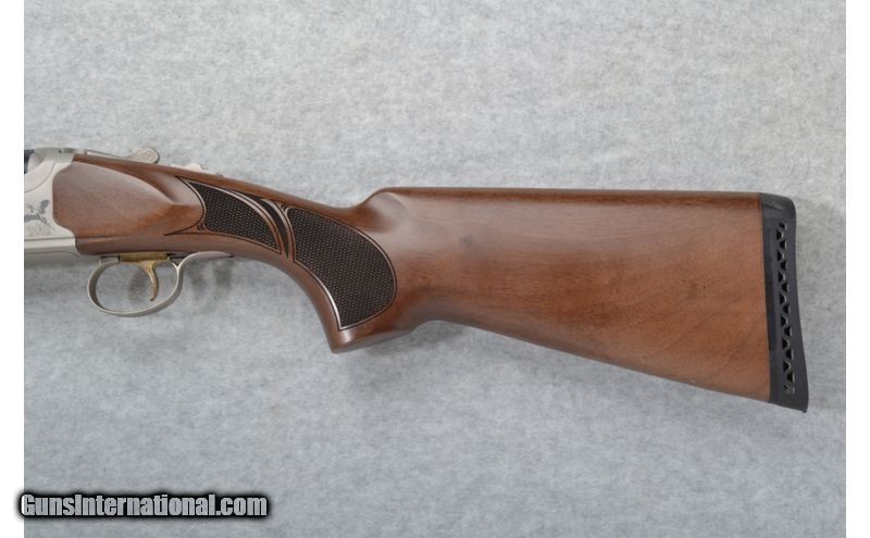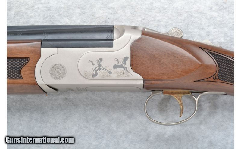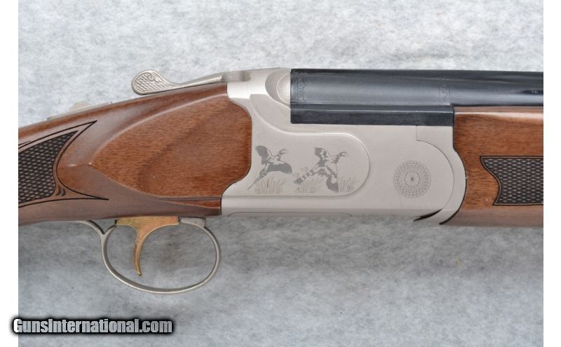 Description: Satin finish stainless steel receiver is etched with pheasants in flight. SOLD Manufacturer: Made in Turkey. Caliber Info: 12 GA Chambers: 3 inch. Metal Condition: Excellent. Wood Condition: Excellent. Bore Condition: Shiny Barrels: 28 inches with ventilated rib barrels. Triggers: Single gold. Stock: Checkered walnut pistol grip. Stock Dimensions: LOP 13 7/8 inches. Fore End: Checkered walnut with finger grooves. Butt Pad: Black rubber recoil pad. Weight: 7 lbs. 3 oz. Sights: Green bar high visibility front. Chokes: Tubes. Item Location: Richfield, WI |