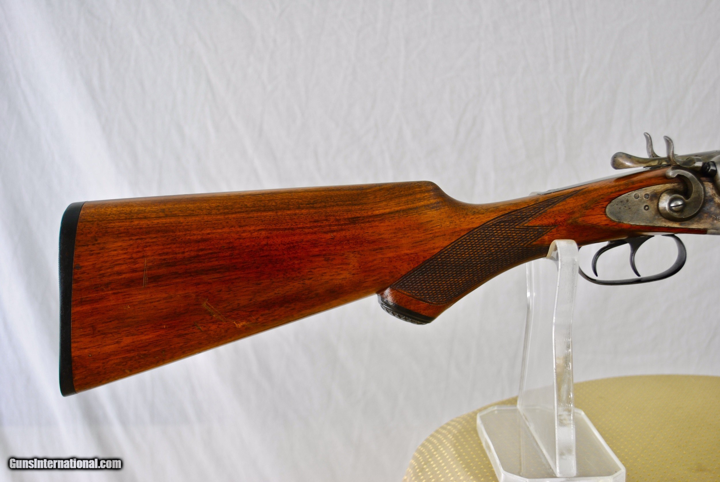 Description: Here is a Meriden Arms Special 12 gauge with a nearly new set of Briley Internal 20 gauge tubes. This high condition gun has original finishes with lovely black and white damascus barrels. The 12 gauge barrels have mirror bores. The right barrel measures .729 with 35/1000 choke (Full) while the left is .727 with 37/1000 Choke (Full). Chambers are 2 3/4". The 20 gauge Briley tubes measure .615 and have Skeet and IC Chokes. Chambers are 2 3/4". All serial numbers match on this gun. No cracks to the wood. Tight on face. Rebounding hammers. Weight of gun with Briley tubes installed is 8 LBS 9 1/4 OZ. Without the 20 gauge tubes the weight is 7 LBS 10 1/2 OZ. Shipping is $50. Can ship to C&R holders. Stock dimensions follow. LOP - 14" Drop at Comb - 1 1/2" Drop at Heel - 2 5/8" For inquiries please call Guy - 407-721-3748 SOLD Curio/Relic: Yes Shotgun Gauge: 20 Gauge |