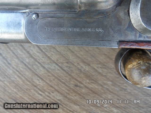 Description: 1908 ERA. MERIDEN FIREARMS CO,MODEL 82 12GA.SIDELOCK DOUBLE BARREL SHOTGUN,SOLID AND OVERALL ALL EXCELLENT ORIGINAL CONDITION.LOCKS UP AS TIGHT AS FORT KNOX. 32" SOLID RIB STEEL BARRELS WITH EXCELLENT BRIGHT BORES AND NO DENTS.90% ORIGINAL BARREL BLUE REMAINS.CHOKED FULL AND FULL.2 3/4" CHAMBERS, ALL MATCHING S/N 2842X .SIDELOCK S HAVE ORIGINAL FADED CASE COLORS PRESENT.ORIGINAL CHECKERED WALNUT STOCKS WHICH ARE VERY SOLID AND HAVE A FEW OLD HANDLING MARKS.ORIGINAL L.O.P. IS 14" OVER FACTORY PLATE.GUN WEIGHS IN AT 8 LBS.GREAT DUCK AND GOOSE GUN OR COWBOY ACTION GUN. 959.00 PLUS 40.00 SHIPPING.GOD BLESS YOU AND AMERICA.CALL MIKE OR DANNY AT 828-698-8804 IF NEEDED. SOLD |