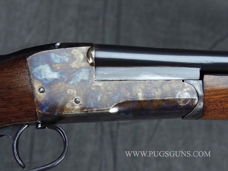 Description: This shotgun could have been built by L. C. Smith, Iver Johnson, J. Stevens, or a number of other American makes. Originally sold as \"utility grade\" guns, it is rare to see these models survive with so much remaining condition. SOLD Manufacturer: Newport Model: Model CN Serial Number: T22XXX Ejectors: Yes Barrels: 26 in Barrel Type: Solid Rib Action: SxS Triggers: Double Triggers Gauge Info: .410 ga Stock Comb: 1 11/16 in Stock Heel: 2 1/2 in Fore End: Splinter Forend LOP: 14 1/8 in Weight: 6 lbs 2 ozs |