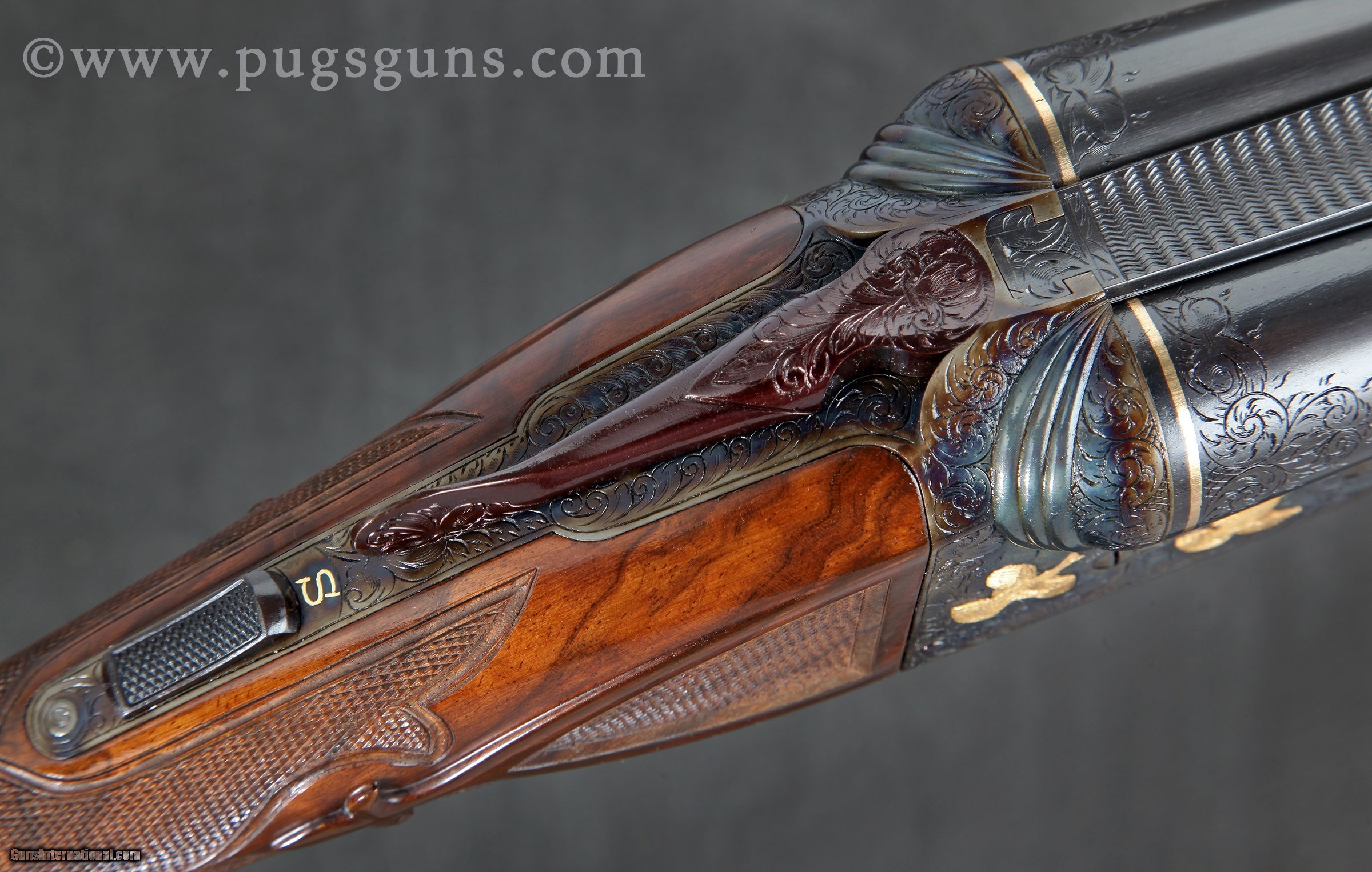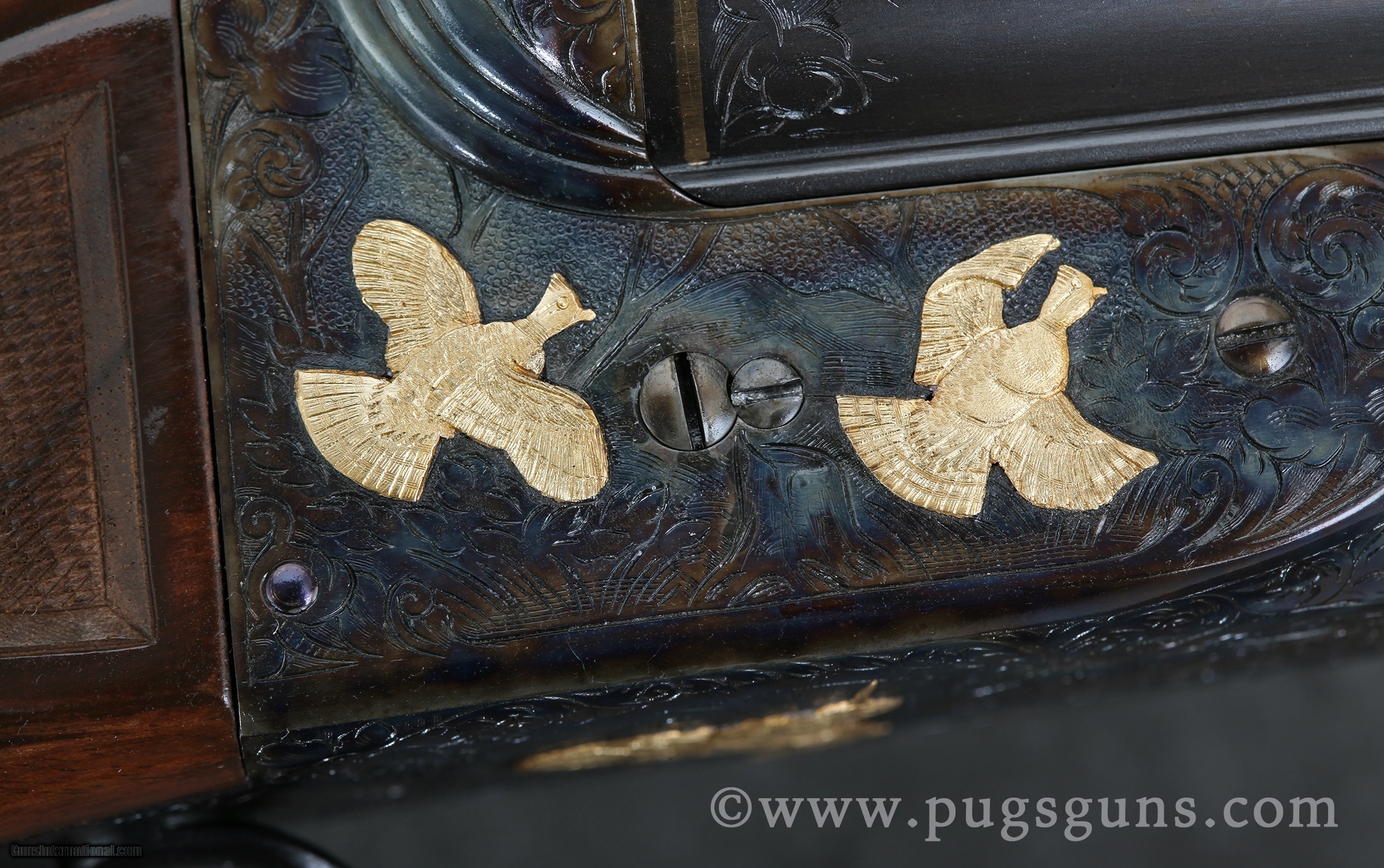 Description: "Engraved by Walter Kolouch ref#7851 SOLD Manufacturer: Parker Model: A1 Special by Walter Kolouch Serial Number: 12-xxx Ejectors: Yes Barrels: 28 Action: SE Triggers: Single Trigger Gauge Info: 12 Gauge Fore End: Splinter Butt Pad: Plate LOP: 14 1/4 Weight: 7 lbs. |