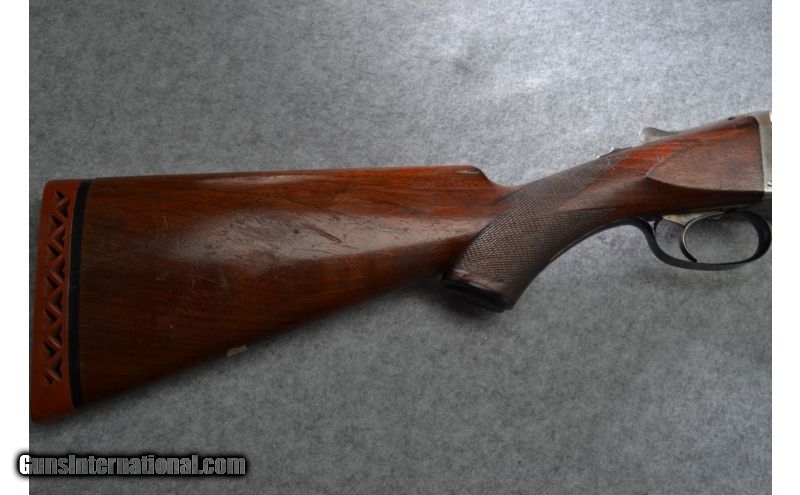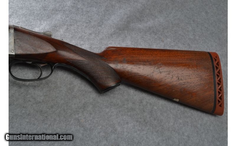 Description: A nice Parker Brothers VHE with factory trigger, 30" barrels choked full and mod. Stock is set cast on for LH use. SOLD Manufacturer: 1910 Ser #150XXX Caliber Info: 12 Gauge Chambers: 2 3/4 Metal Condition: Barrel is good with faint case color on reciever Wood Condition: Good with scratches and dings Bore Condition: Shiny Barrels: 30" w extractors Triggers: Single - blued Stock: Walnut pistol grip stock with checkering Stock Dimensions: 13 3/4" LOP / Cast on for LH Fore End: Walnut with checkering Butt Pad: Hawkins red butt pad Weight: 7.9 lbs Sights: Solid rib and bead Chokes: Full/Mod Item Location: Woodbury, MN |