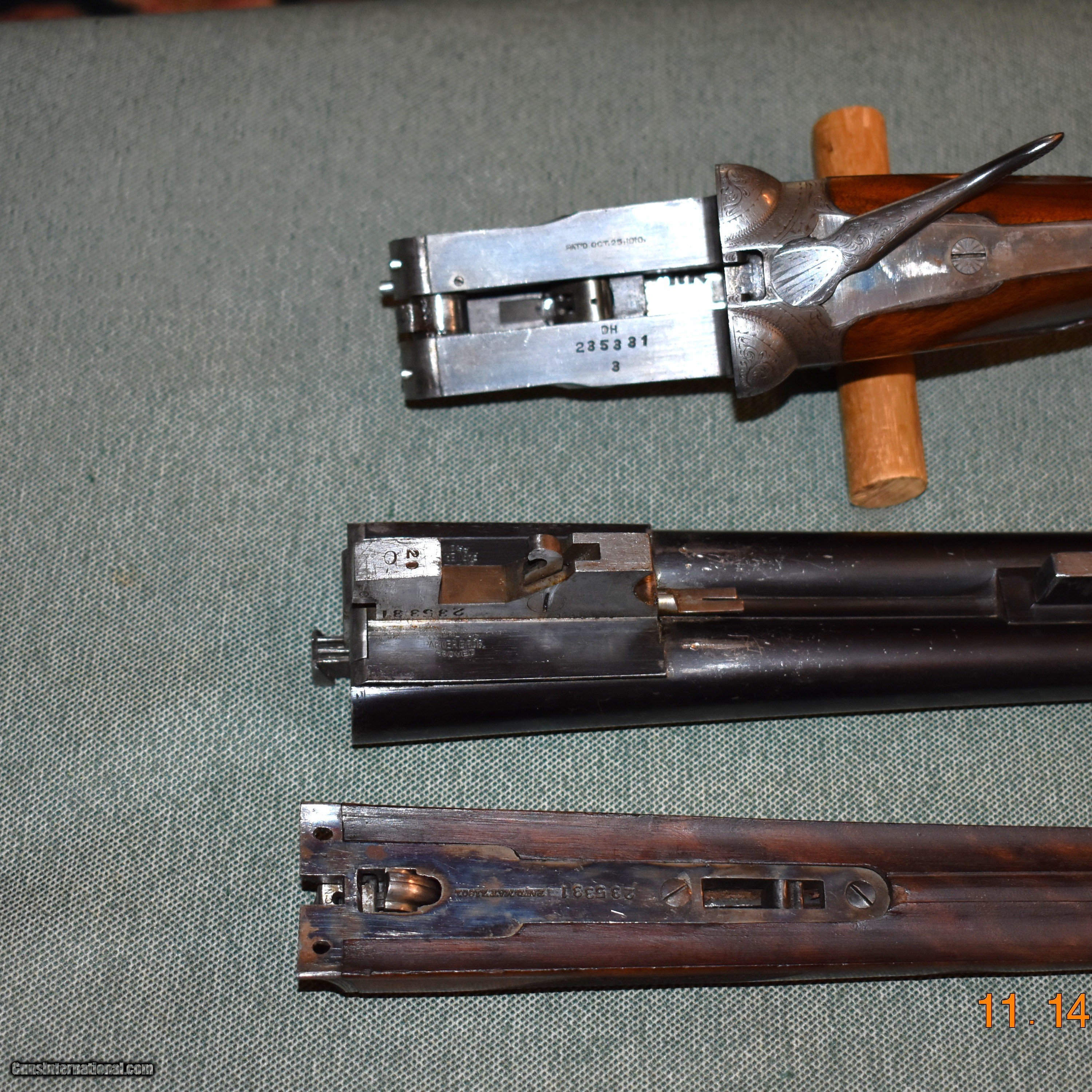 Description: Parker Bros. 20 gauge DHE grade built in 1930. It has 30" Titanic steel barrels choked modified (.015") and improved modified (.023"). The gun is in excellent original condition retaining 50% of the original case colors and 95% of the original barrel blue. It has a capped pistol grip stock,double triggers,and ejectors. It is built on an O frame and has 141/8" length of pull over a solid red recoil pad. The bores are mint and the barrels are on face and lock up tightly to the action. This is a classic Parker in an unusual configuration. A great dove,pheasant, or clays gun. Price includes shipping to your FFL or C&R. Curio/Relic: Yes Shotgun Gauge: 20 Gauge Manufacturer: Parker Bros. Model: DHE Serial Number: 235331 Barrel Length: 30 Chambers: 23/4 Ejectors: Yes Condition: excellent Metal Condition: excellent Wood Condition: excellent Bore Condition: mint Barrel Type: Titanic Steel Action: Double Barrel Triggers: Double Butt Pad: Aftermarket pad Choke Left: Improved Mod (.023'')") Choke Right: Mod (.015") Engraving: DHE Price: $11,900.00 Contact Seller |