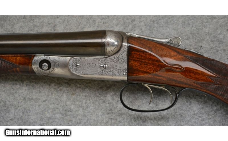 Description: Very Good condition overall for its vintage. Stock has been refinished. Built on the No. 2 frame. SOLD Manufacturer: Circa: 1903 Caliber Info: 12 Gauge Chambers: 2 3/4 Metal Condition: Very Good Wood Condition: Excellent Bore Condition: Very Good Barrels: 30" Titanic Steel Barrels Triggers: Double Triggers with Extractors Stock: Checkered Walnut Pistol Grip Butt Stock Stock Dimensions: DAC: 1 3/8", DAH: 2 1/4", Cast off: 1/8", LOP: 14 3/8 Fore End: Checkered Walnut Splinter Style with Engraved Irons Butt Pad: Skeleton Style Plate with Checkered Wood Weight: 7 lbs. 8 ozs. Sights: Single Front Bead Chokes: Fixed: FULL & FULL Item Location: Hamburg, PA |
