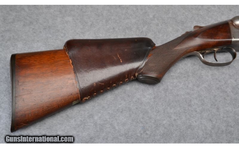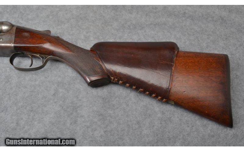Description: No case color remaining. Barrels show muzzle wear and brown patina. Stock covered with lace-up leather pad. SOLD Curio/Relic: Yes Manufacturer: S/N 93XXX Caliber Info: 12 Gauge Chambers: 2 9/16 Metal Condition: Good Wood Condition: Good Bore Condition: Good Barrels: 28 Triggers: Factory Double Stock: Checkered Walnut Stock Dimensions: 14" LOP Fore End: Checkered Walnut Butt Pad: Factory Black Plastic with Dogs Head Weight: 7 3/4 lbs Sights: Steel Bead Front Chokes: Cyl/Mod Item Location: Columbus, OH |