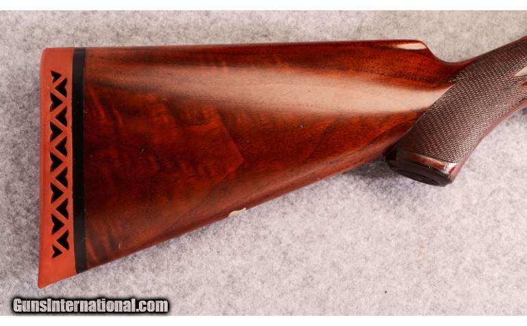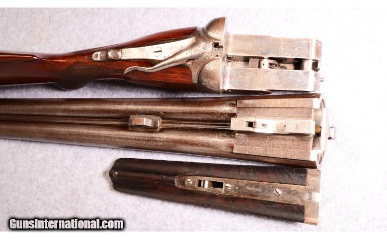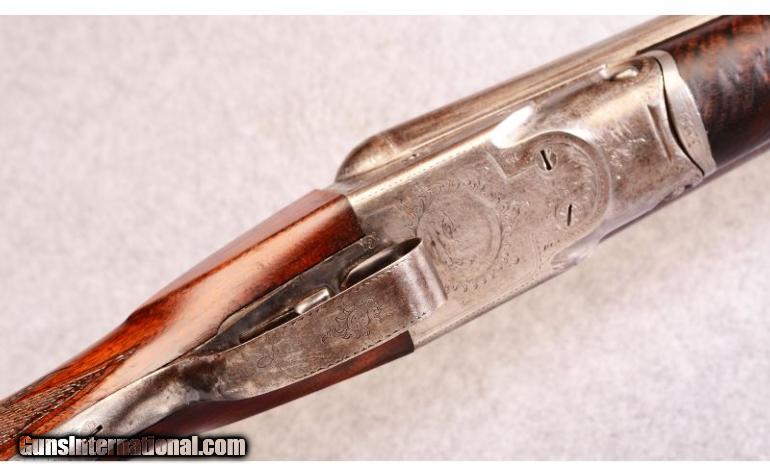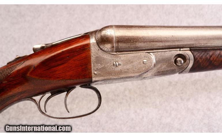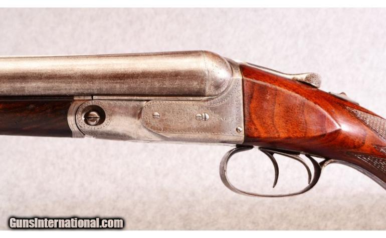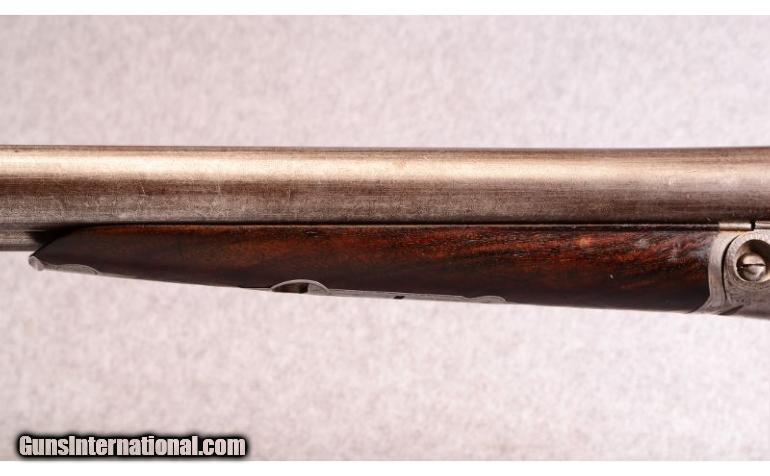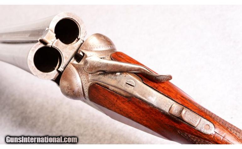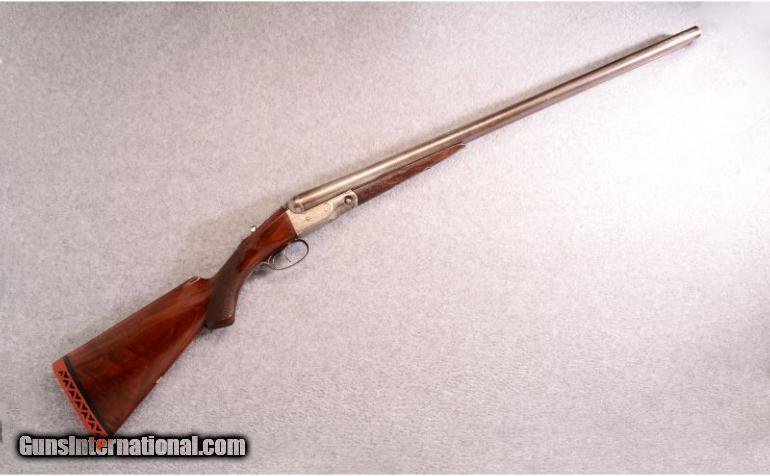 Description: Marked on barrel rib "Parker Bros Makers, Meriden, Conn. Damascus Steel". Gun is a grade 2 (E). SOLD Manufacturer: Possibly late 1880's or early 1890's as hammerless guns up to serial number 55295 were made in 1888 Caliber Info: 10 Gauge Chambers: 3 Inch Metal Condition: Barrels have a nicely faded Damascus pattern with little if any marks or scratches. Silver engraved receiver in good condition with some fading (Silver Patina) and no dings or deep scratches. Wood Condition: Very good - some dings and marks Bore Condition: Very good - nice and bright Barrels: 30 Inch Damascus Triggers: Double non-selective Stock: Checkered pistol grip with cap on satin finished select walnut Stock Dimensions: 13 7/8 " LOP Fore End: Well worn checkered walnut splinter - possibly not original to the gun as is numbered 104806 (Gun serial number is 68770). Butt Pad: Hawkins 1" vented rubber Weight: 9 Lbs, 6 Ozs Sights: Bead on ramp Extras: Rare fishtail lever frame Item Location: Charleston, WV |
