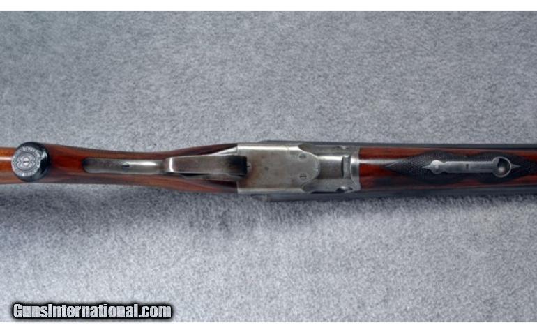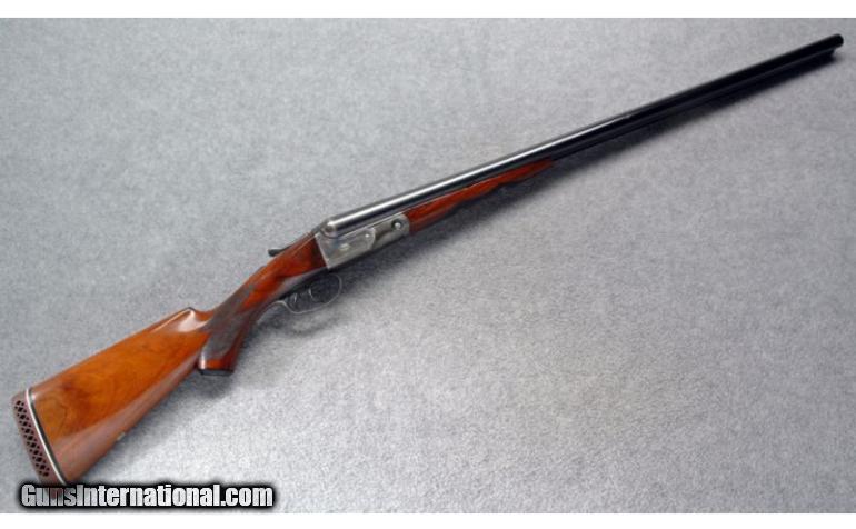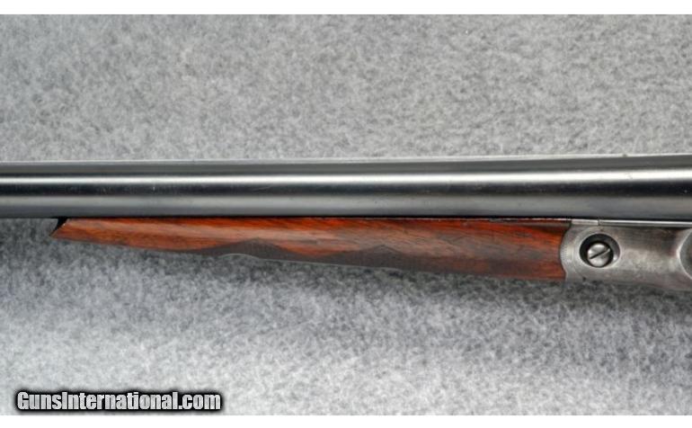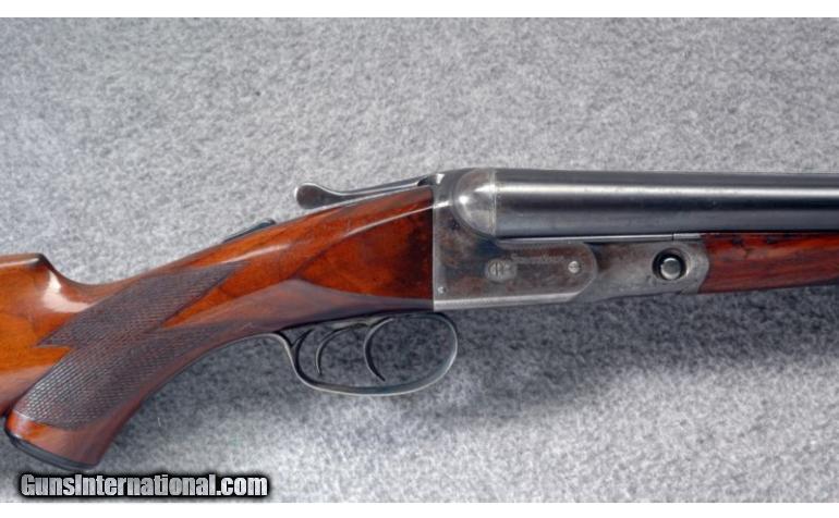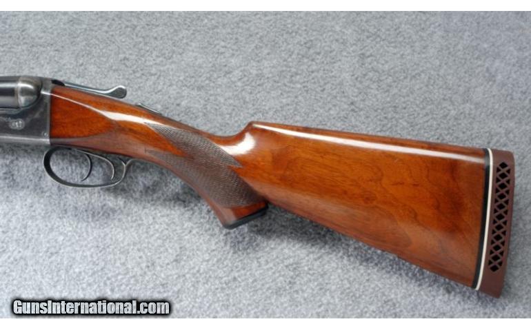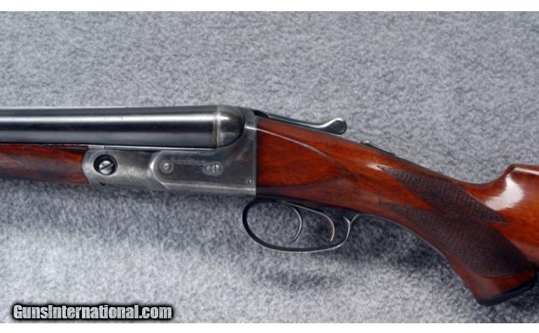 Description: Parker Model VH 12 Ga. This gun is in sound shape, but showing a little wear. There is a small ding in the right barrel which does show through, but it is not significant. The bores are bright and smooth otherwise. The action is tight. This is an extractor gun. The action retains 75-80% of the case colors. The wood may have been refinished and the recoil pad is not period. The barrels are chambered for 2 1/2" shells, which Cabela's does carry. The barrels appear nice until inspected closely, (10X), and then show a lot of finish wear. SOLD Manufacturer: 1924 Chambers: 2 1/2 Barrels: 30 Triggers: Double Stock: Checkered Capped Pistol Grip Fancy Walnut Stock Dimensions: LOP 13 5/8", DAC 1 3/8", DAH 2 5/16 Fore End: Checkered Splinter Fancy Walnut Butt Pad: White LIne Recoil Pad Weight: 7 Lbs., 7 Ozs. Sights: Single Bead on Concave Matted Rib Chokes: Full & Lt. Mod. Item Location: Louisville, KY |
