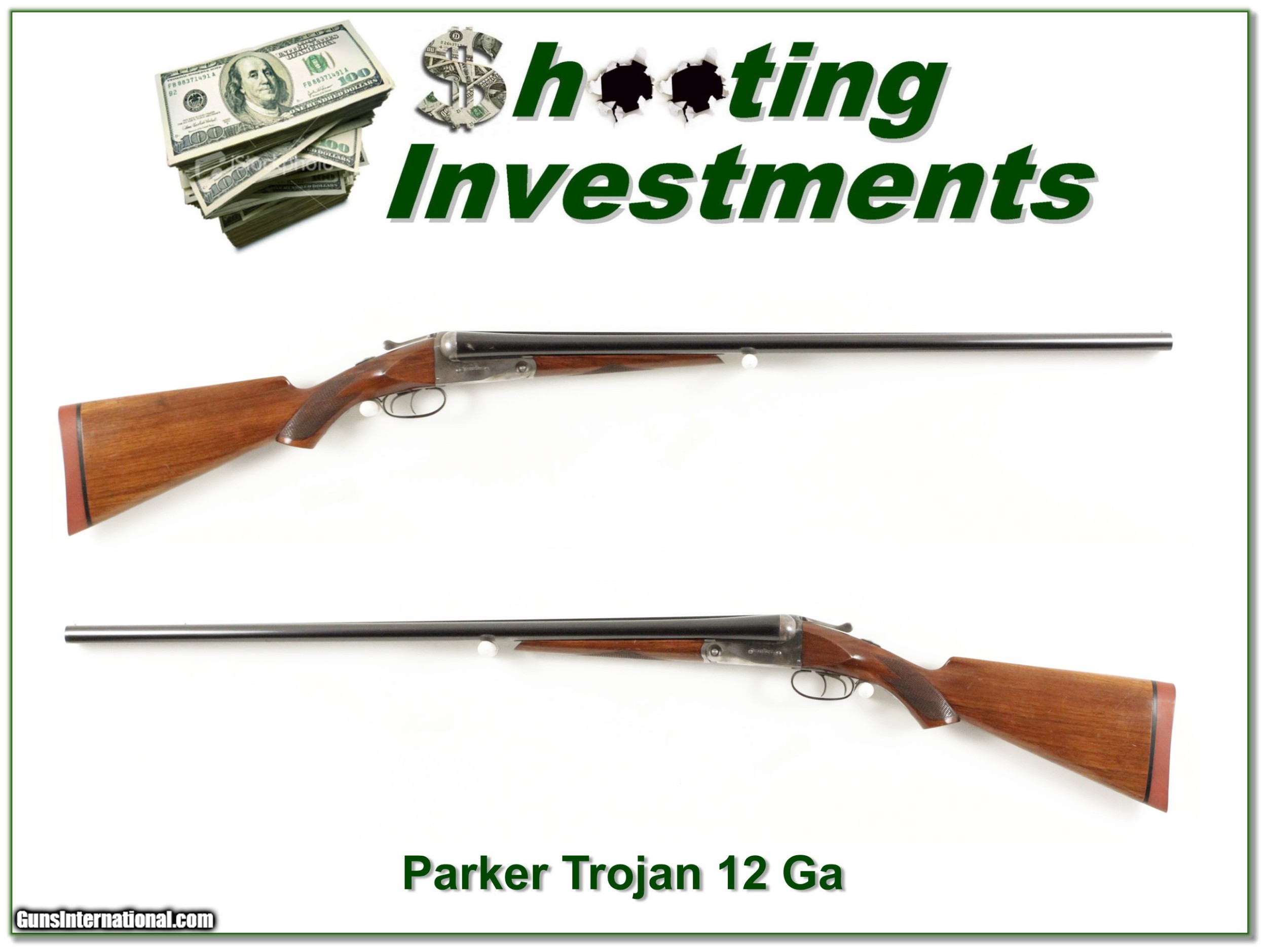 Description: This is a very nice Parker Trojan 12 gauge. It has 30in barrels choked Full and Mod. It was restored 50 years ago per its current owner and has a 14.5 in LOP to front trigger. I am selling this one on consignment and as such, lay-a-way can’t be used. It does of course have the standard 3-day inspection. Shipping and insurance is $39. Please email me with any questions or larger pictures. (Consign your quality firearms with Shooting Investments for only 10%! Let me know if you have any you would like to sell!) 17-1001 Payment: Payment is by Money Order, Cashiers Check or Personal Check. I can now also accept MasterCard and Visa with a 3% convenience fee. PayPal can be used for some items but never firearms. Please let us know if you would like to pay via PayPal. Shipping: The shipping charge will be listed in each description. It is $39 for most long guns and $29 for most handguns. Some heavy guns or those insured for over $2000 will be higher. Shipments to Alaska and Hawaii are higher because air shipment is required. Most firearms are shipped on Tuesday and Thursday and usually in 5 days of receipt of payment. We package all shipments carefully and insure them. For long guns you can purchase a new Plano case for $19. They now cost us $22 when buying 100 at a time. Optics are shipped Priority Mail and most other non-firearm shipments are shipped First Class. Returns: Our return policy is simple. If for any reason you are not pleased with your purchase, you may return your item for a full refund of purchase price. Ammunition cannot be returned. It is important to us that you are happy. Guns cannot be fired or dissembled before returning them and they must be returned in the same condition as received. Notification of a return must occur with-in 3 days of receipt at your dealer. Shipping, convenience and dealer fees are not refundable and are the responsibility of the buyer. Lay-a-way: If needed, we offer a 60 day lay-a-way option on most firearms. It is 1/3 now, 1/3 in 30 days and 1/3 in 60 days. Lay-a-way firearm sales are final and if not completed the first payment cannot be returned. Consigning your firearms with Shooting Investments: We will help you get top dollar for your firearms. While most local guns shops charge 20% or more, our fee is only 12% with a minimum of $75. At your local gun shop it might take months to sell. Selling on-line provides instant access to thousands of interested buyers. You won’t find any other on-line dealer willing to sell your firearms for only 12% or listing every gun on 3 separate s. Selling through an House typically costs the seller 15% and the buyer an addition 15% (so 30%) and you have to wait several months to sell and longer to receive funds. If properly priced, we will sell your firearms in a few weeks. Send us an email or give us a call and we’ll explain how easy it is for you to get top dollar. Trading: Trading for use is really just buying your gun to re-sell. If you have a gun you want to trade, please email a picture and we will let you know what we can give or it. You will always get more if we sell it for you on consignment. Help for California Buyers: We are happy to ship to California. It is the buyer’s responsibility to make sure any item you buy is legal in your state. We are also happy to help with your purchase of a firearm from someone other than us. If you see a gun you would like to buy but the seller can’t or won’t ship to California they can ship to use and we’ll then ship it to your California dealer. The cost for this service is only $30 + shipping. Let us know if we can help! SOLD |