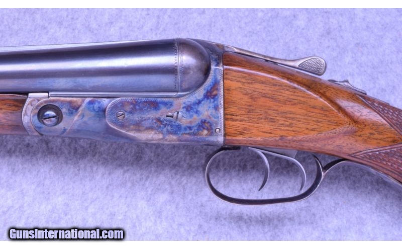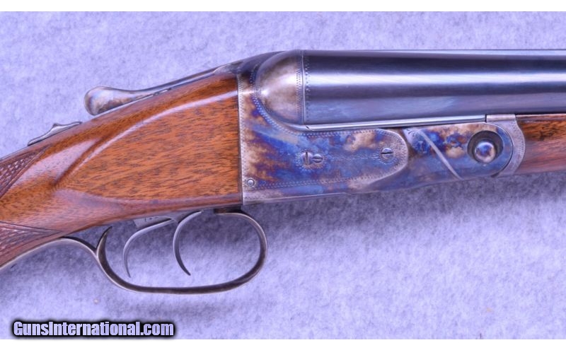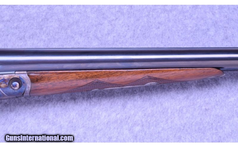 Description: Nicely restored throughout with hot blued barrels and re-case colored receiver. Wood has had the checkering re-cut with wood refinished. Bores remain bright with some light old pitting visible. SOLD Manufacturer: S/N V111XXX Caliber Info: 12 GA Chambers: 2 3/4 Metal Condition: Very Good Wood Condition: Very Good Bore Condition: Good Barrels: 30 Triggers: Double Stock: Checkered Walnut Pistol Grip Stock Dimensions: 14" LOP Fore End: Checkered Walnut Splinter Butt Pad: Black Hard Rubber Weight: 7 1/2 LB Sights: Single Front Bead Chokes: Modified/Full - Fixed Item Location: Wheeling, WV |