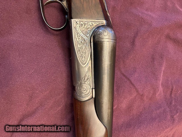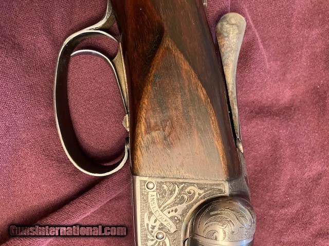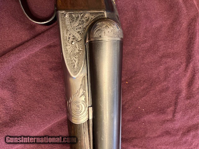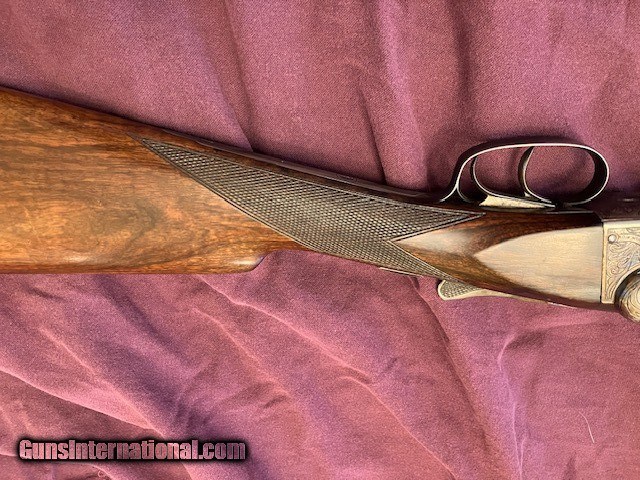 Description: Beautiful upland bird gun - Beaver Tail 4 Arm - Straight English Stock - Ejectors - 28" barrel. Factory letter SOLD Shotgun Gauge: 12 Gauge Barrel Length: 28 Chambers: 2 3/4 Ejectors: yes Condition: very good Metal Condition: very good Wood Condition: very good Bore Condition: very good Barrel Type: fluid steel Triggers: double Stock: 1 Stock Comb: 1 3/4 Stock Heel: 2 7/8 LOP: 13 7/8 Sights: twin ivory Choke Left: .021 Choke Right: .007 Engraving: excellent |