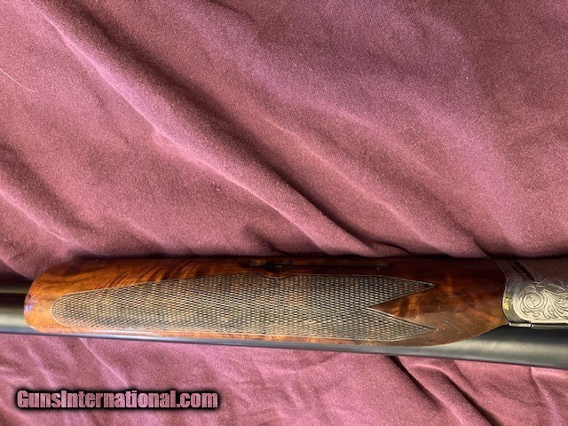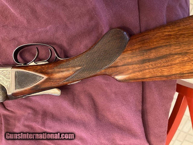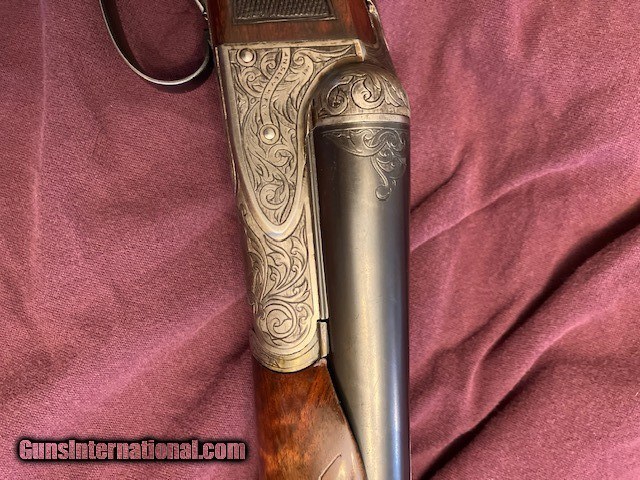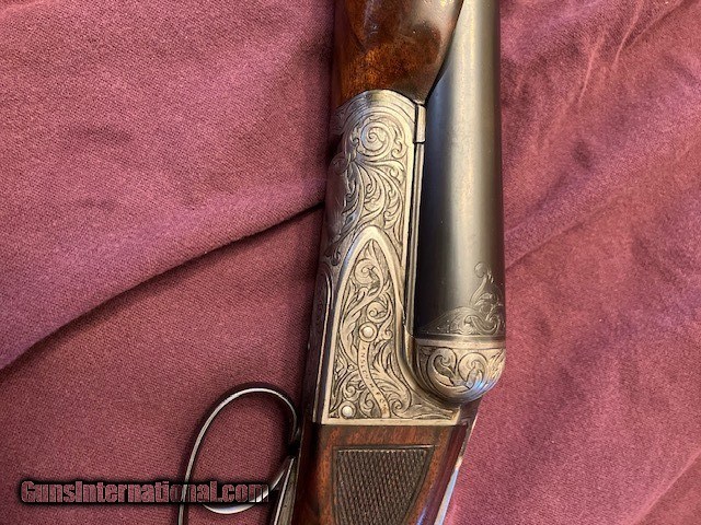 Description: Rare - few made - 30" Barrel - Factory Letter SOLD Shotgun Gauge: 12 Gauge Barrel Length: 30 Bore: very good Chambers: 2 3/4 Ejectors: yes Condition: very good Metal Condition: very good Wood Condition: very good Bore Condition: very good Barrels: chromox Barrel Type: SS Triggers: Double Stock Comb: 1 1/2 Stock Heel: 2 1/2 Fore End: Beaver Tail Butt Pad: yes LOP: 14 Sights: Twin Ivory Choke Left: .034 Choke Right: .023 Engraving: deep |