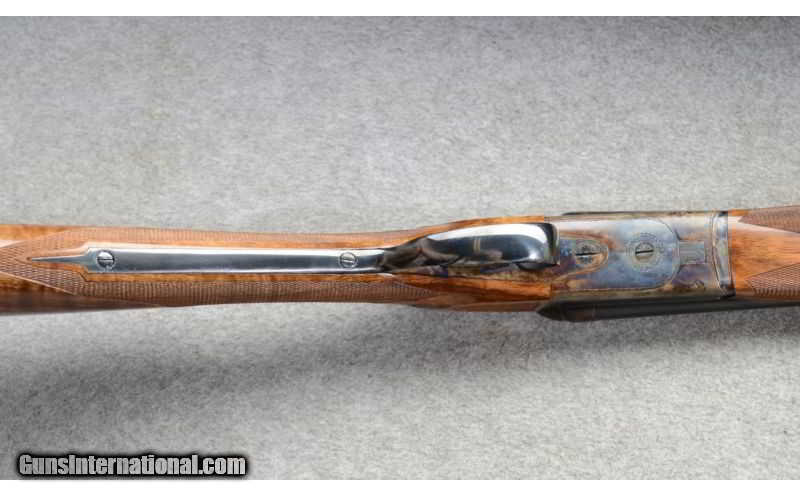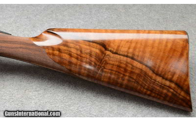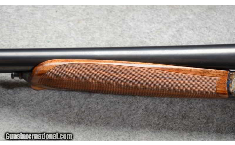 Description: SOLD Caliber Info: 16 Gauge Chambers: 65 mm Metal Condition: Excellent. You'll have to look hard for any defects. Wood Condition: Excellent. You'll have to look hard for any defects. Bore Condition: Bright and shiny. Barrels: 25-1/2 inch Triggers: Double triggers Stock: Straight grip checkered fancy walnut Stock Dimensions: 14-1/4 inch LOP Fore End: Matching walnut beavertail Butt Pad: Checkered end grain with steel toe and heel caps Weight: 6 lb. - 3 oz. Sights: Solid matte rib with gold bead Chokes: Fixed Modified and Full Item Location: Rogers,, MN |