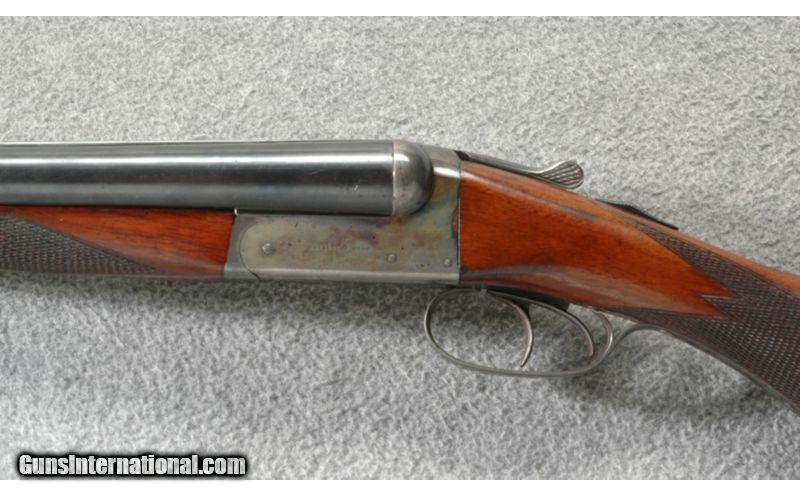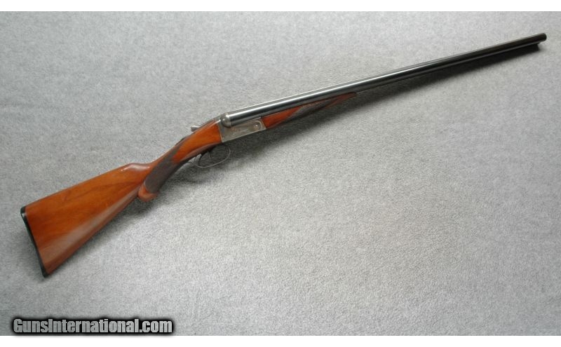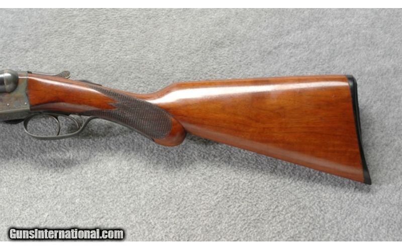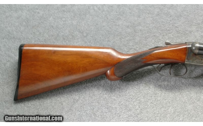 Description: This is a Remington Model 1900 SxS Hammerless Grade K in 12 Gauge. It has 30 inch Remington steel barrels, a boxlock action with an extractor, double triggers, checkered snap fore arm, and a checkered pistol grip stock with a hard rubber Remington butt plate. Remington manufactured approximately 98,475 between 1900 and 1910. This shotgun is still in very good shape, the action locks up tight and the bores are bright and clean. There is a small patch of corrosion near the muzzle of both barrels. There are small scratches on the metal and small scratches and dents in the wood, but for its age it has survived remarkably well. SOLD Manufacturer: Between 1900 and 1910. Caliber Info: 12 Gauge Chambers: 2 3/4 Metal Condition: Shows moderate signs of use. Wood Condition: Shows moderate signs of use. Bore Condition: Clean and bright. Barrels: 30 Triggers: Dual triggers. Stock: Checkered walnut with pistol grip. Stock Dimensions: 14 1/4" LOP Fore End: Checkered walnut snap fore arm, Butt Pad: Hard rubber Remington butt plate. Weight: 7 3/4 lbs Sights: Single bead. Chokes: Full & Modified Item Location: Tualatin, OR |
