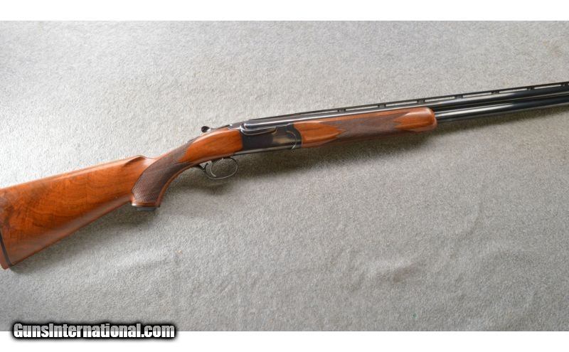 Description: This is a very nice and early Ruger Red Label 20 gauge shotgun. The shotgun has 3 inch chambers with ejectors, 26 inch blue barrels with a vent rib, an early blue receiver, high grade walnut and a red pad. The walnut stock is a hit in the hit and miss world of Ruger wood and has a couple of tiny dings you have to look for. The receiver has a touch of blue wear on the bottom. All in all a very nice early Ruger shotgun. SOLD Manufacturer: 1980 Caliber Info: 20 Gauge. Chambers: 3 inch over/under with ejectors. Metal Condition: Excellent with very minor wear. Wood Condition: Excellent. Bore Condition: Bright and shiny. Barrels: 26 inch blue with a vent rib. Triggers: Single silver color. Stock: Very nice walnut with good figure, a checkered pistol grip and a black and red grip cap. Stock Dimensions: 14 inch LOP. Fore End: Matching checkered walnut with a gold color Ruger medallion. Butt Pad: Ruger red rubber butt pad. Weight: 7 Lbs 3 Oz. Sights: Single brass front bead on a vent rib. Chokes: Fixed FULL and MOD. Extras: Comes with the box. Item Location: Owatonna, MN |