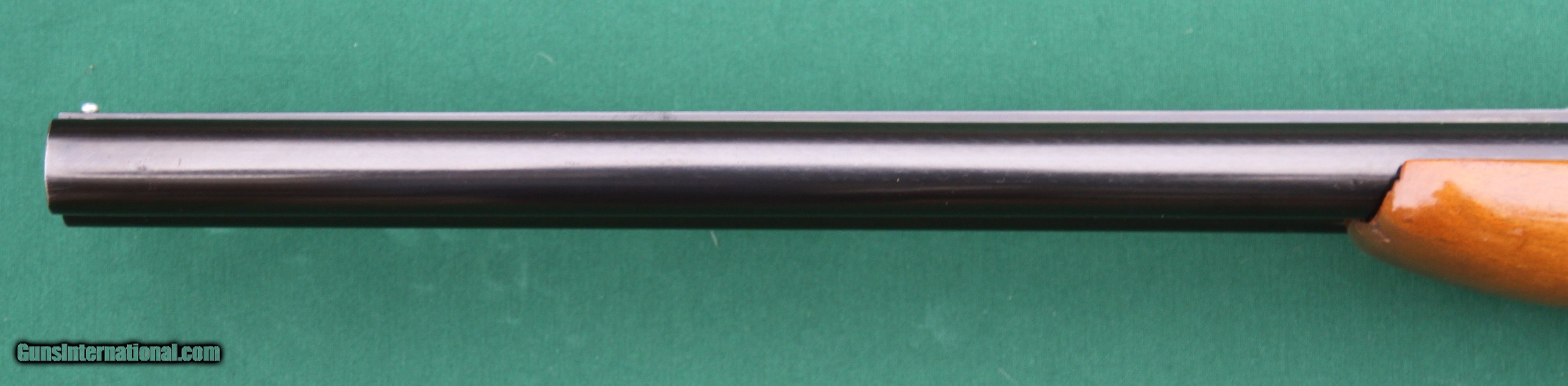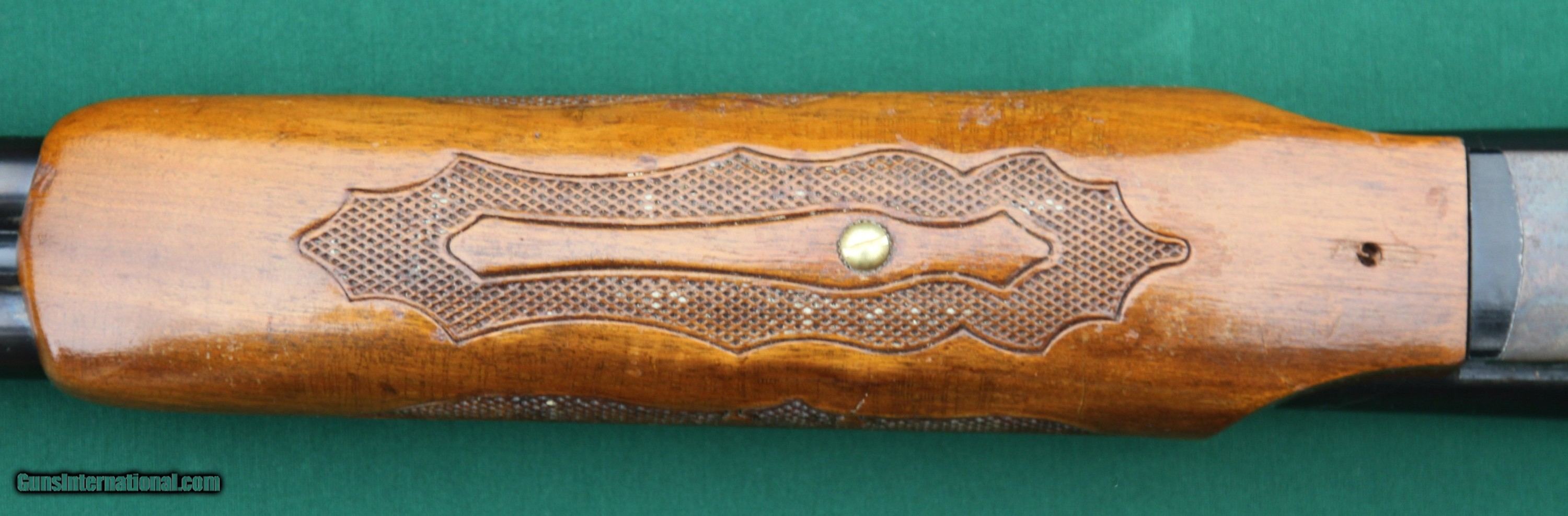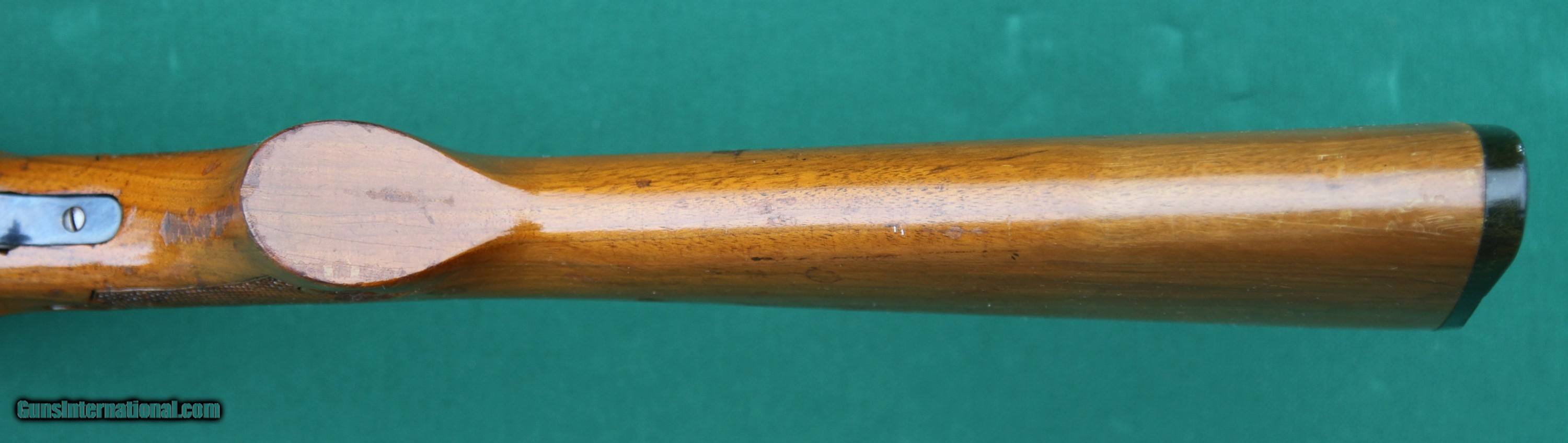 Description: This Savage Fox B, Series H, 12-gauge, double-barrel, shotgun has 24-inch barrels, ejectors, double triggers, and case colors on the lockbox. Its length of pull (LOP) is 14½ inches. Its drop at the comb is approximately two inches. Its drop at the heal is approximately 2¾ inches. It weighs six pounds, fourteen ounces. The gun accepts 2 ¾-inch and 3-inch shells. Bores are in excellent condition. All original finish on metal and wood. Year of manufacture is 1974. There are no box, papers, or accessories with this gun. The overall condition of this gun is approximately 85 percent. Bluing on the barrels is 98+ percent, with a couple very small marks, including a couple shiny areas (looks like thin bluing) about nine inches forward of the chambers, and the elevated rib has a couple shiny areas on the edges or corner of the rib. The underside of the barrels has a couple of shiny areas where the forend contacts the barrels. The case colors are about 95 percent on the lockbox and the tang, though the rear of the tang shows some wear where the shooter’s finger has rubbed it while operating the safety selector which also show some wear. The lockbox has what appears to be some pitting or nicks, especially the left side, but there is no rust. The bottom of the lockbox are engraved with a decorative pattern around a smiling fox. The wood (stock and forend) is about 85-90 percent. With a couple standout exceptions (more on that in a moment, the forend is about 95- percent, with a 1/3 inch scrap just through the lacquer or varnish finish 1½ back from the front end and just below where the forend meets the barrel. There are also several small scraps through the lacquer or varnish finish on the bottom/left side of the forend, just below the checkering. There is a ¾ inch x ½ inch area on the left side of the forend, about two inches forward of the rear of the forend that is through the lacquer or varnish finish. The checkering on the forend is deep and crisp with no damage. The checker is, however, dark, I presume with age. The standout exceptions that I mentioned are two. First, there is a gold-colored slotted screw head protruding from the bottom of the forend. Apparently, some stripped the threads of the screw hole of the forend iron so that the original forward forend screw could be tightened. Rather than replacing the forend iron (currently cost $45), he rethreaded the screw hole and replace the original screw with the protruding gold screw. Second, for whatever reason, in an attempt to replace the rear forend screw, someone used a screw too long for the job and went clear through the bottom of the forent, leaving an empty hole with chipped edges. Replacing the forend iron and the gold screw at the current cost of $45 is still an option to improve the appearance of the forend and the gun. The hole at the rear of the forend is there to stay. The stock is approximately 80 to 85 percent. There are several places on both side were the lacquer or varnish finish has been rubbed off or otherwise penetrated. It looks like some kind of solvent might come in contact with the finish. Those four or five places are not very large, maybe 1/3 x 1/3 inch. The checking on the stock is also deep and crisp with no damage or other marks, but does have the same darkness. This gun is 100-percent operational and is a quality gun. It will still do what it was intended to do - home defense and small game. I would not hesitate to purchase it for those purposes. The photos are high resolution, so zoom to see details. Contact me for additional photos of any area you would like to see or see better. The buyer pays $40 for USPS Priority mail and $8.60 for insurance. Virginia buyers must pay 5.3% sales tax. The fastest way to get this gun is to pay with USPS (U.S. Postal Service) money orders, as they are like cash. I will ship the gun immediately upon receipt of a USPS money order and an FFL. I will also accept a personal check or other type money, as well as bank checks and cashier's checks, but I will hold the gun until it clears my bank; this includes bank checks and cashier’s checks. I do not accept credit cards, debit cards, or PayPal. Check or money order must be made out to Jerry Pownall or Barboursville Arms. SOLD |