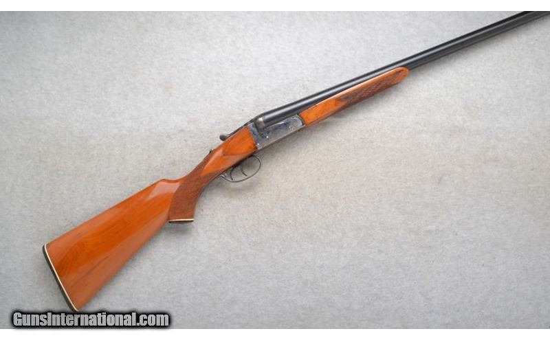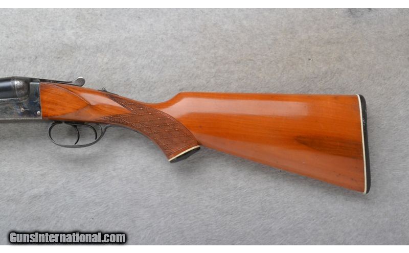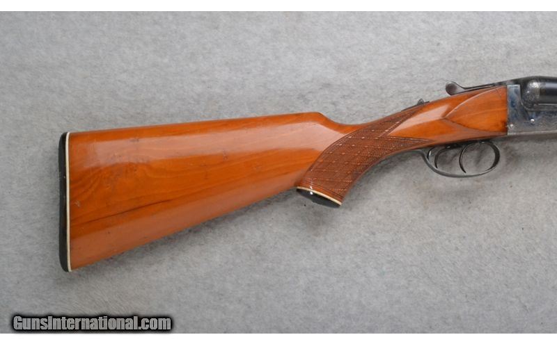 Description: This Sears & Roebuck (Laurona) Model 153 512350 is a side by side shotgun in 12 Ga. It has 28 inch barrel with extractors and a solid rib. A brass bead front sight. With 2 3/4 inch chambers it has fixed Full and Modified chokes. The butt stock is a diamond checkered grip hardwood pistol grip. The forearm is a diamond checkered grip hardwood. The case colored receiver is lightly engraved. 12 Gauge SOLD Chambers: 2 3/4 inch. Metal Condition: Fair. Has some freckling and wear. Wood Condition: Good. Has light handling marks. Bore Condition: Shiny. Barrels: 28 inch barrels with extractors and a solid rib. Triggers: Double. Stock Dimensions: LOP 14 1/4 inches. Fore End: Diamond checkered grip hardwood. Butt Pad: Laurona checkered black plate. Weight: 6 lb. 12 oz. Sights: Brass bead front. Chokes: Fixed Full and Modified. Item Location: Richfield, WI |
