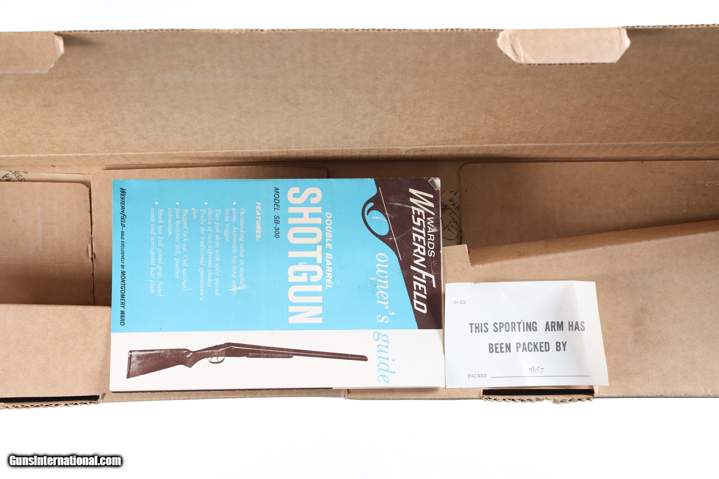 Description: Like new with factory box includes original Montgomery Ward hang tag price $84.99. Choked full and full LOP: 14 1/4" with extractor. Chamber size is 3". • Free Shipping, No Credit Card Fees. • Lay-a-way available for this firearm. • 1/3 Down, a 1/3 in 30 Days 1/3 in 60 Days. SOLD Curio/Relic: Yes Manufacturer: Westernfield Model: SB-300C Serial Number: NSN Barrel Length: 26 |