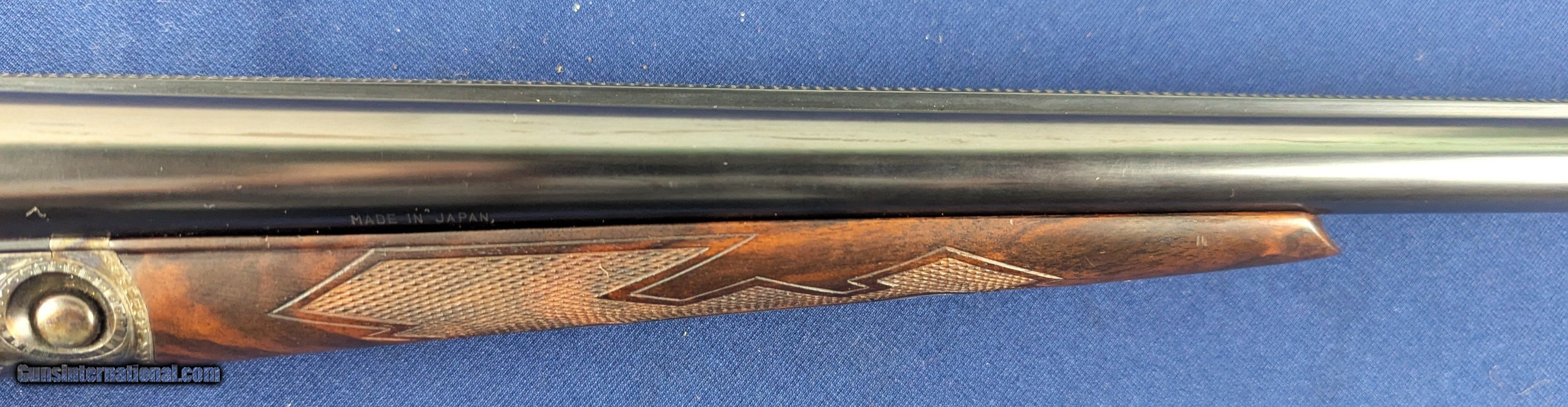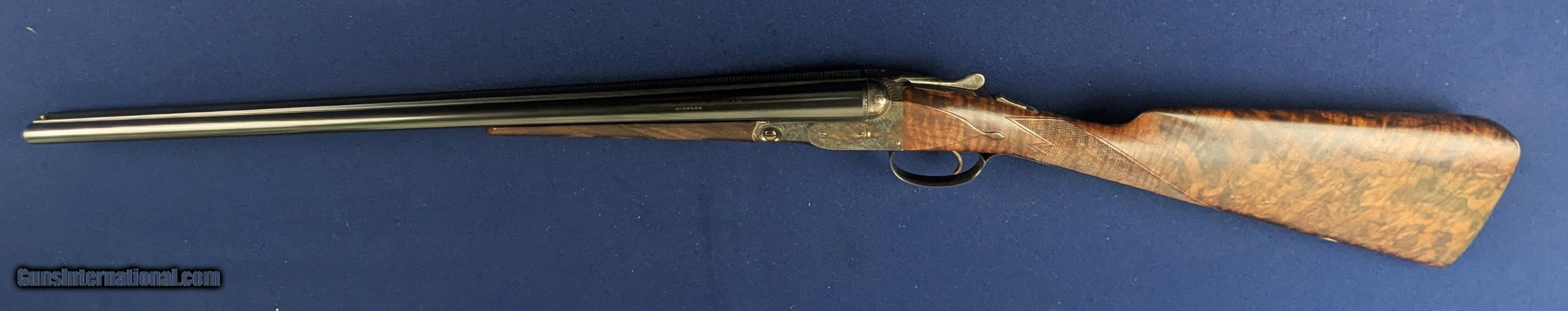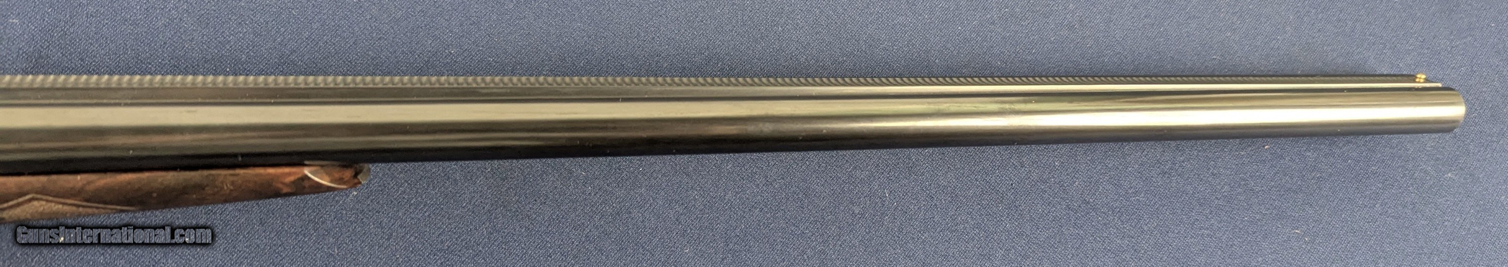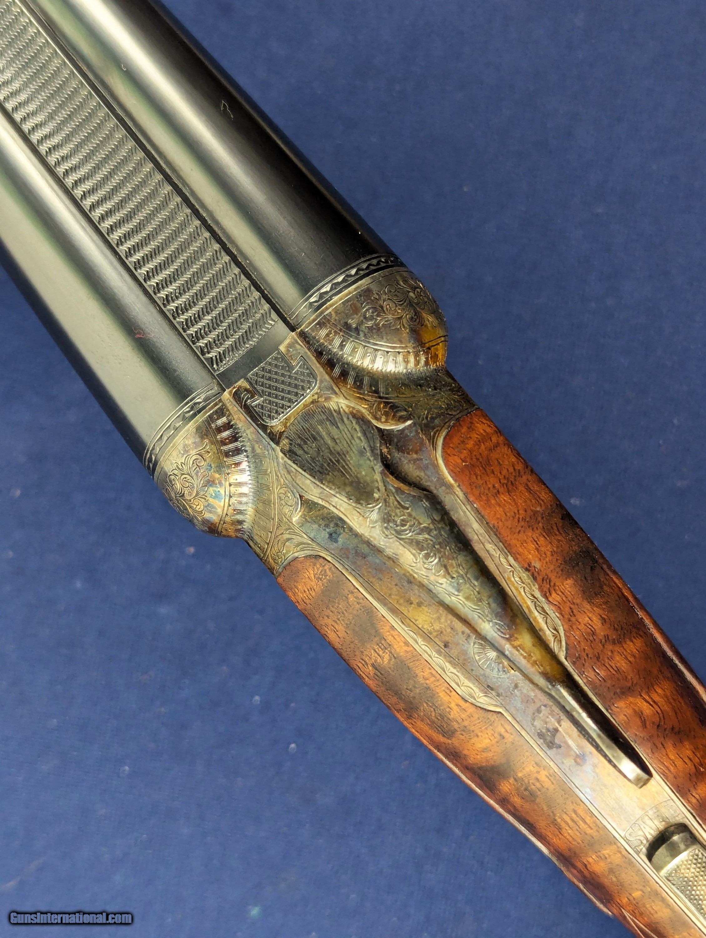 Description: Superb Parker 20 GA Reproduction SXS Shotgun Made by Winchester Offered here for sale is this newly acquired spectacular Winchester/ Parker reproduction DHE Grade DESIRABLE 20 Gauge side by side shotgun. This LIMITED EDITION shotgun was designed in America and made by Winchester’s longtime Partner Olin-Kodensha, in Japan, for Winchester. Contracted by Reagent Chemical & Research. The Winchester- Parker DHE Grade shotgun was made circa 1984-1989 and fires 2 ¾” shells. 26” barrels. Its action is box lock, top break, single selective trigger with ejectors. The left of each barrel set is marked “Parker Reproductions by “WINCHESTER – 20 GAUGE. 2 ¾” / EAST ALTON, IL. U.S.A.”. The right barrel of each set is marked “MADE IN JAPAN”. The left barrel flat is marked “MOD.”, “20-3113” with an ovalled “WP” proof, the right is marked “IMP. CYL.”, and each barrel flat is marked “OVERLOAD / PARKER REPRODUCTION / PROVED”. The bottom of the barrel lug is marked “I 1/2”. The left side of the barrel lug is marked “D GRADE 20 GA. / FOR 2 ¾” SHELLS”. The top of the forend bracket is marked with the serial number. The water table is marked “DHE / 20-3113”, the left side of the frame has a pointer and setter, with to-spec Parker D-grade scroll engraving; the underside of the frame has D-engraving and “PARKER”. The upper tang is marked “SAFE”, the lower tang has the serial number. The belly of the butt stock has a metal oval insert that has not been engraved. Barrel Length: 26”, with solid, concave, tapered rib. Choke: The left barrel is Modified, the right Improved Cylinder, both fixed. Sights / Optics: This shotgun is mounted with a brass bead at the muzzle; the top of the rib is milled in a wave-like pattern for glare reduction, stopping at a scribed line just short of the muzzle. The splinter forend has case-colored D-grade engraved metal fixtures and wrap-around checkering, to the original Parker specifications. The butt stock is straight English style with a metal oval insert on the belly which has been engraved with initials of former owner. The butt of the stock has a metal buttplate with an exposed center. The center has checkering. The checkering is sharp. The specimen exhibits very little handling and wear. The LOP measures 14 ¼” from the front of the trigger to the back of the butt. The stocks rate in excellent overall condition. The shotgun has a rust-blued inish & case colored, with Grade D engraving. Original finish. The bores are bright. We would rate the shogun at 99%+ condition. Just slight storage/wear marks on barrels. The screw heads are sharp. The markings are crisp. Overall, this shotgun rates in EXC condition. Mechanics: The action functions correctly. The shotgun features a crisp single trigger, independent ejectors, an exceptionally tight action lockup and presents spectacular balance. In summary , In 1984, Winchester was contracted by Reagent Chemical & Research, Inc. to manufacture a new Parker shotgun. The new SxS was a DHE model, available in 20 and 28 ga. initially. These models were fabricated in Japan to original Parker specifications, and the reproduction was so authentic that parts are interchangeable with the late Parkers made by Remington in Ilion, NY. The top-specification D grade engraving looks exceptional with the vibrant case coloring retaining marvelous tone variation. Whether you’re a Winchester or Parker collector or just want one of the finest 20 gauge doubles made, this is a great addition to any safe in America. L448 Thanks for your review. Shipping for this item is $58 however final shipping amount is based upon geographical area. Handling is $18.00 for longarms only. We gladly accept money orders, bank checks and personal checks. Credit card orders (VISA AND MASTER CARD ONLY) charged 3.95% additional for use. PLEASE CALL DALIA AT 203-257-5256 TO GIVE CREDIT CARD INFORMATION. Also, please view our at hansenguns. Click on "Online Catalog" and see All OF OUR ITEMS LISTED CONSECUTIVELY on or search online on that site with the ID “lope”...... OFFERED ONLINE AND AVAILABLE IN OUR RETAIL GALLERY IN SOUTHPORT, CT. Visit us also on Facebook at ://facebook/hansenguns/?fref=ts. We also own and/or operate Hansen Cartridge Co. and the Ruger Collectors Assc.(RCA). Hansen & Hansen wishes to expedite each order received, however we ship 80-100 items weekly, therefore orders paid by money orders or bank checks are cleared for shipping 5-7 days after deposited funds show in our account. Shipping date is scheduled ONLY AFTER VERIFICATION TAKES PLACE AND FFL/C&R IS RECEIVED (IF APPLIES). This is 5-7 days after WE receive order by mail - NOT customer date mailed and postmarked and after credit card funds are posted. Credit card orders exceeding $500 must be cleared through customer’s bank before shipping. Personal checks are accepted but orders are held UP TO 3 WEEKS after deposit of funds before items released for shipping. IF you have special instructions or require overnight or expedited shipping please advise at time of ordering and we will gladly prioritize shipping FOR AN ADDITIONAL CHARGE. THIS IS OUR POLICY and we encourage s to PLEASE READ AND UNDERSTAND OUR POLICY BEFORE . We would be pleased to answer ANY questions by phone (our toll free number is 1-800-571-7337 or e-mail cwlopiaol Shotgun Gauge: 20 Gauge Price: $5,975.00 Buy Now Contact Seller |