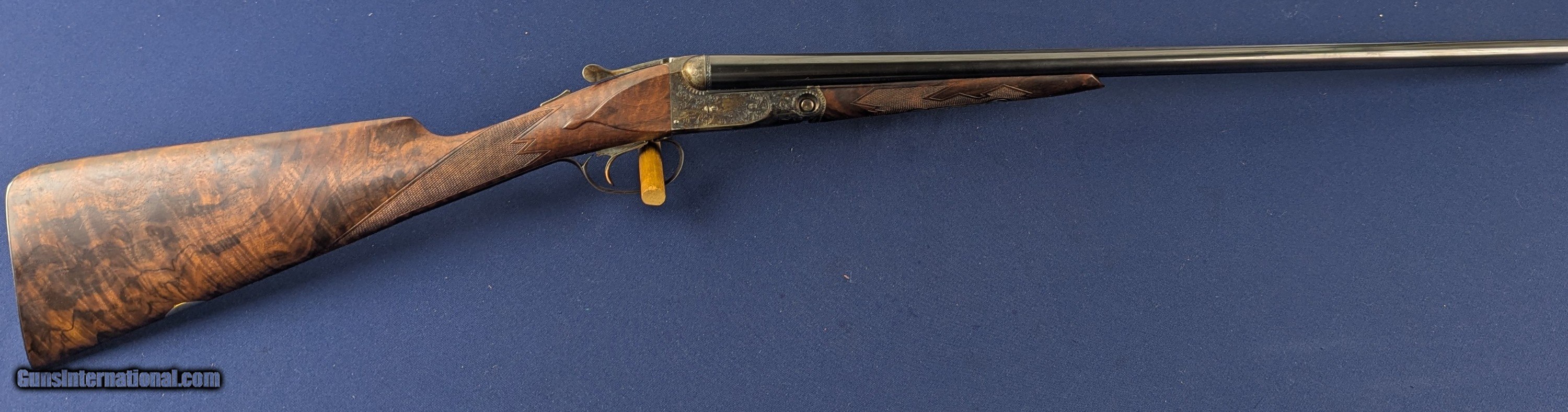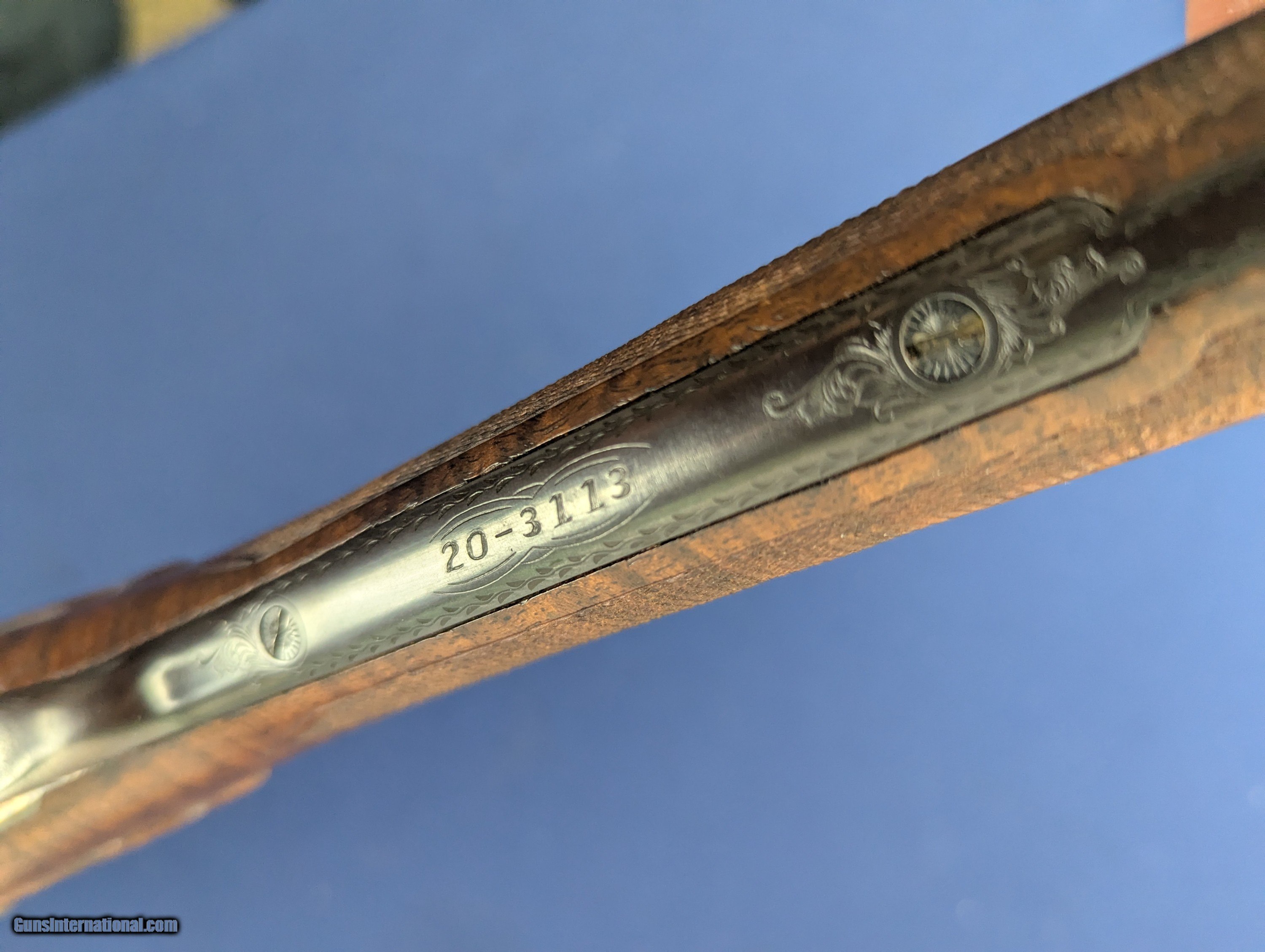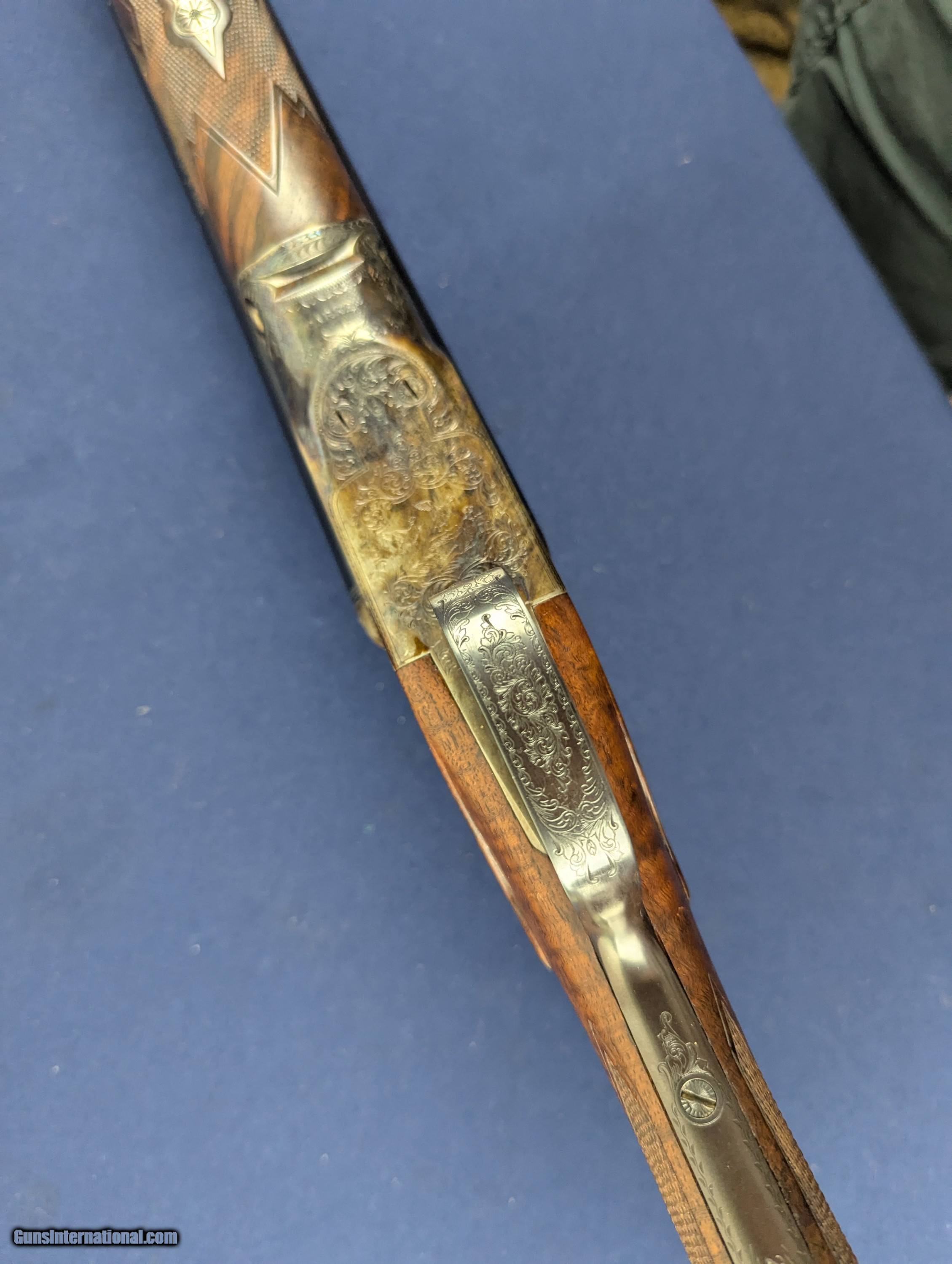 Description: Superb Parker 20 GA Reproduction SXS Shotgun Made by Winchester Offered here for sale is this newly acquired spectacular Winchester/ Parker reproduction DHE Grade DESIRABLE 20 Gauge side by side shotgun. This LIMITED EDITION shotgun was designed in America and made by Winchester’s longtime Partner Olin-Kodensha, in Japan, for Winchester. Contracted by Reagent Chemical & Research. The Winchester- Parker DHE Grade shotgun was made circa 1984-1989 and fires 2 ¾” shells. 26” barrels. Its action is box lock, top break, single selective trigger with ejectors. The left of each barrel set is marked “Parker Reproductions by “WINCHESTER – 20 GAUGE. 2 ¾” / EAST ALTON, IL. U.S.A.”. The right barrel of each set is marked “MADE IN JAPAN”. The left barrel flat is marked “MOD.”, “20-3113” with an ovalled “WP” proof, the right is marked “IMP. CYL.”, and each barrel flat is marked “OVERLOAD / PARKER REPRODUCTION / PROVED”. The bottom of the barrel lug is marked “I 1/2”. The left side of the barrel lug is marked “D GRADE 20 GA. / FOR 2 ¾” SHELLS”. The top of the forend bracket is marked with the serial number. The water table is marked “DHE / 20-3113”, the left side of the frame has a pointer and setter, with to-spec Parker D-grade scroll engraving; the underside of the frame has D-engraving and “PARKER”. The upper tang is marked “SAFE”, the lower tang has the serial number. The belly of the butt stock has a metal oval insert that has not been engraved. Barrel Length: 26”, with solid, concave, tapered rib. Choke: The left barrel is Modified, the right Improved Cylinder, both fixed. Sights / Optics: This shotgun is mounted with a brass bead at the muzzle; the top of the rib is milled in a wave-like pattern for glare reduction, stopping at a scribed line just short of the muzzle. The splinter forend has case-colored D-grade engraved metal fixtures and wrap-around checkering, to the original Parker specifications. The butt stock is straight English style with a metal oval insert on the belly which has been engraved with initials of former owner. The butt of the stock has a metal buttplate with an exposed center. The center has checkering. The checkering is sharp. The specimen exhibits very little handling and wear. The LOP measures 14 ¼” from the front of the trigger to the back of the butt. The stocks rate in excellent overall condition. The shotgun has a rust-blued inish & case colored, with Grade D engraving. Original finish. The bores are bright. We would rate the shogun at 99%+ condition. Just slight storage/wear marks on barrels. The screw heads are sharp. The markings are crisp. Overall, this shotgun rates in EXC condition. Mechanics: The action functions correctly. The shotgun features a crisp single trigger, independent ejectors, an exceptionally tight action lockup and presents spectacular balance. In summary , In 1984, Winchester was contracted by Reagent Chemical & Research, Inc. to manufacture a new Parker shotgun. The new SxS was a DHE model, available in 20 and 28 ga. initially. These models were fabricated in Japan to original Parker specifications, and the reproduction was so authentic that parts are interchangeable with the late Parkers made by Remington in Ilion, NY. The top-specification D grade engraving looks exceptional with the vibrant case coloring retaining marvelous tone variation. Whether you’re a Winchester or Parker collector or just want one of the finest 20 gauge doubles made, this is a great addition to any safe in America. L448 Thanks for your review. Shipping for this item is $58 however final shipping amount is based upon geographical area. Handling is $18.00 for longarms only. We gladly accept money orders, bank checks and personal checks. Credit card orders (VISA AND MASTER CARD ONLY) charged 3.95% additional for use. PLEASE CALL DALIA AT 203-257-5256 TO GIVE CREDIT CARD INFORMATION. Also, please view our at hansenguns. Click on "Online Catalog" and see All OF OUR ITEMS LISTED CONSECUTIVELY on or search online on that site with the ID “lope”...... OFFERED ONLINE AND AVAILABLE IN OUR RETAIL GALLERY IN SOUTHPORT, CT. Visit us also on Facebook at ://facebook/hansenguns/?fref=ts. We also own and/or operate Hansen Cartridge Co. and the Ruger Collectors Assc.(RCA). Hansen & Hansen wishes to expedite each order received, however we ship 80-100 items weekly, therefore orders paid by money orders or bank checks are cleared for shipping 5-7 days after deposited funds show in our account. Shipping date is scheduled ONLY AFTER VERIFICATION TAKES PLACE AND FFL/C&R IS RECEIVED (IF APPLIES). This is 5-7 days after WE receive order by mail - NOT customer date mailed and postmarked and after credit card funds are posted. Credit card orders exceeding $500 must be cleared through customer’s bank before shipping. Personal checks are accepted but orders are held UP TO 3 WEEKS after deposit of funds before items released for shipping. IF you have special instructions or require overnight or expedited shipping please advise at time of ordering and we will gladly prioritize shipping FOR AN ADDITIONAL CHARGE. THIS IS OUR POLICY and we encourage s to PLEASE READ AND UNDERSTAND OUR POLICY BEFORE . We would be pleased to answer ANY questions by phone (our toll free number is 1-800-571-7337 or e-mail cwlopiaol Shotgun Gauge: 20 Gauge Price: $5,975.00 Buy Now Contact Seller |