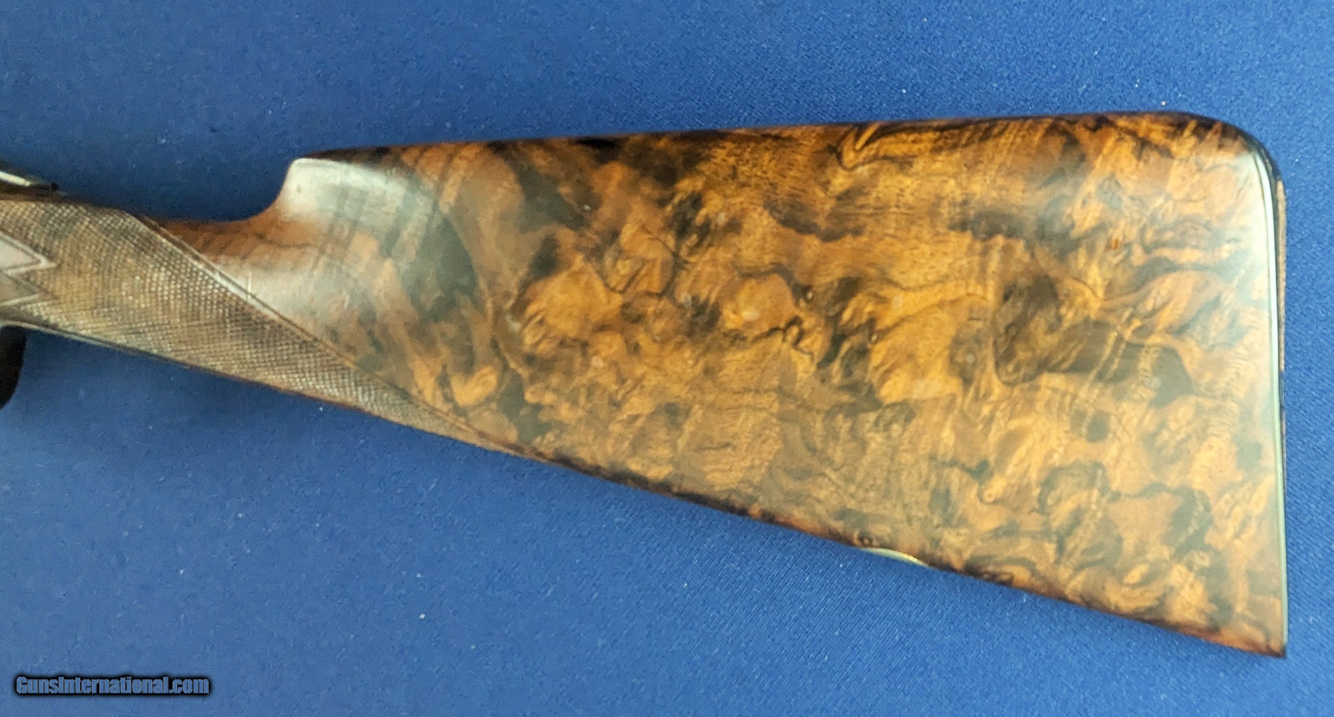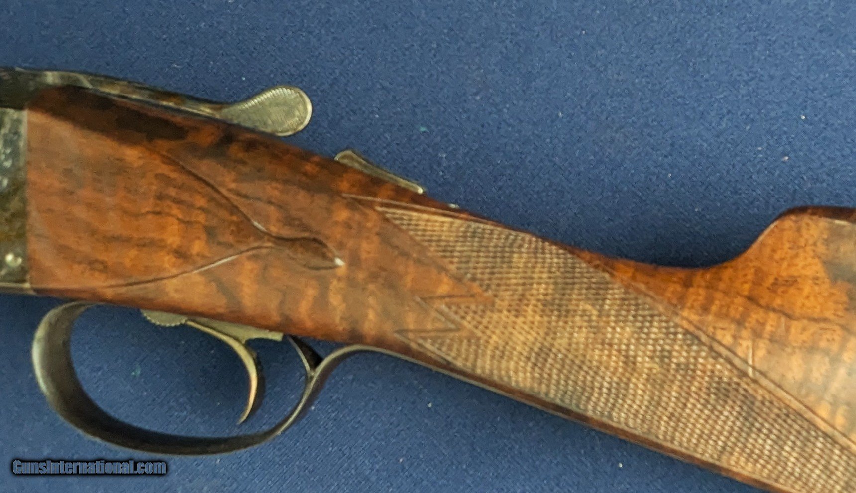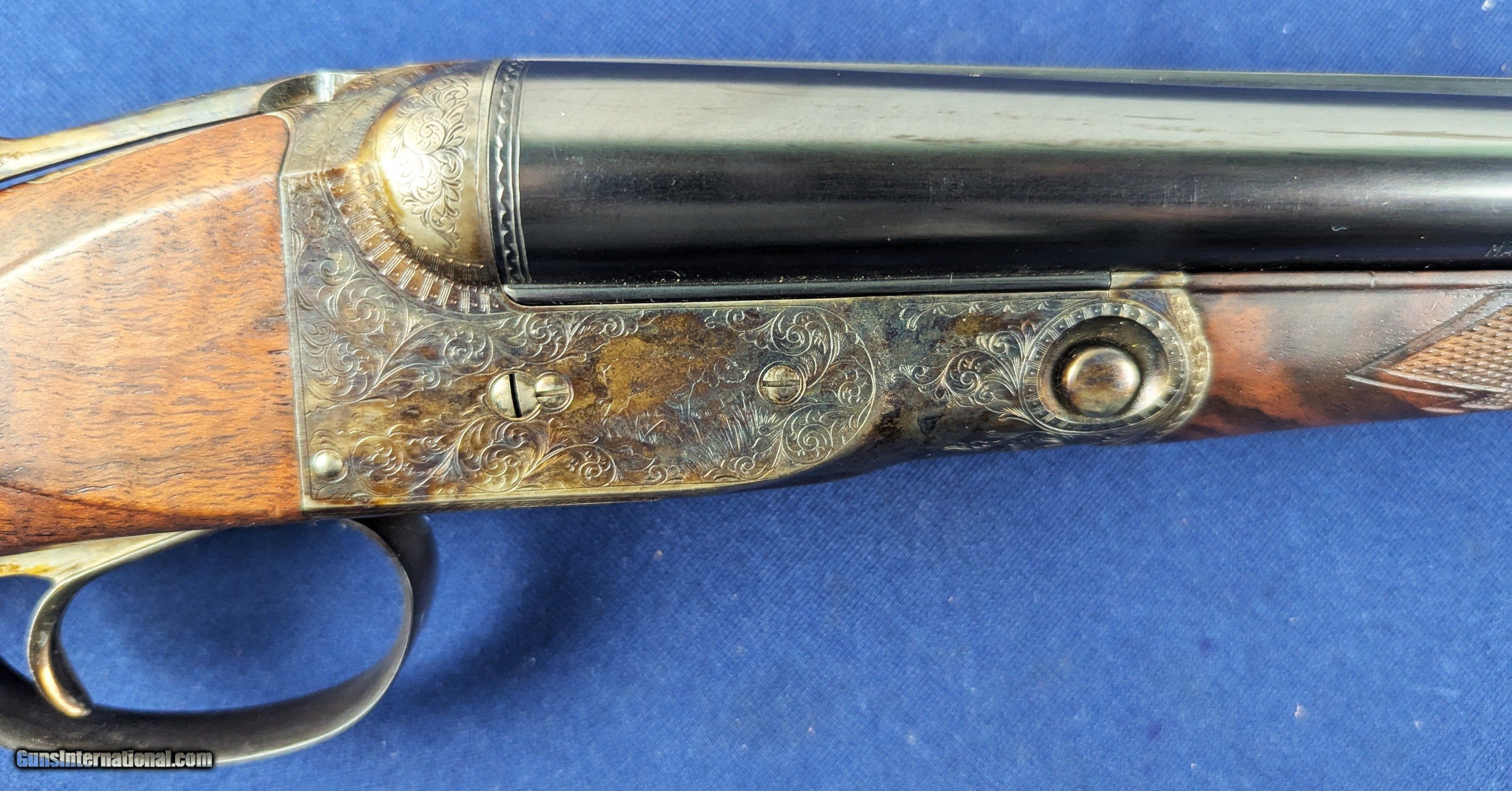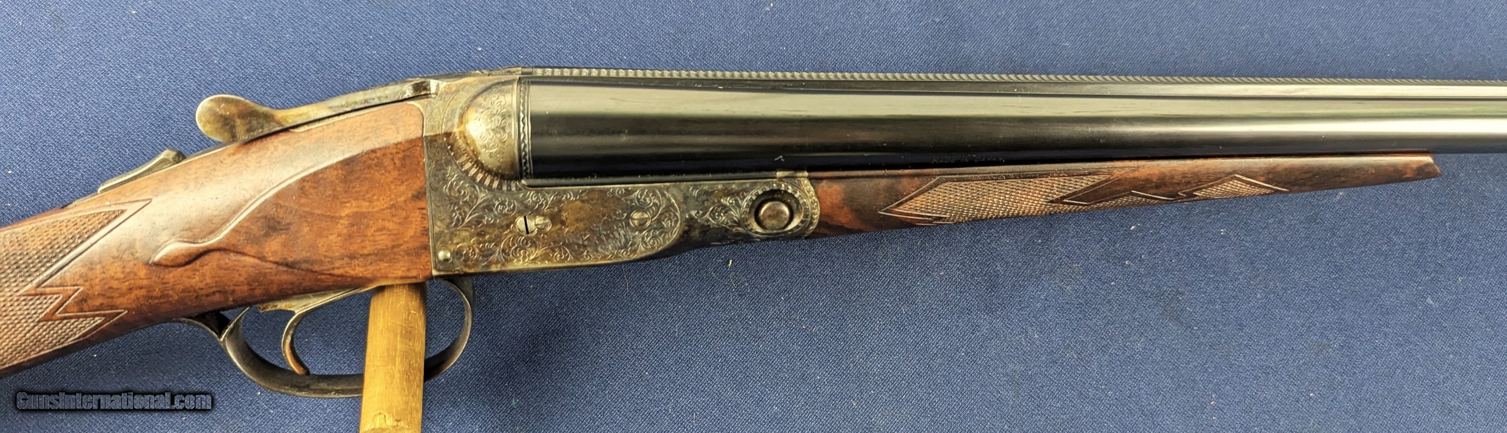 Description: Superb Parker 20 GA Reproduction SXS Shotgun Made by Winchester Offered here for sale is this newly acquired spectacular Winchester/ Parker reproduction DHE Grade DESIRABLE 20 Gauge side by side shotgun. This LIMITED EDITION shotgun was designed in America and made by Winchester’s longtime Partner Olin-Kodensha, in Japan, for Winchester. Contracted by Reagent Chemical & Research. The Winchester- Parker DHE Grade shotgun was made circa 1984-1989 and fires 2 ¾” shells. 26” barrels. Its action is box lock, top break, single selective trigger with ejectors. The left of each barrel set is marked “Parker Reproductions by “WINCHESTER – 20 GAUGE. 2 ¾” / EAST ALTON, IL. U.S.A.”. The right barrel of each set is marked “MADE IN JAPAN”. The left barrel flat is marked “MOD.”, “20-3113” with an ovalled “WP” proof, the right is marked “IMP. CYL.”, and each barrel flat is marked “OVERLOAD / PARKER REPRODUCTION / PROVED”. The bottom of the barrel lug is marked “I 1/2”. The left side of the barrel lug is marked “D GRADE 20 GA. / FOR 2 ¾” SHELLS”. The top of the forend bracket is marked with the serial number. The water table is marked “DHE / 20-3113”, the left side of the frame has a pointer and setter, with to-spec Parker D-grade scroll engraving; the underside of the frame has D-engraving and “PARKER”. The upper tang is marked “SAFE”, the lower tang has the serial number. The belly of the butt stock has a metal oval insert that has not been engraved. Barrel Length: 26”, with solid, concave, tapered rib. Choke: The left barrel is Modified, the right Improved Cylinder, both fixed. Sights / Optics: This shotgun is mounted with a brass bead at the muzzle; the top of the rib is milled in a wave-like pattern for glare reduction, stopping at a scribed line just short of the muzzle. The splinter forend has case-colored D-grade engraved metal fixtures and wrap-around checkering, to the original Parker specifications. The butt stock is straight English style with a metal oval insert on the belly which has been engraved with initials of former owner. The butt of the stock has a metal buttplate with an exposed center. The center has checkering. The checkering is sharp. The specimen exhibits very little handling and wear. The LOP measures 14 ¼” from the front of the trigger to the back of the butt. The stocks rate in excellent overall condition. The shotgun has a rust-blued inish & case colored, with Grade D engraving. Original finish. The bores are bright. We would rate the shogun at 99%+ condition. Just slight storage/wear marks on barrels. The screw heads are sharp. The markings are crisp. Overall, this shotgun rates in EXC condition. Mechanics: The action functions correctly. The shotgun features a crisp single trigger, independent ejectors, an exceptionally tight action lockup and presents spectacular balance. In summary , In 1984, Winchester was contracted by Reagent Chemical & Research, Inc. to manufacture a new Parker shotgun. The new SxS was a DHE model, available in 20 and 28 ga. initially. These models were fabricated in Japan to original Parker specifications, and the reproduction was so authentic that parts are interchangeable with the late Parkers made by Remington in Ilion, NY. The top-specification D grade engraving looks exceptional with the vibrant case coloring retaining marvelous tone variation. Whether you’re a Winchester or Parker collector or just want one of the finest 20 gauge doubles made, this is a great addition to any safe in America. L448 Thanks for your review. Shipping for this item is $58 however final shipping amount is based upon geographical area. Handling is $18.00 for longarms only. We gladly accept money orders, bank checks and personal checks. Credit card orders (VISA AND MASTER CARD ONLY) charged 3.95% additional for use. PLEASE CALL DALIA AT 203-257-5256 TO GIVE CREDIT CARD INFORMATION. Also, please view our at hansenguns. Click on "Online Catalog" and see All OF OUR ITEMS LISTED CONSECUTIVELY on or search online on that site with the ID “lope”...... OFFERED ONLINE AND AVAILABLE IN OUR RETAIL GALLERY IN SOUTHPORT, CT. Visit us also on Facebook at ://facebook/hansenguns/?fref=ts. We also own and/or operate Hansen Cartridge Co. and the Ruger Collectors Assc.(RCA). Hansen & Hansen wishes to expedite each order received, however we ship 80-100 items weekly, therefore orders paid by money orders or bank checks are cleared for shipping 5-7 days after deposited funds show in our account. Shipping date is scheduled ONLY AFTER VERIFICATION TAKES PLACE AND FFL/C&R IS RECEIVED (IF APPLIES). This is 5-7 days after WE receive order by mail - NOT customer date mailed and postmarked and after credit card funds are posted. Credit card orders exceeding $500 must be cleared through customer’s bank before shipping. Personal checks are accepted but orders are held UP TO 3 WEEKS after deposit of funds before items released for shipping. IF you have special instructions or require overnight or expedited shipping please advise at time of ordering and we will gladly prioritize shipping FOR AN ADDITIONAL CHARGE. THIS IS OUR POLICY and we encourage s to PLEASE READ AND UNDERSTAND OUR POLICY BEFORE . We would be pleased to answer ANY questions by phone (our toll free number is 1-800-571-7337 or e-mail cwlopiaol Shotgun Gauge: 20 Gauge Price: $5,975.00 Buy Now Contact Seller |