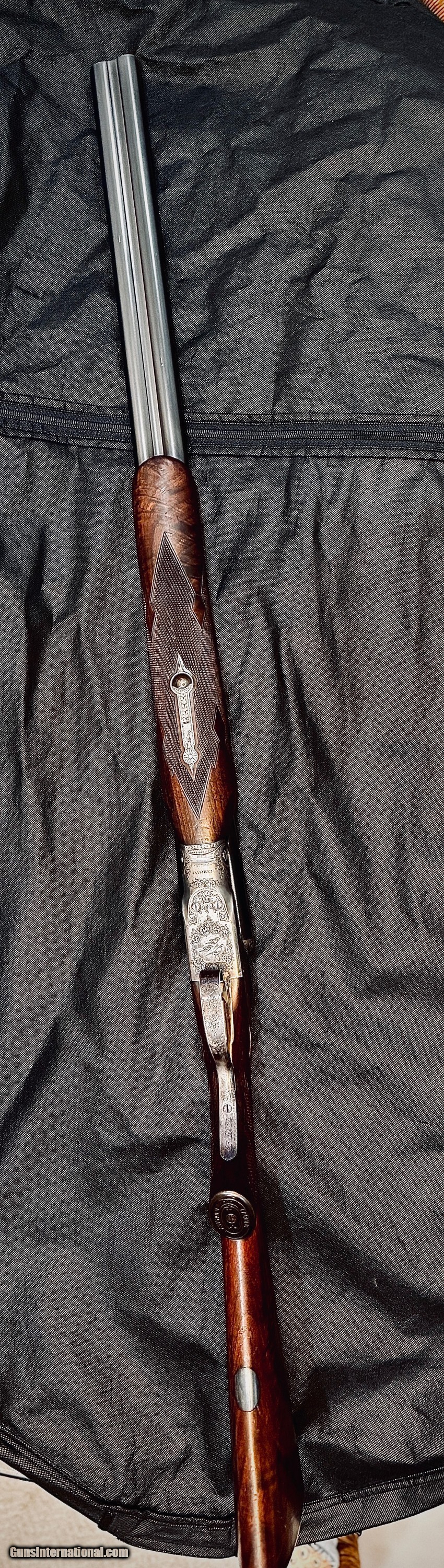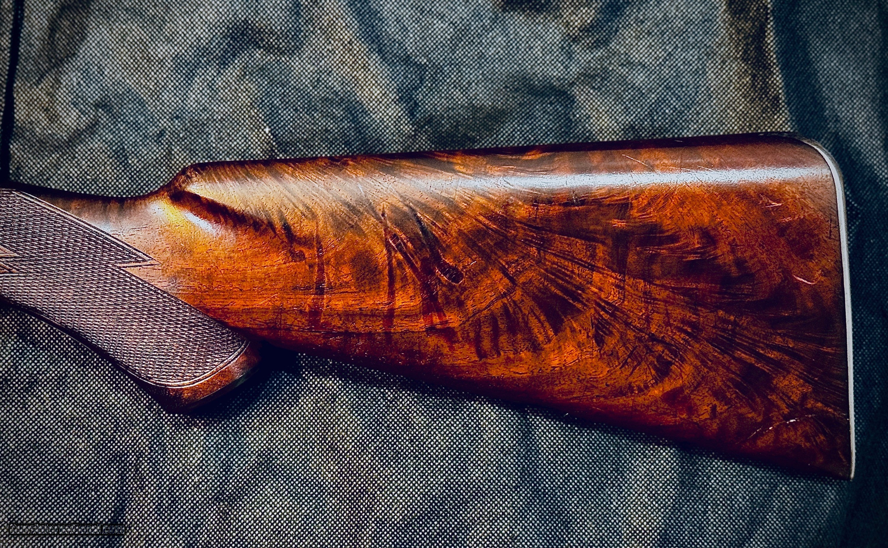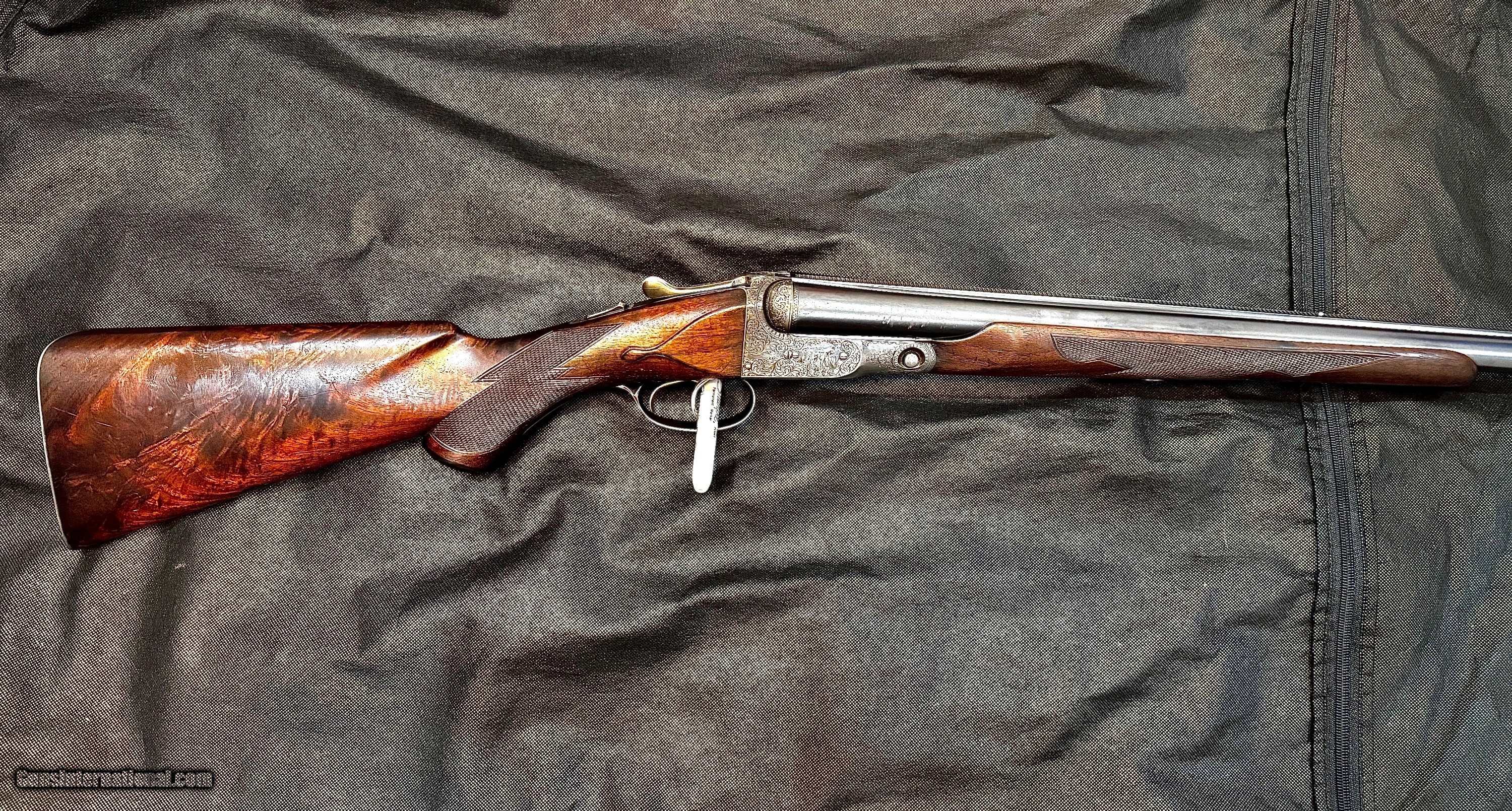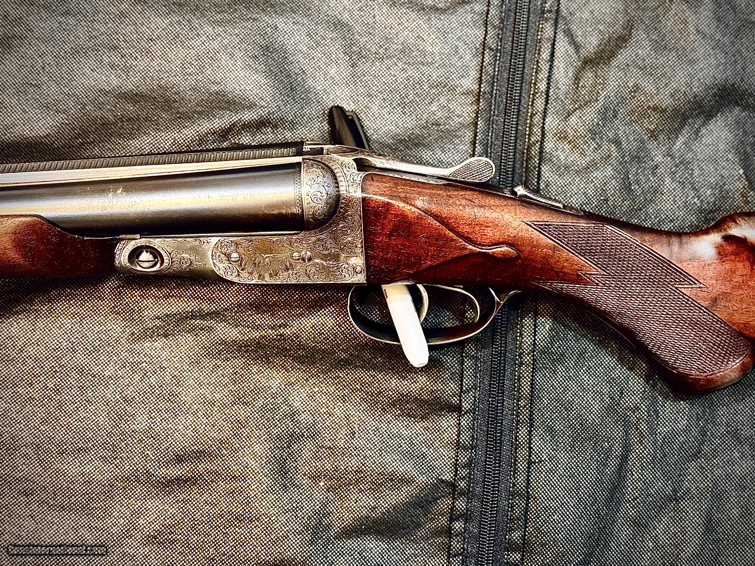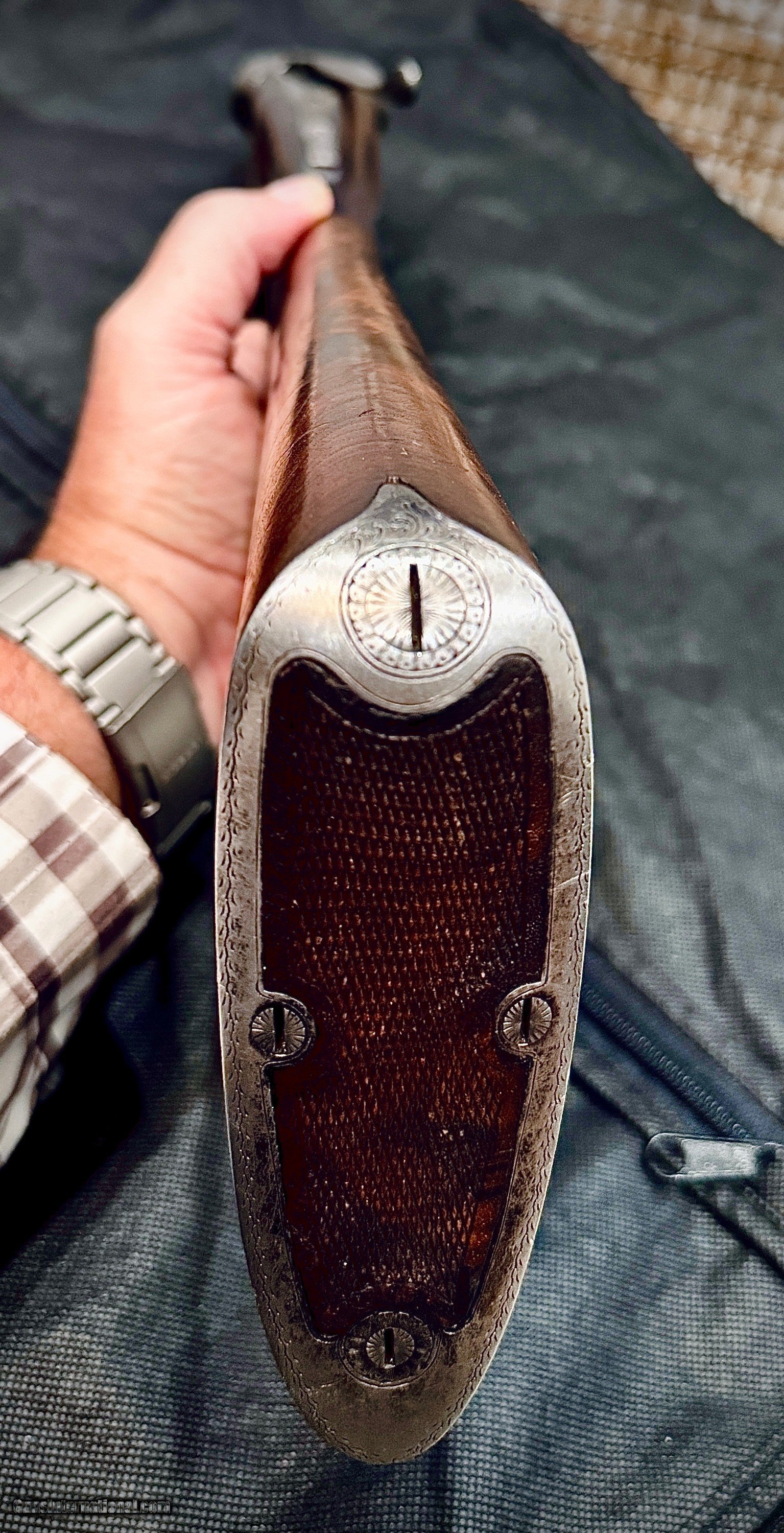 Description: ***EXTREMELY RARE — PARKER DHE 1/2 FRAM *** Documented by letter, Serial No. 241883 stands among only 86 known examples—a true scarcity even within advanced Parker circles. This is an all original, all number matching gun with a configuration that, to my knowledge, exists nowhere else in the surviving Parker records. A dignified, elegantly balanced DHE built on the coveted 1/2 frame, featuring: • Double triggers • Two ivory beads • Beavertail forearm • Skeleton butt plate • 28” barrels • Skeet/Skeet chokes • Weight: 7 lbs 1 oz (bathroom scale) • LOP: 13.5” (front trigger) • DAC: 1.5” • DAH: 2.5” This is the kind of Parker that anchors a serious collection—a documented rarity with a unique, letter confirmed configuration, offering both historical significance and field worthy elegance. Used but respectfully cared for, it remains a noble example of Parker craftsmanship and an opportunity that seldom surfaces. Shotgun Gauge: 12 Gauge Manufacturer: Parker Model: DHE 12g REAR 1/2 Frame Serial Number: 241883 Barrel Length: 28 Bore Info: 12 gauge Chambers: 2 3/4 Ejectors: Auto Ejectors Condition: 95% Barrel Type: Special Steele Triggers: Double Stock: Caped Pistol Grip - Black Walnut Fore End: Beavertail Butt Pad: Skeleton Finish: checkered stock Weight: 7 lbs 1 oz Sights: Ivory both front and mid beads Choke Left: Skeet Choke Right: Skeet Engraving: scroll engraving Extras: Rare 1/2 Frame, Ivory mushroom bead Item Location: SC Proof:Nitro: Yes Price: $49,999.99 Contact Seller |