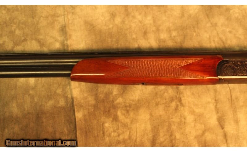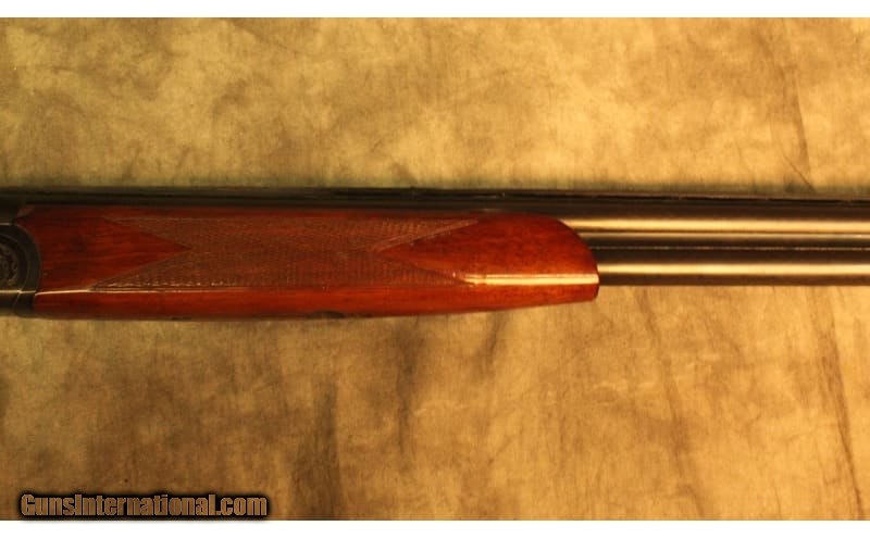 Description: Universal 20 gauge O/U Shotgun. This has 27-1/2" vent rib barrels with fixed IC&F chokes. Brass front bead. Blued boxlock action has full coverage scroll ornamentation. Features include; cross bolt locking, double triggers & extractors. Checkered walnut forearm & capped pistol grip stock. LOP 14-5/8" over original black recoil pad. Solid European shotgun imported by Universal Firearms, Hialeah, FL. Bbl. & Action retain 98% original blue. Original wood finish shows a few light scratches & marks. Sound mechanics.Very good bores. Sold as is. 20 Gauge SOLD Chambers: 3 inches Metal Condition: Very Good Wood Condition: Very Good Bore Condition: Very Good Barrels: 27.5 Triggers: Double Butt Pad: Rubber Weight: 6 lb - 1 oz Sights: Brass bead. Chokes: Improved Cylinder and Full Item Location: Cincinnati, OH |