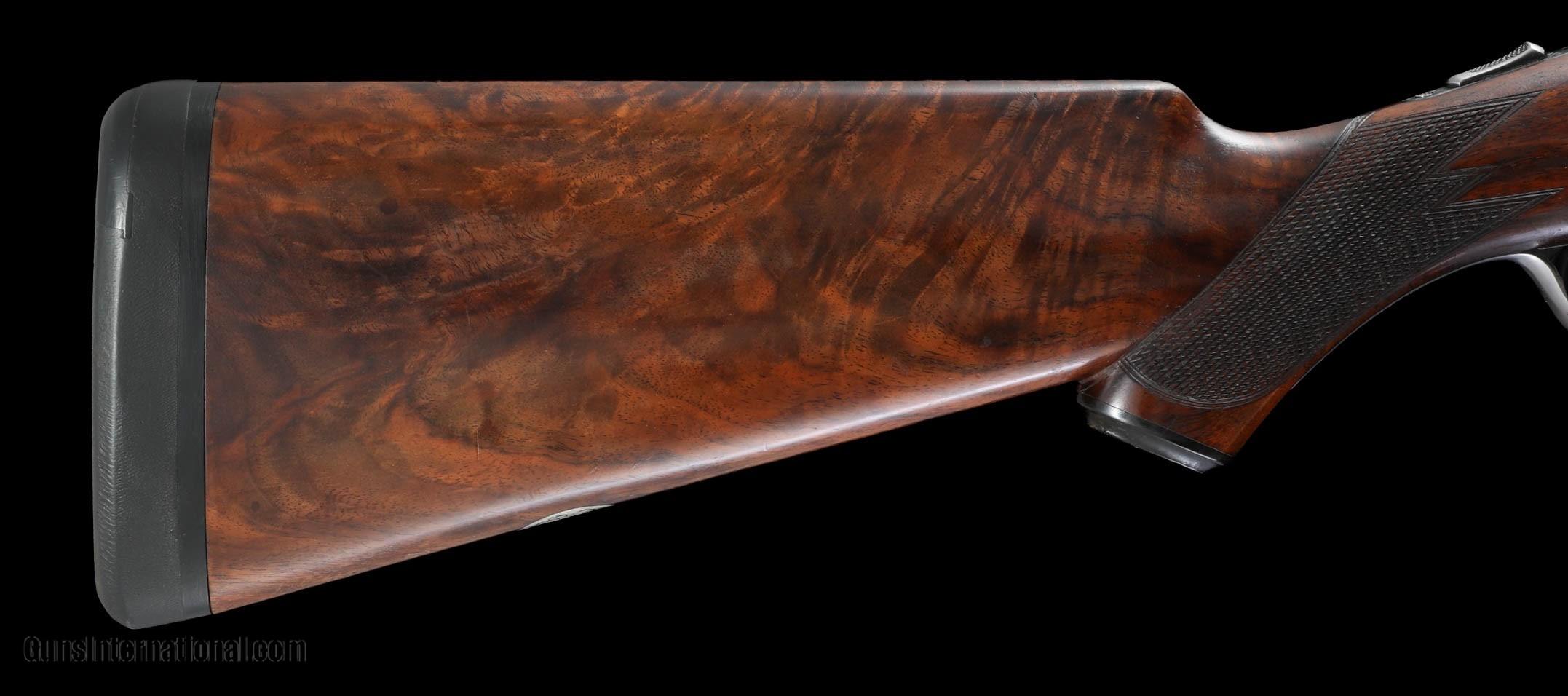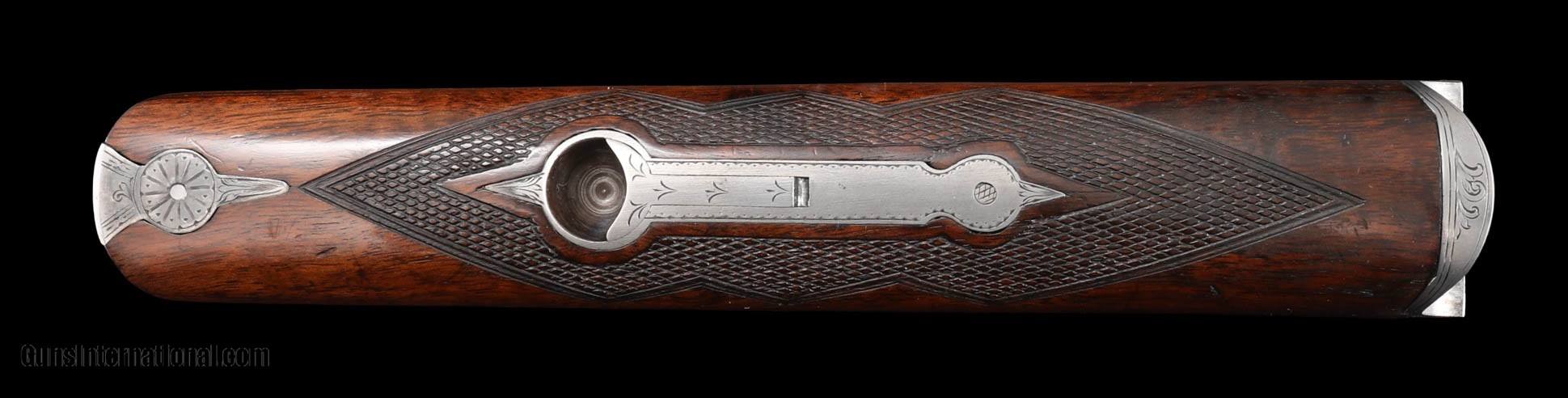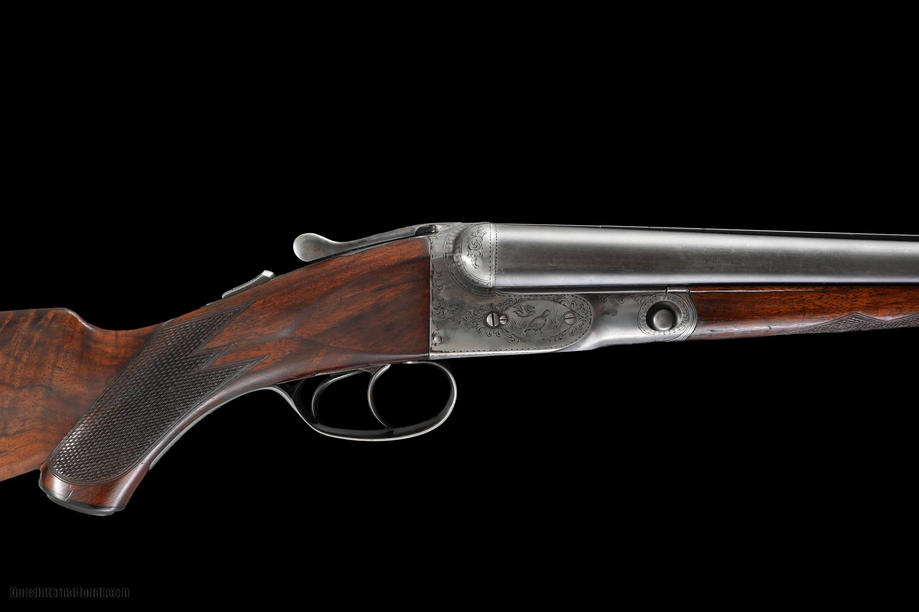 Description: Very good looking Parker GHE 20ga built with 28" barrels. Late production Remington built gun made on a "0" frame with splinter forend, double triggers, auto ejectors. Gun is nicely engraved in standard pattern of the era as seen in the photos. Capped pistol grip walnut buttstock is very nicely figured and has a perfect and near undetectable butt transplant and terminates with a black recoil pad. Gun retains about 95% original barrel blue, 40% original case colors. Stocks are sound and very good overall. Bores are bright and shiny. Mechanics are excellent. This would make a wonderful shooting companion! This fine Parker GHE is priced at $5195 plus shipping to your FFL. Please dont hesitate to contact me with any questions or reasonable offers at (704) 280-2382 or via PM on this site. Curio/Relic: Yes Shotgun Gauge: 20 Gauge Manufacturer: Parker Model: GHE Serial Number: 241309 Barrel Length: 28 Chambers: 2-3/4 Ejectors: Yes Condition: Excellent Metal Condition: Excellent Wood Condition: Excellent Bore Condition: Bright and shiny Triggers: Double triggers Stock Comb: 1-1/2 Stock Heel: 2-1/4 Fore End: Splinter Butt Pad: black recoil pad LOP: 14-1/4 Weight: 6lbs. 9oz. Choke Left: .017 Choke Right: .017 Price: $5,195.00 Shipping: $55.00 Contact Seller |