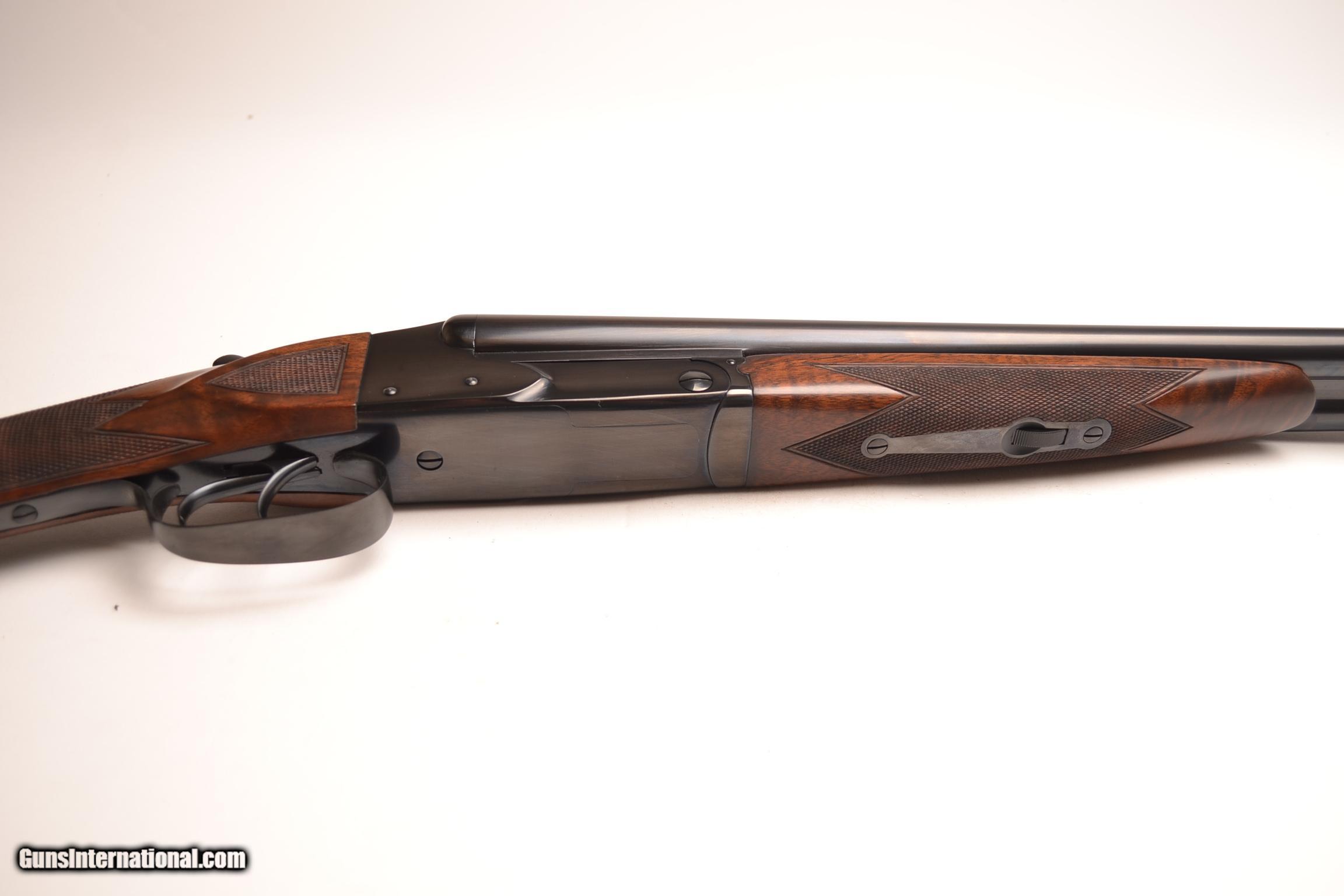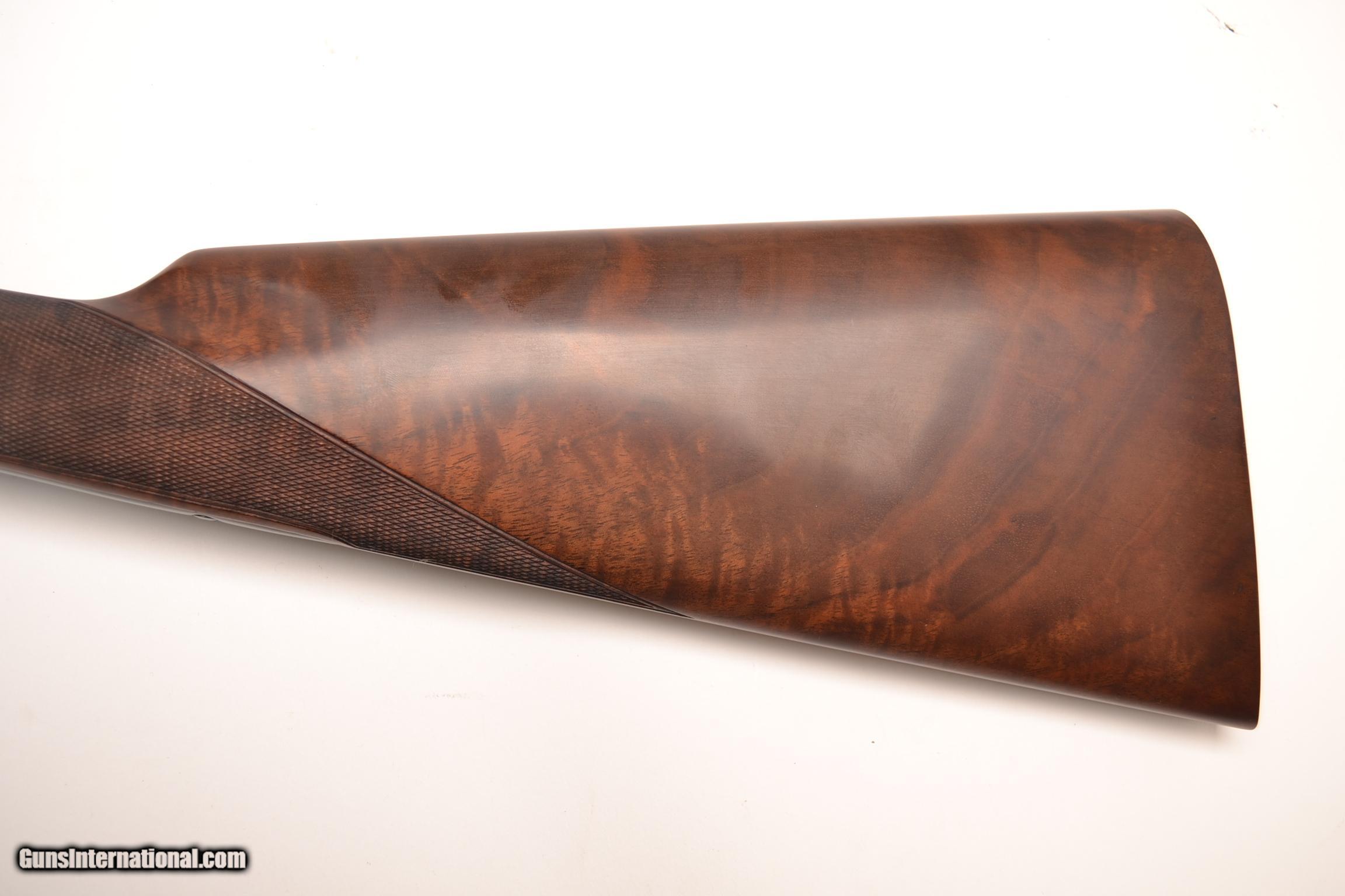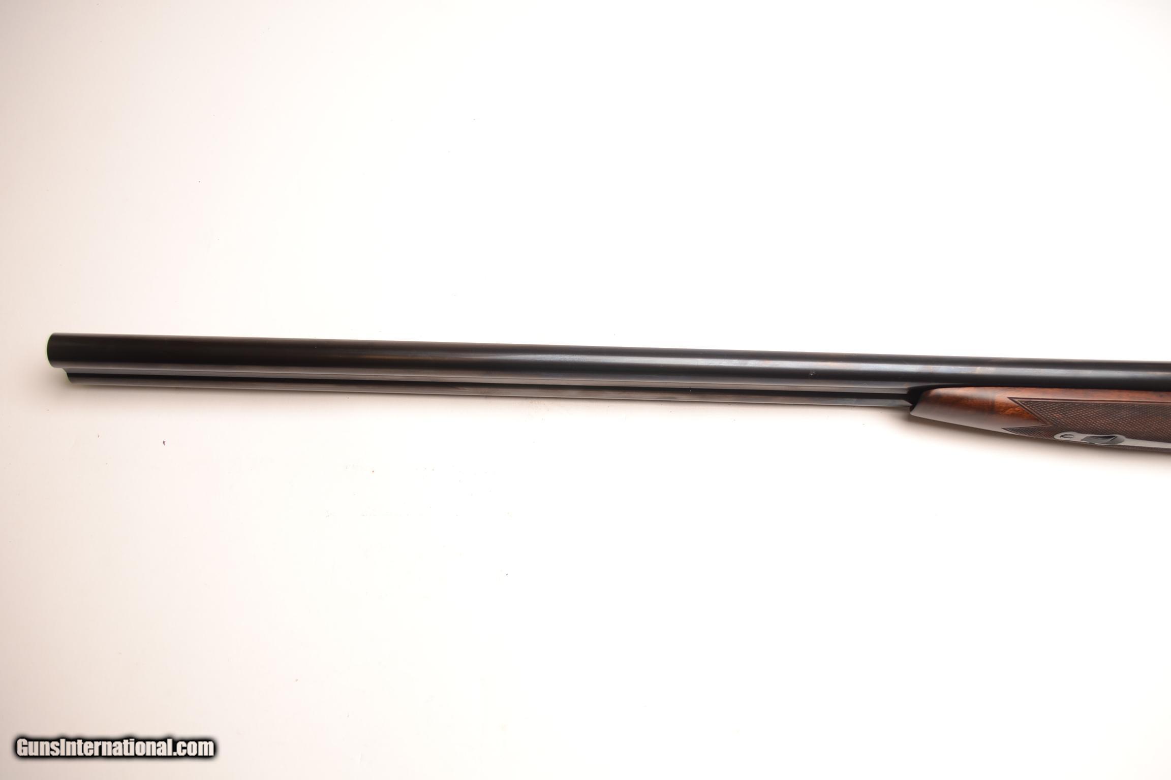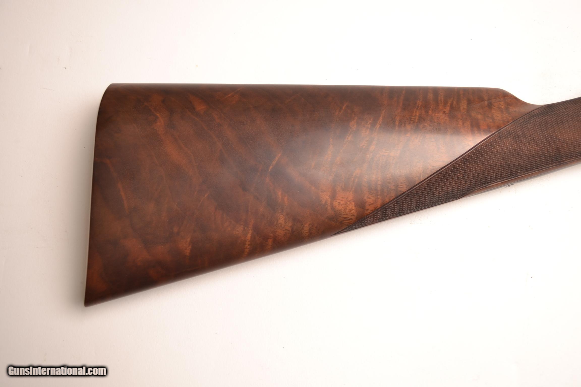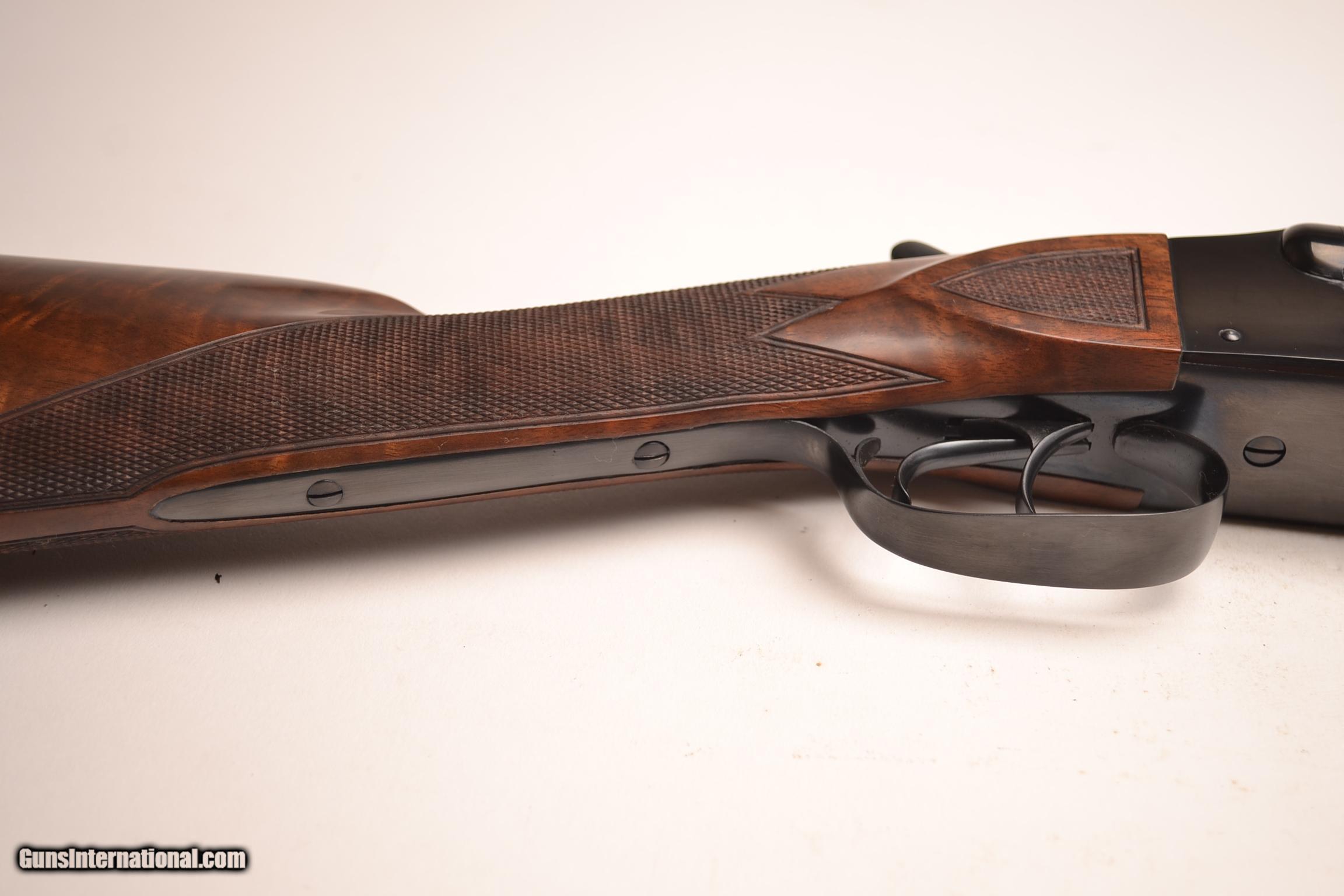 Description: Winchester Model 21 20ga. 28” barrels choked IC/MOD. Extremely rare gun featuring a Straight Grip, Double Trigger, Auto Ejectors, Splinter Forend, Deluxe checkering with checkered side panels and a checkered butt. This is a 99% gun, a very unusual combination. This is a real special gun. Inventory # 34718 14 ¼” x 1 ½” x 2 5/8” 6 lbs. 10 oz Price - $10,500 SOLD |