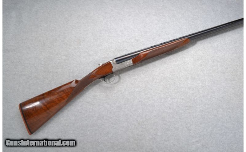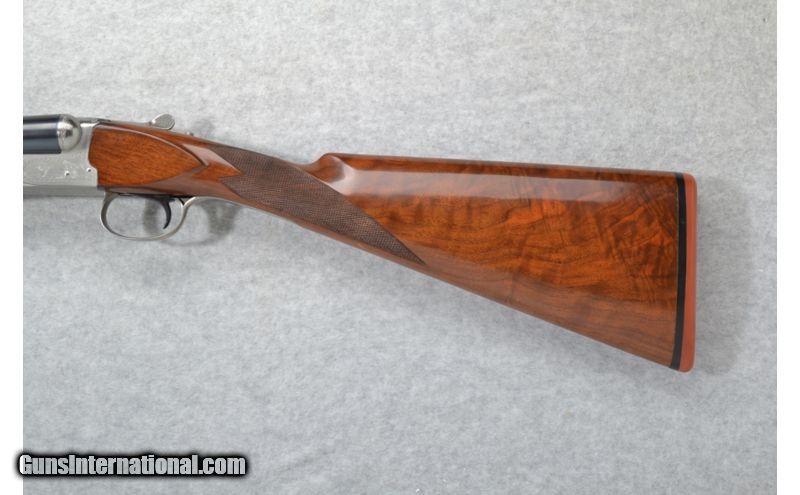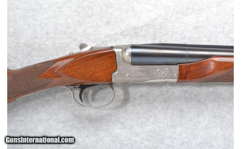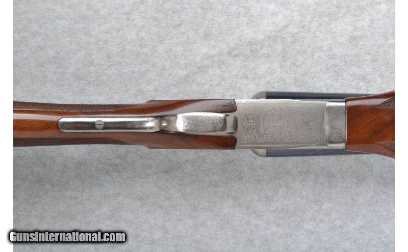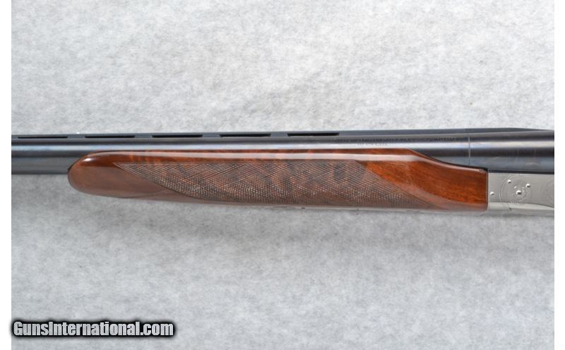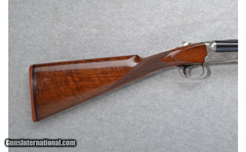 Description: Coin finish receiver has scroll with grouse and pheasant in flight outdoor scenes. SOLD Manufacturer: Made in Japan. Caliber Info: 12 GA Chambers: 3 inch. Metal Condition: Very good with minor handling marks. Wood Condition: Very good. Light handling marks. Bore Condition: Bright and shiny. Barrels: 25.5 inch ported barrels with a ventilated rib. Triggers: Single Stock: Checkered walnut straight stock. Stock Dimensions: LOP 14 1/4 inches. Fore End: Checkered walnut beavertail. Butt Pad: Winchester red rubber pad. Weight: 7 lbs. 4 oz. Sights: White front and middle beads. Chokes: Ported tubes. Extras: Hard Case Item Location: Richfield, WI |