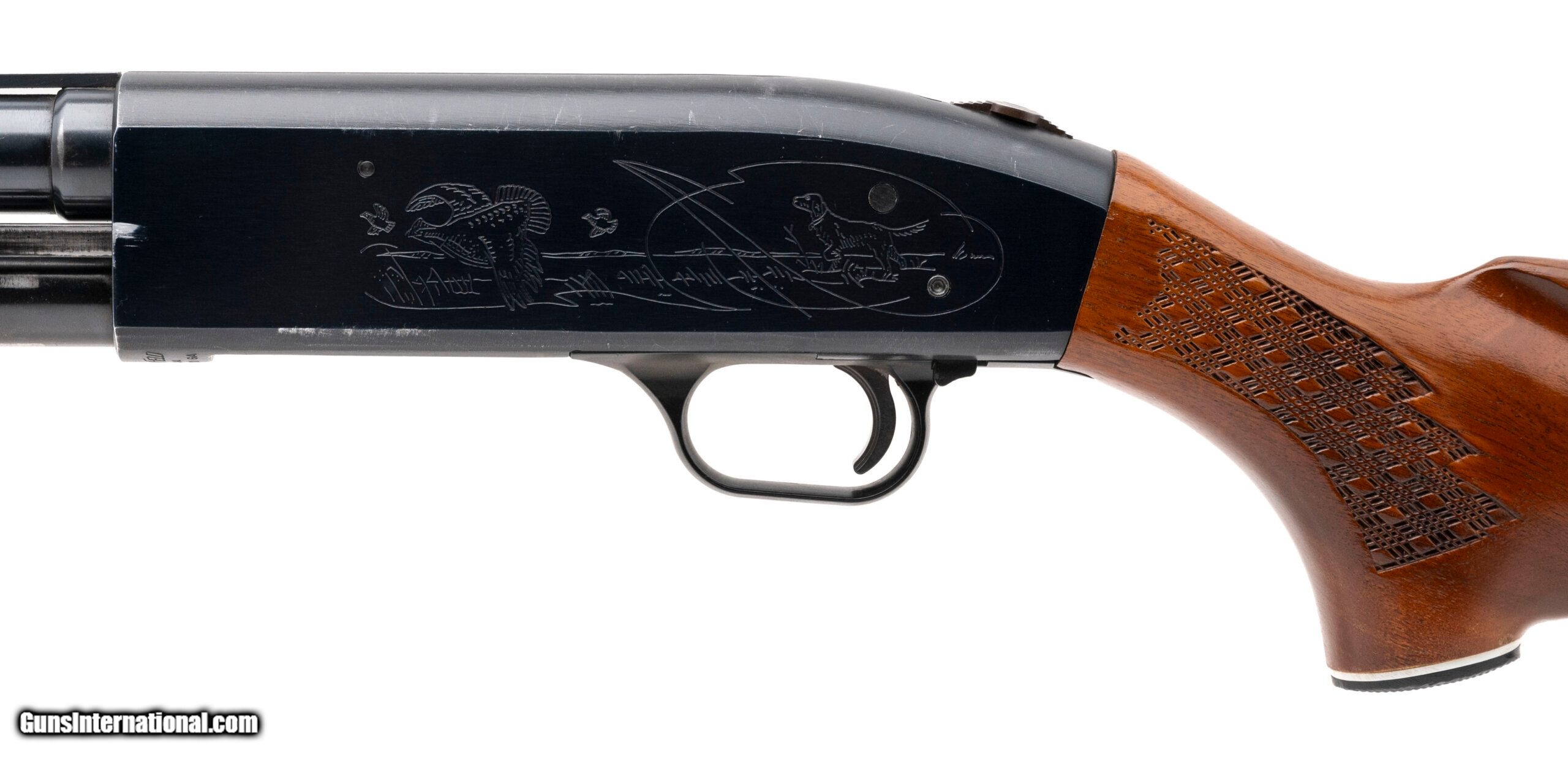 Description: "SN: NSN. 1960's vintage 20 Gauge with a 26"" vent rib barrel with a poly-choke. Bore is in excellent condition. Pump action field shotgun with an engraved receiver. Finish is in very good condition with wear noted on receiver. Wood stock is in very good condition with field wear noted. LOP is 14"". Overall condition is very good. SOLD Curio/Relic: Yes |