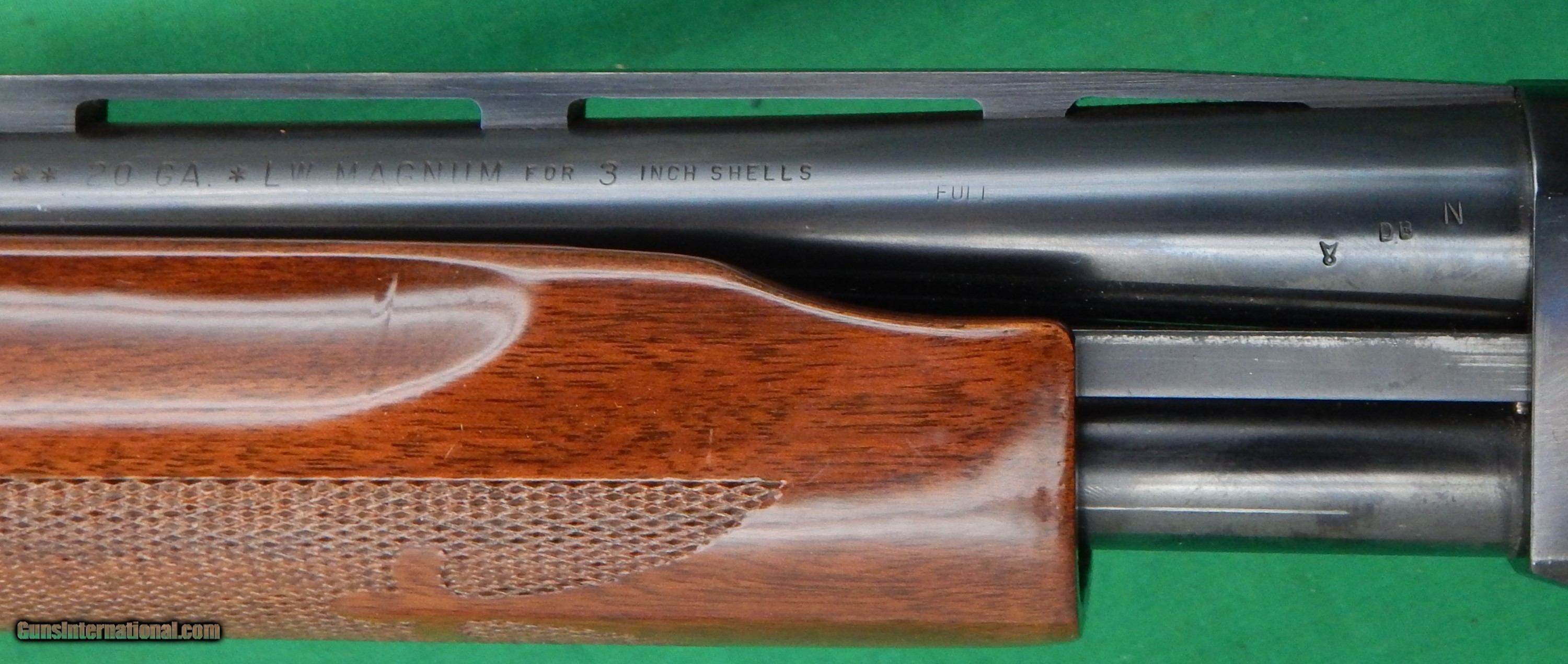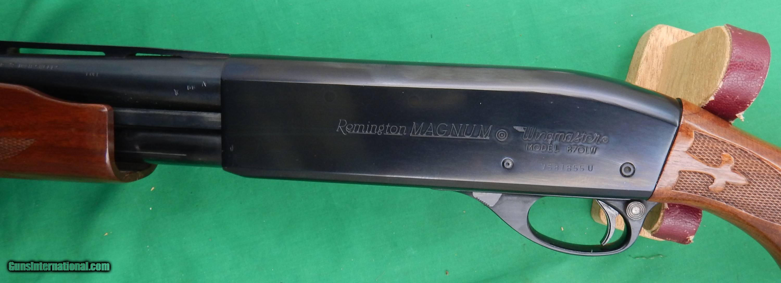 Description: Remington 870 Wingmaster, 20 Gauge "Lightweight MAGNUM" for 3" Shells, 28" Barrel with a bright bore, Pressed Checkering, Walnut Stocks with 99.9% Original Varnish, Remington Pad, Vent Rib, Serial Number V581855U. Overall Mint condition, just a beautiful little 20 gauge. MO plus $28.50 Shipping with a FFL required. SOLD Shotgun Gauge: 20 Gauge Manufacturer: Remington Model: 870 LW Magnum |
