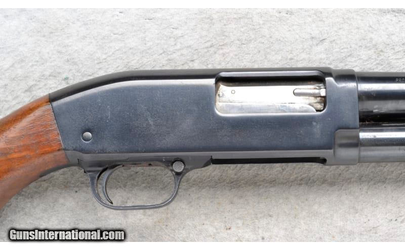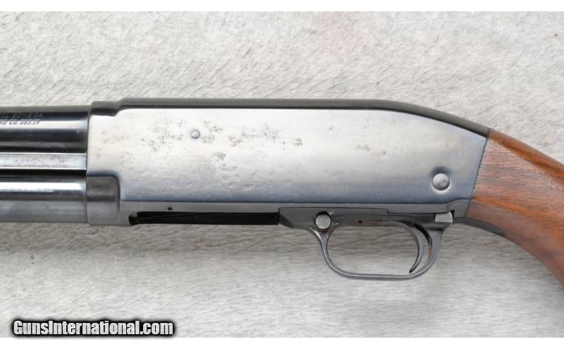 Description: This Sears & Roebuck Model J.C. Higgins 20 is a right hand pump action shotgun in 12 Ga. It has a 28 inch barrel with a brass bead front sight. With a 2 3/4 inch chamber it has a fixed Full choke. The butt stock is a smooth grip hardwood pistol grip with a black cap. The forearm is a grooved grip hardwoods. 12 Gauge SOLD Chambers: 2 3/4 inch. Metal Condition: Barrel has some freckling. Receiver appears to have been reblued over freckling/pitting. Wood Condition: Good. Has light handling marks. May have been refinished. Bore Condition: Needs a good cleaning. Barrels: 28 inch barrel. Stock Dimensions: LOP 14 inches. Fore End: Grooved grip hardwood. Butt Pad: J.C. Higgins rubber recoil pad. Weight: 7 lb. 8 oz. Sights: Brass bead front. Chokes: Fixed Full choke. Item Location: Richfield, WI |