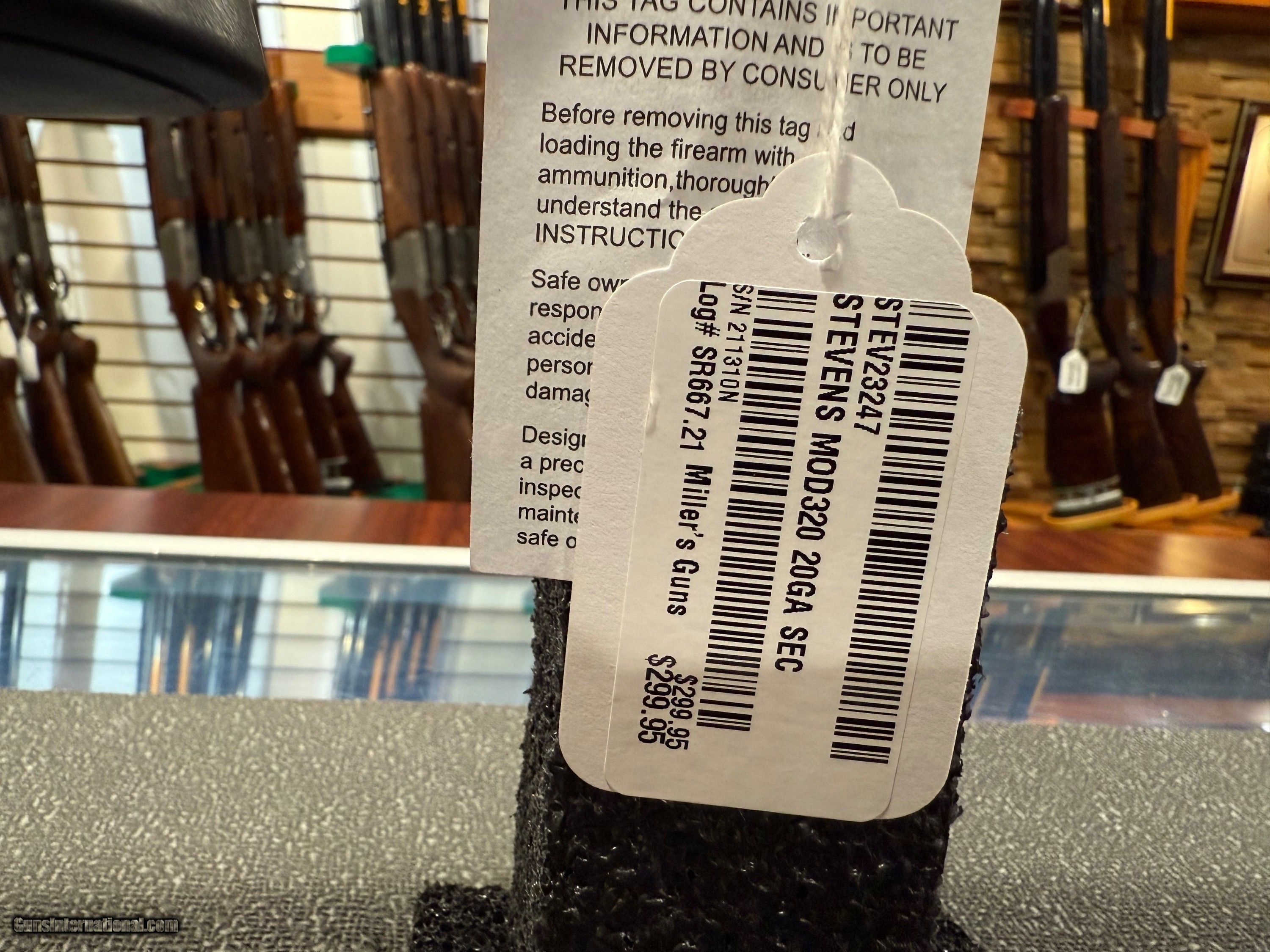 Description: Stevens 320 Security Thumbhole 20ga Pump action 3" chamber 18.5" barrel 5+1 capacity Shotgun Gauge: 20 Gauge Manufacturer: Stevens Model: 320 Serial Number: 211310N Barrel Length: 18.5 Condition: NEW Price: $299.95 Contact Seller |