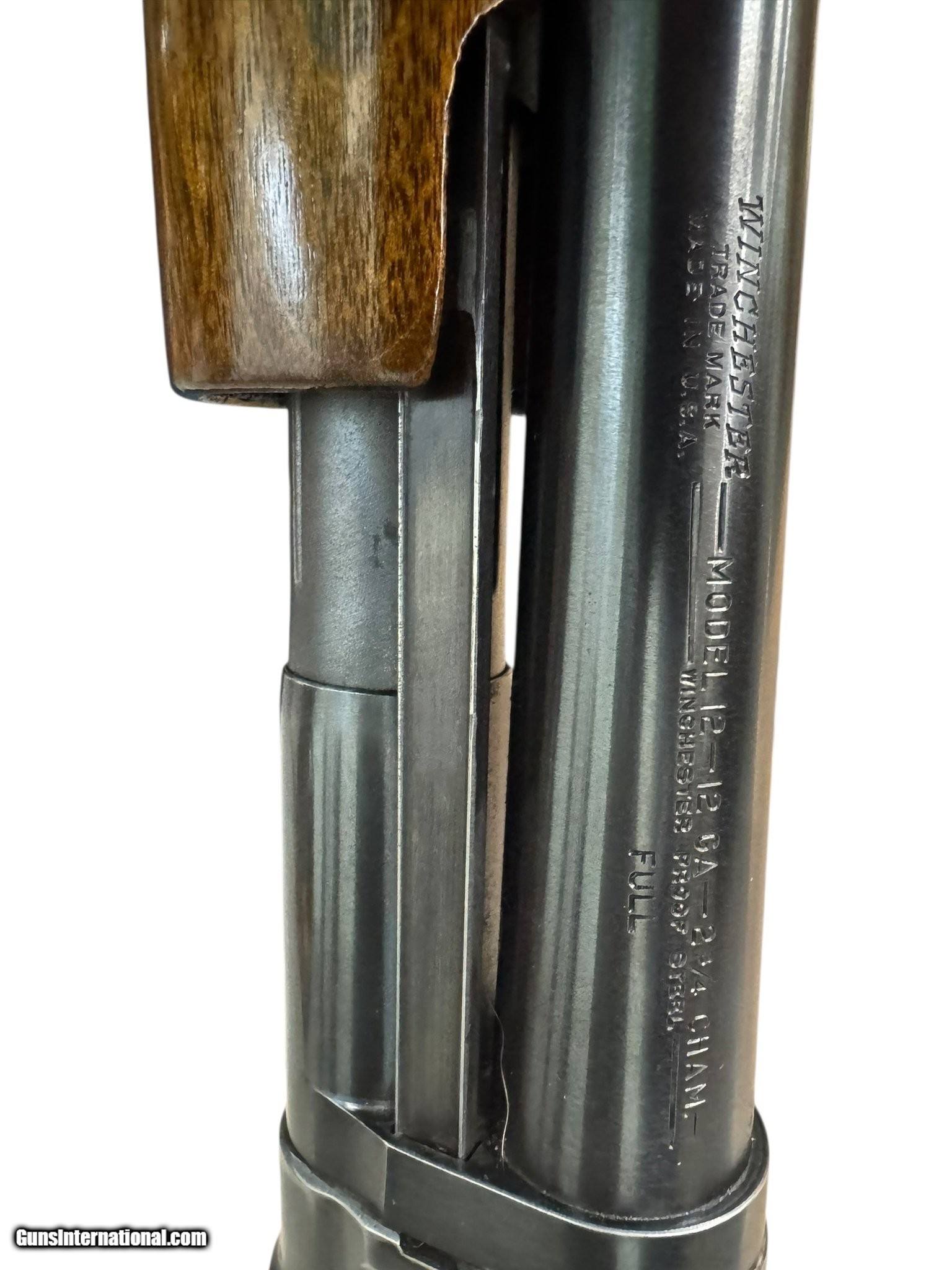 Description: Guns Listing ID: 592758 Winchester Model 12 – 12 Gauge Pump-Action Shotgun (1975) 30\" Barrel • Full Choke • Classic American Pump This Winchester Model 12 embodies everything shooters love about a true classic: smooth cycling, beautiful walnut furniture, and the kind of craftsmanship you simply don’t see anymore. Manufactured in 1975, this example showcases the timeless lines and durable build that have made the Model 12 one of the most respected pump-action shotguns in American history. FEATURES & SPECS Manufacturer: Winchester Model: Model 12 Gauge: 12GA Barrel Length: 30\" Choke: Full Action: Pump-Action Stock: Walnut with factory-style finish Recoil Pad: Aftermarket ventilated pad installed Sights: Standard bead front CONDITION This shotgun displays the character expected of a vintage Model 12 while still maintaining strong mechanical performance. The bluing remains solid with expected age-appropriate handling marks. Walnut stock and ribbed forend show honest wear, with no structural cracks. Pump action cycles smoothly, as Winchester Model 12s are known for. Bore is bright and clean. WHY THIS MODEL MATTERS The Winchester Model 12 — often called “the Perfect Repeater" — is widely regarded as one of the best pump-action shotguns ever built. This 1975 example sits toward the later years of production, offering collectors and shooters a classic platform with modern usability. Whether you‚re adding to a Winchester collection, looking for a reliable field gun, or wanting a piece of American shotgun history, this Model 12 is ready to serve. SOLD Manufacturer: WINCHESTER Model: model 12 Condition: Used - Non-Certified Barrels: 30" BARREL Action: PUMP ACTION Gauge Info: 12 GA Finish: black |
