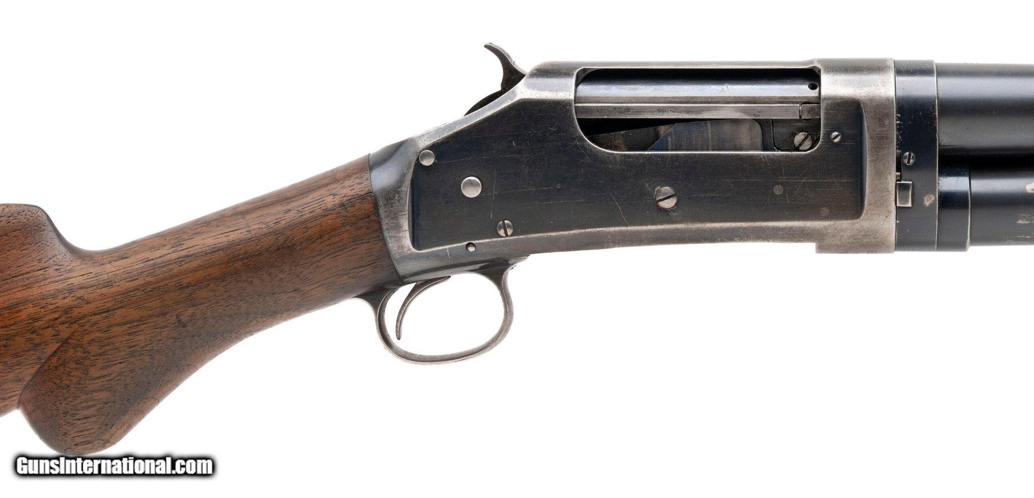 Description: Guns Listing ID: 585957 SN: C85105 made in 1899. 12 gauge pump action takedown shotgun with a 26" barrel with the original 2 ½" chamber and factory fixed Cylinder choke marked CYL on the barrel. Exposed hammer “slam-fire" action with early 3 screw forend and 13" LOP to the original steel butt plate. Most of the oil finish has worn off the stock but the forearm still has some original finish. While there is a significant amount of handling marks on the metal much of the original bluing is also still present. Overall in good condition for the age with an excellent bore. (L2025-10671) Manufacturer: WINCHESTER Model: MODEL 1897 Condition: Used - Non-Certified Barrels: 26" BARREL Action: PUMP ACTION Gauge: 12 GA Finish: blued Price: $1,295.99 Contact Seller |