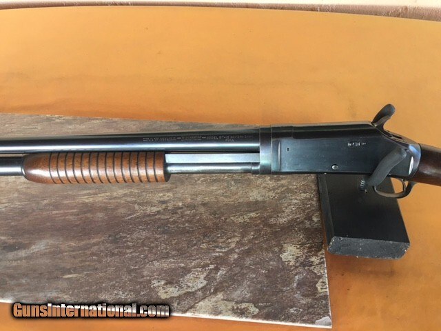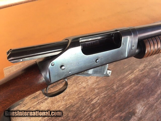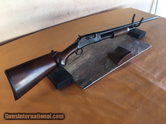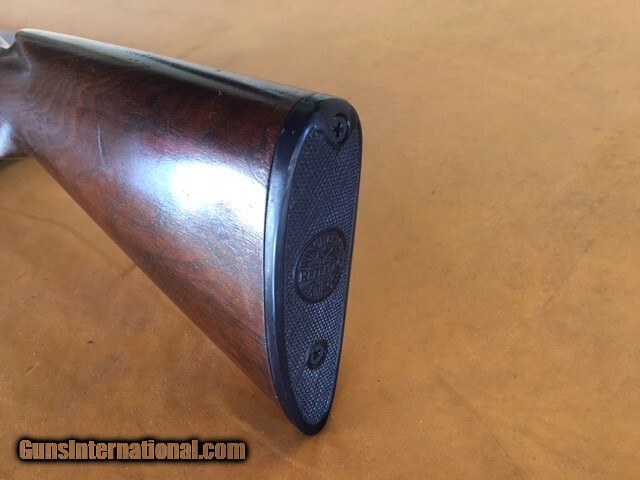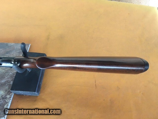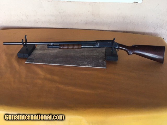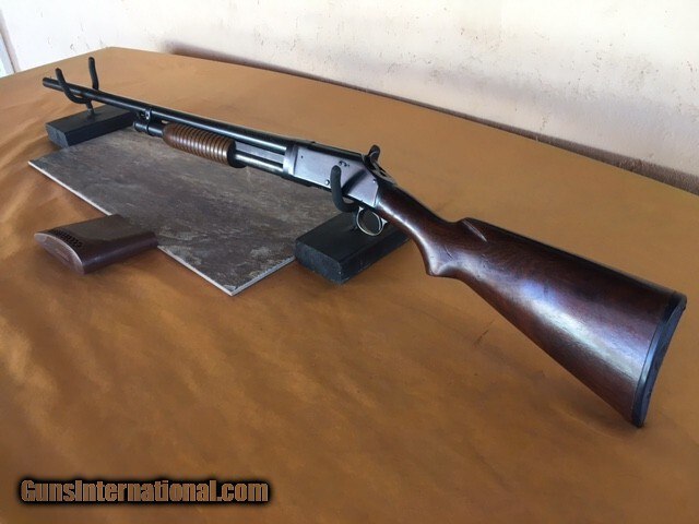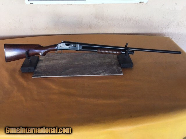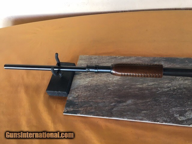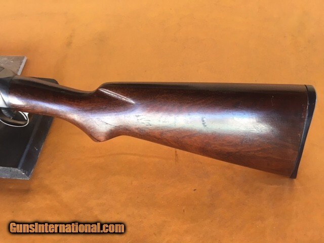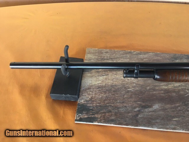 Description: Winchester model 1897 - Takedown Version- 12 Ga. Pump Shotgun - Smooth pistol grip style stock and a grooved forend with butt plate. 5 round tubulr magazine .29 In. long Nickel Steel barrel with front bead sight. Steel magazine and exposed bolt design by John Browning which became famous in WW1 with it's slam - fire capability. The trench gun version has become a favorite with miliary rifle collectors. Bore is clean and bright . Action is smooth and crisp . Internal parts in very good condition. Barrel and receiver are retraining approx. 85% bluing. Stock and forend are in excellent condition with no cracks or chips . Does have some minor scuffs and handling marks. Pachmayer slip on recoil pad included. LOP with pad is 14.25, w/o 13.50. Includes a new soft sleeve.Very good condition for it's age . Manufactured from 1897 to 1957 . This one was manufactured in 1953. We can ship to C&R or to your FFL at a flat rate of $50.00 S&I to lower 48 states. All of our rifles have been cleaned and lubricated. Curio/Relic: Yes Shotgun Gauge: 12 Gauge Manufacturer: Winchester Model: 1897 Serial Number: 991603 Barrel Length: 29 In. Long Condition: Excellent Metal Condition: Excellent Wood Condition: Very Good Bore Condition: Clean / Bright Barrel Type: Nickel Steel Action: Pump Butt Pad: Excellent LOP: 13.50 - See note Weight: 7.75 Lbs Sights: Front Bead Extras: Pachmyer Butt Cushion Case: New Soft Sleeve Price: $845.00 Shipping: $50.00 Buy Now Contact Seller |