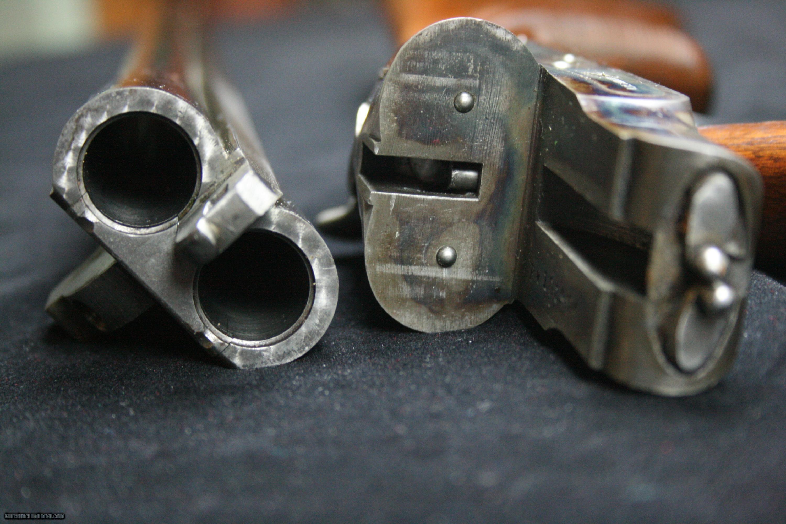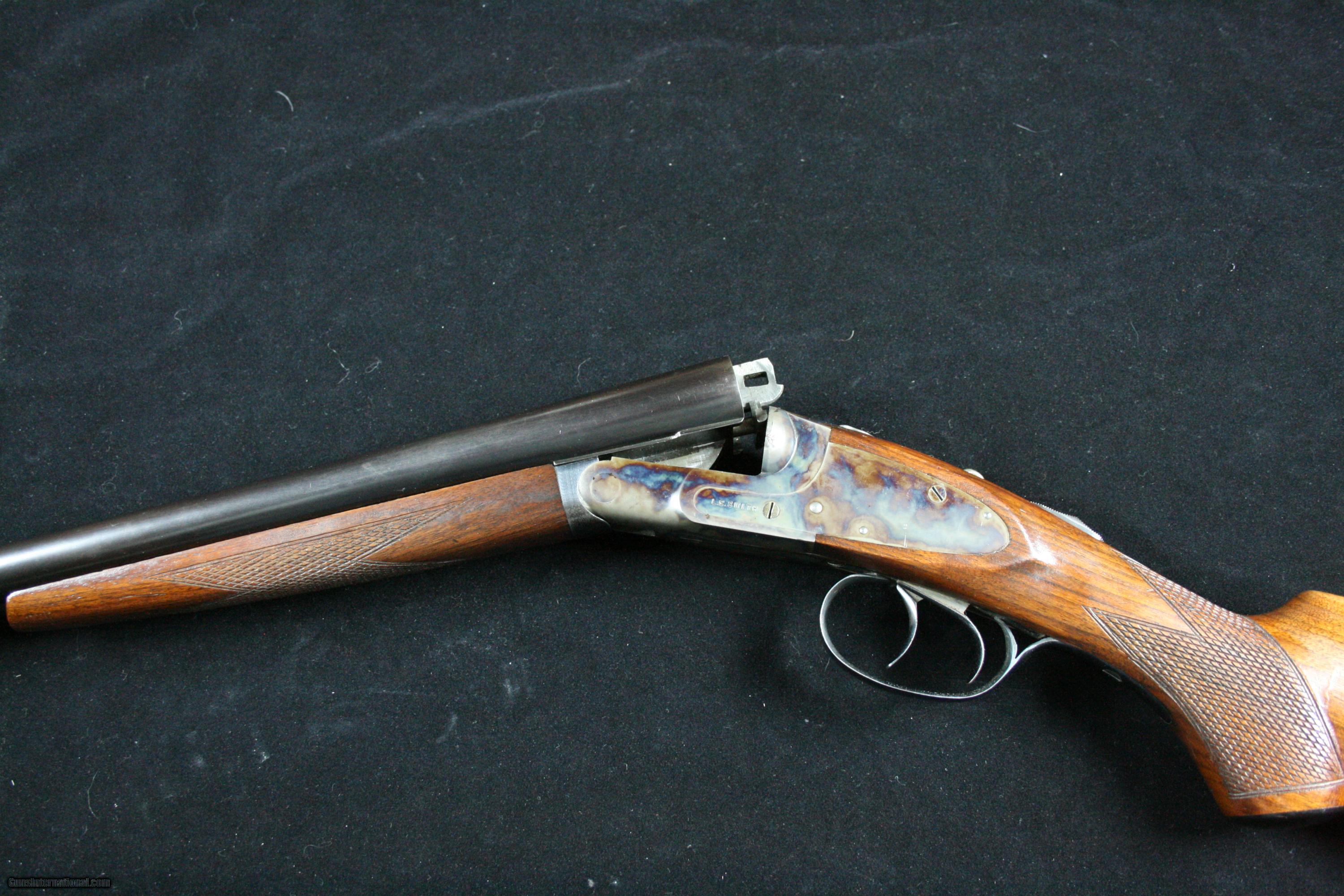 Description: L.C. Smith Field Grade 20Ga. 28" Barrels. S/N# 103894 Mfg. date of 1926. This gun has seen very little use over the years. Has some handling marks on stock. The accompanying photos tell the story. Note the jeweling on the barrel breach faces, and the vivid case coloring. Stock: 14 1/16" LOP. X 1 3/8" DAC. X 2 3/8" DAH. Chokes: Right Imp. Mod. Left Full. Chambers: 2 3/4". Three position safety. Weight: 6 lbs. 1 oz. This is a great collectors example of what a totally original gun should look like. Swings like a dream! This would make a great all around sporting clays and of course a fantastic upland companion. Three day inspection period. Buyer assumes shipping, and insurance fees. SOLD Manufacturer: L.C. Smith Model: Field Serial Number: 103894 Chambers: 2 3/4 Ejectors: no Condition: 99.9% Metal Condition: 100% Wood Condition: 99.9% Bore Condition: 100% Barrels: 100% Barrel Type: Steel Action: Double Triggers: double Gauge Info: 20 Stock: caped Pistol Stock Comb: 1 3/8 Stock Heel: 2 3/8 Stock Cast: 0 Fore End: Splinter Butt Pad: no LOP: 14 1/16 Rib: Matted solid Finish: 99.9 Weight: 6lbs. 1oz Sights: brass bead Manufacture Date: 1926 Choke Left: Full Choke Right: Imp. Mod Engraving: no Extras: no Case: no Proof:Nitro: yes |