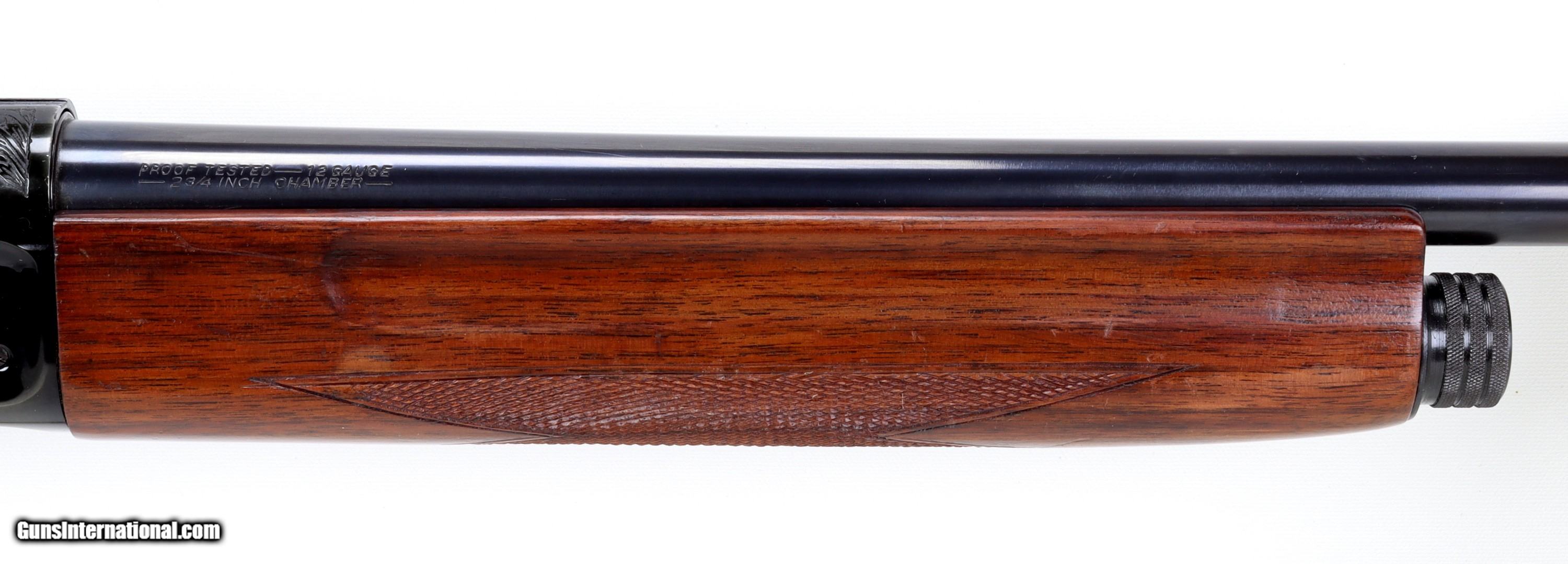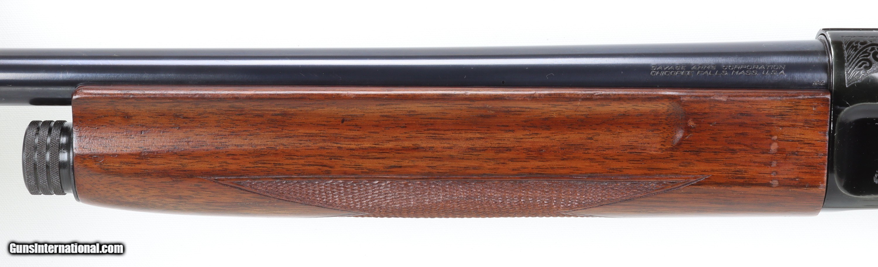 Description: SAVAGE Model 745 Deluxe, 12 Ga, 28" Barrel, Fine Bore, "DELUXE ENGRAVED RECEIVER", Dogs & Birds on Left Side, Ducks & Marsh on Right Side, 85-90% Original Condition. A Rare Copy of the ever-popular Browning A-5 with a lightweight alloy receiver. SN#130690, MFG: 1940-49. Weight: 7lbs, Trigger Pull: 3 3/4lbs. LOP: 14 1/8", DAC: 2", DAH: 3", Choke: IM (0.025). Wood has been Cleaned and Waxed, Otherwise all Original Gun. Ships to Lower 48, w/Insurance: $45.00 SOLD Curio/Relic: Yes Shotgun Gauge: 12 Gauge |