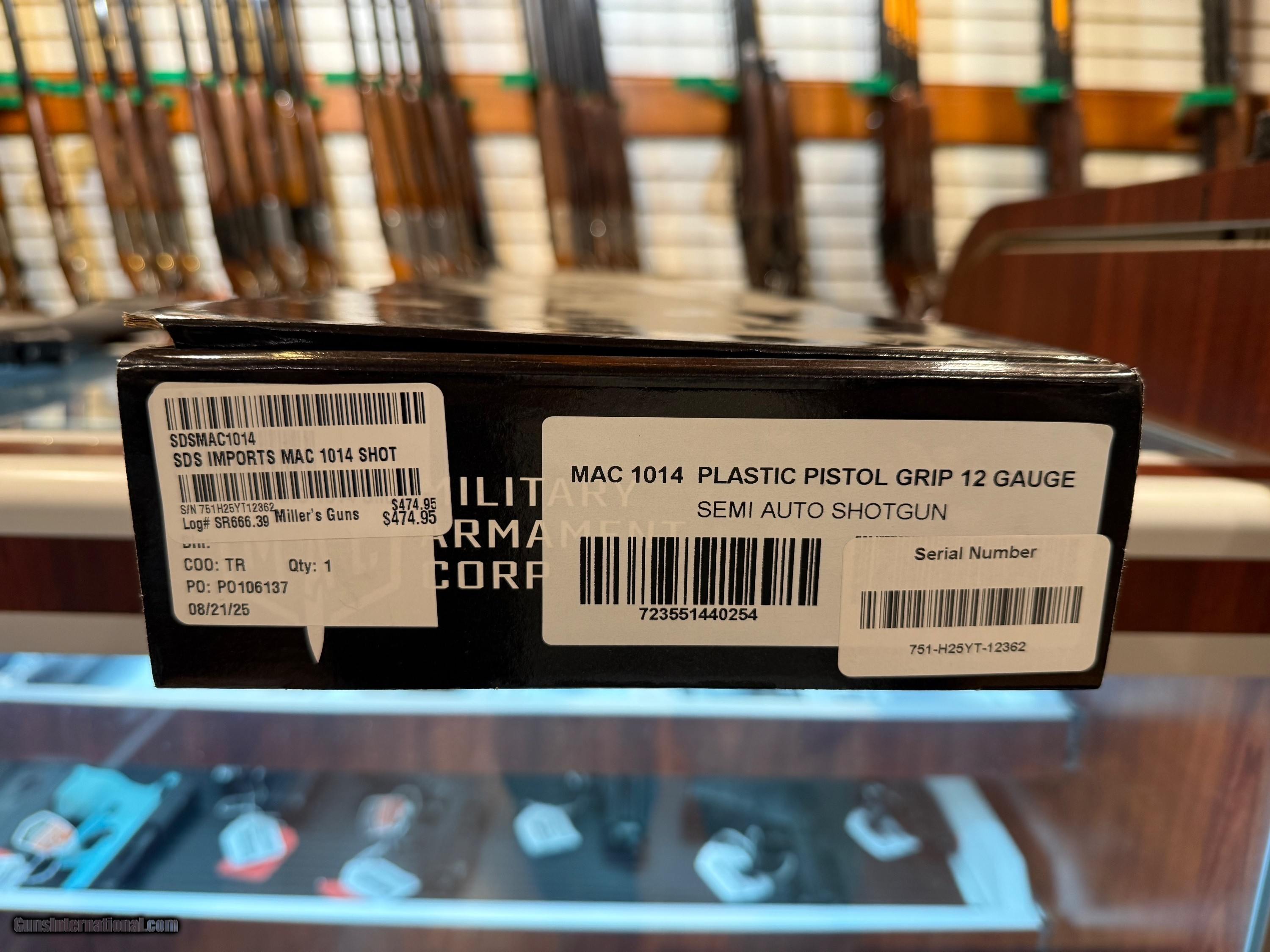Description: SDS / MAC 1014 12ga Semi auto Gas driven 3" chamber 18.5" barrel 5+1 capacity 47.8" OAL 8lbs C/M/F chokes included Shotgun Gauge: 12 Gauge Manufacturer: SDS / MAC Model: 1014 Serial Number: 751H25YT12362 Barrel Length: 18.5 Condition: NEW Price: $474.95 Contact Seller |