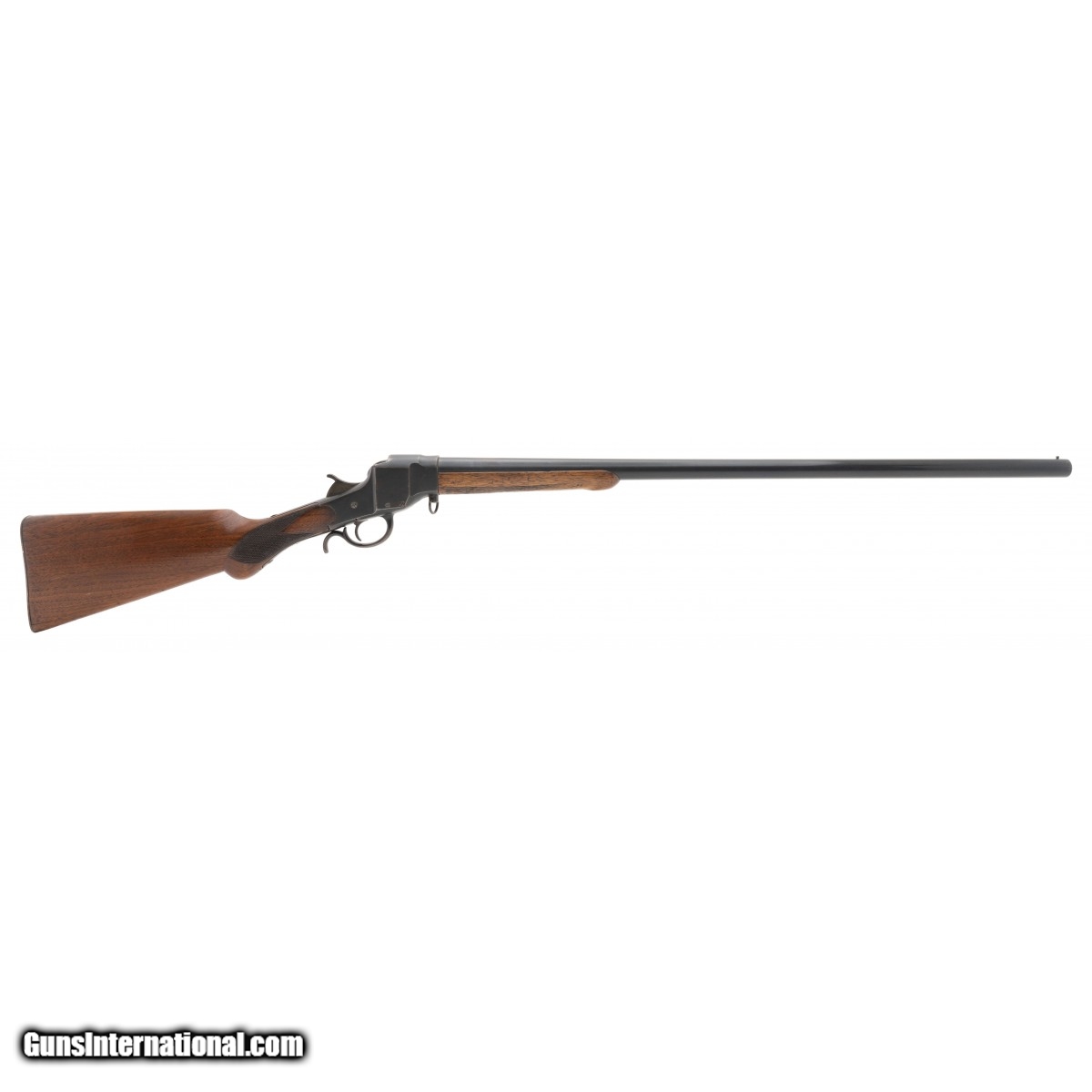 Description: " Falling block single-shot shotgun. Barrel is 30"" and choked Mod. The barrel has a small dent 9.5"" away from the muzzle. Action works properly. Very good overall condition. SOLD |