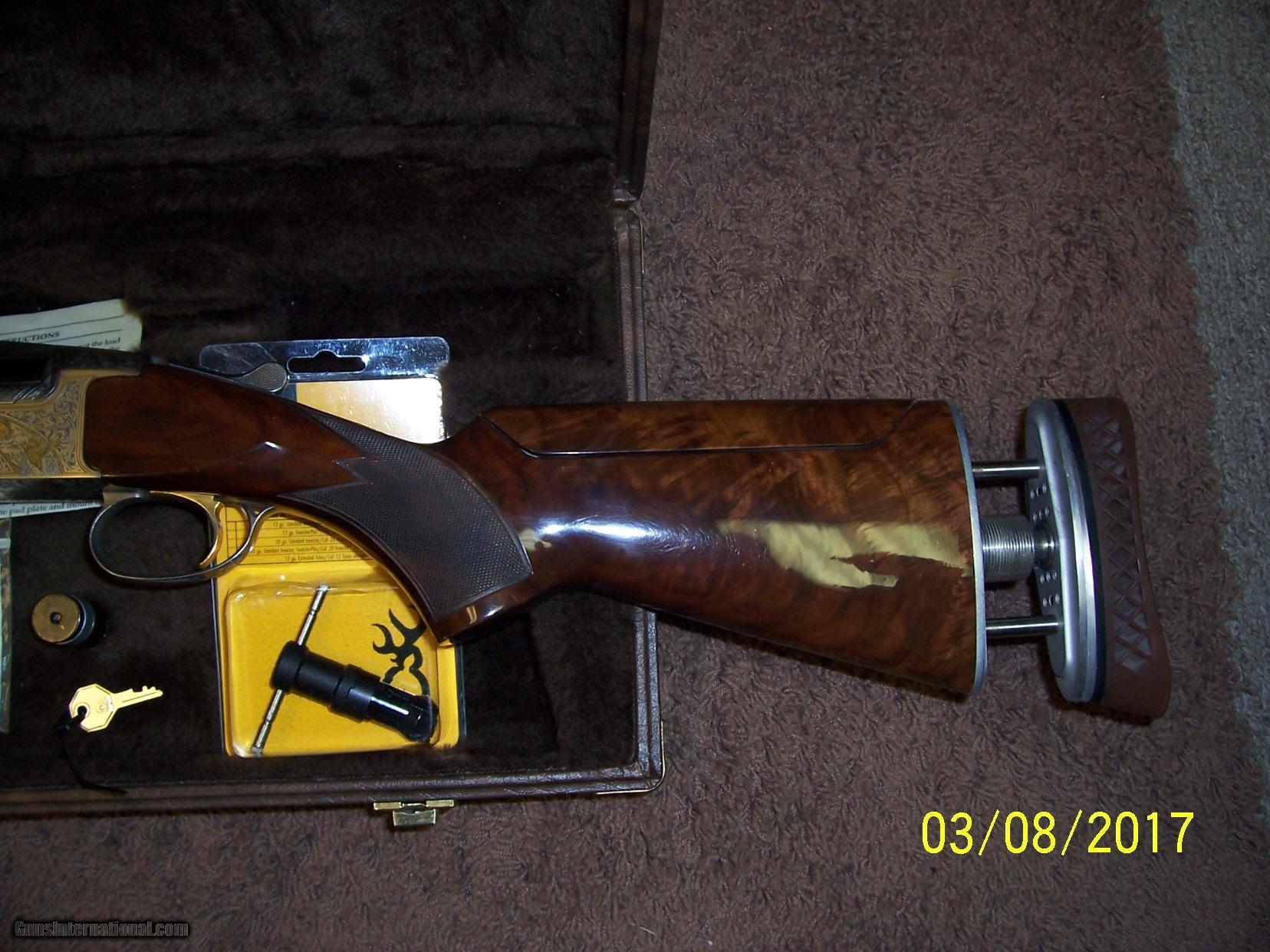 Description: This is gorgeous Golden Clays gun that is very tight (lightly used) with magnificent burled walnut grade 6 to 7 wood (exceptional wood) even for a Golden Clays gun. Manufacture date 2006 SN : 01109MT171. No disappointments with this gun. Great bluing with excellent nickel engraved receiver with gold inlays bilaterally. It comes with all the best Bt-99 factory options like Gracoil kick absorbing system, adjustable LOP ,adjustable comb with adjustable swivel butt plate,also included are all manuals & instructions and wrenches from the factory. Excellent original Browning take down hard case with two locks & key for both of the locks. It has three Browning extended Midas chokes in F, IM, & M constrictions. Any VERY minor handling marks are too small to see on pictures or the naked eye. I recently shot 47 out of 50 with this gun. It is a 34" barrel (the 34" barrel BT-99 guns have the best resale of all the BT-99 guns offered by Browning).The 32" barrel guns are less desireable and therefore cheaper. If you see glaring in the wood on the pictures it is not a defect, just a flash glare from camera flash. For additional pictures call 608-317-3045 (Dr. David Jahimiak) , Email : davidjahimiak and I will send them to your email address. For a CC or Paypal purchase add 3% to the total price that would also include the $44 shipping & insurance charge. I prefer a Cashier's check as payment. My local Browning dealer for has offered me $2750 (wholesale) for this exceptional gun. My asking price is very reasonable, but will consider a close offer. O/T: I am also a buyer for an O/U Golden clays type gun from 30" barrels to 34" barrels. I pay WAY higer than a dealer would pay if you are selling a high quality gun (prefer Browning or Winchester brands) 606-317-3045. David Jahimiak. SOLD Manufacturer: Browning Golden Clays Bt-99 BT99 Model: BT-99 Golden Clays (top of the BT-99 gin line) Serial Number: 01109MT171 Caliber Info: 12ga Bore: !2ga Chambers: spotless Ejectors: no Condition: Ecellent Metal Condition: Excellent Wood Condition: Excellent Bore Condition: Excellent Barrels: one Barrel Type: INV plus Action: single Triggers: one Gauge Info: 12 Stock: burled walnut Stock Dimensions: standard Stock Drop: adjustable Stock Comb: adjustable Stock Heel: adjustable Stock Cast: adjustable Fore End: Beaver tail Butt Pad: Browning LOP: adjustable Rib: ventalated Finish: glossy Weight: standard Sights: Optic front + mid bead Manufacture Date: 2006 Chokes: EXT: F, IM, M Choke Left: na Choke Right: na Engraving: yes Extras: all listed Case: Hard take down Item Location: La Crosse, WI 54601 Minimum Wall Thickness Left: Standard Minimum Wall Thickness Right: Standard |