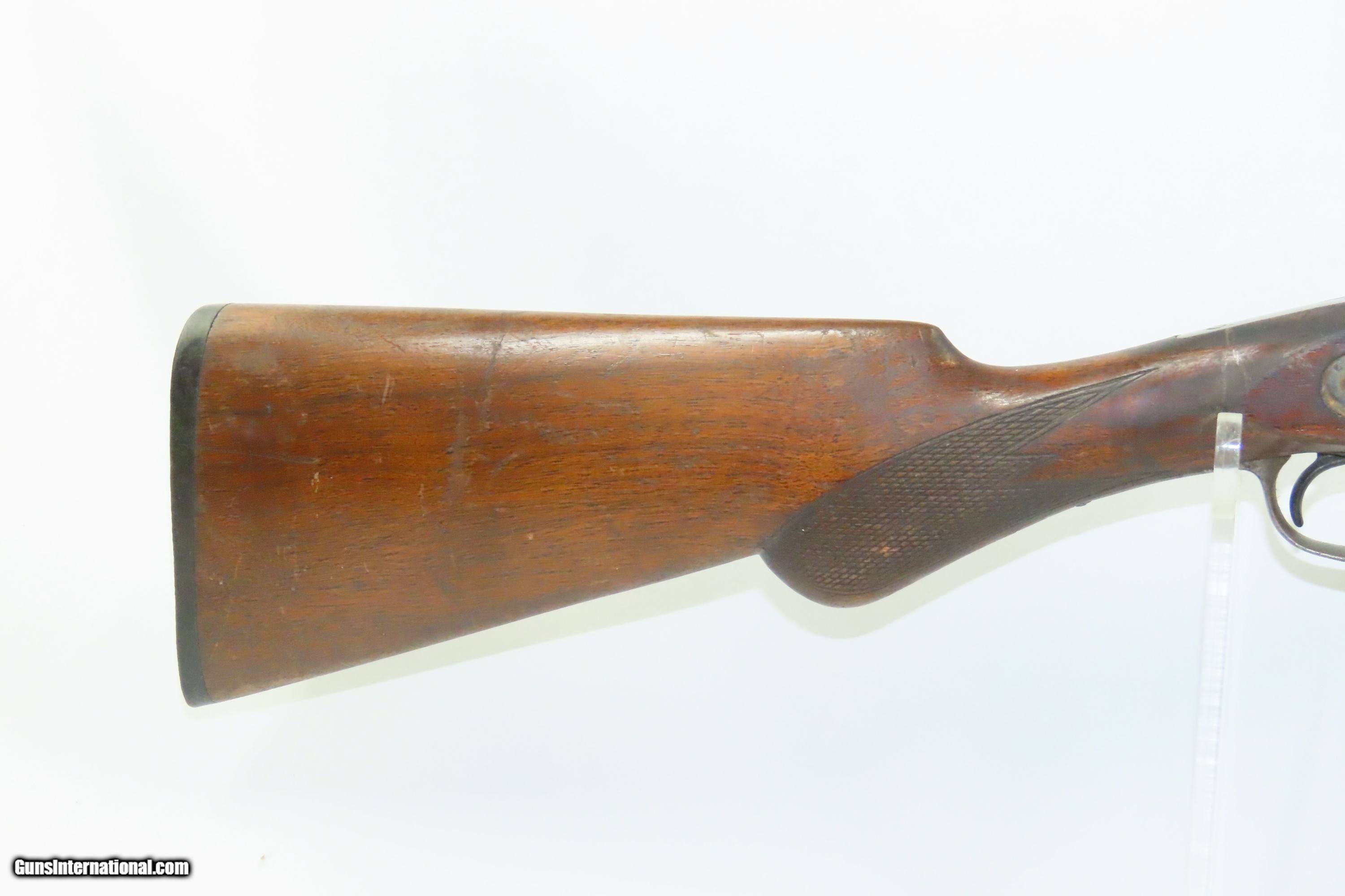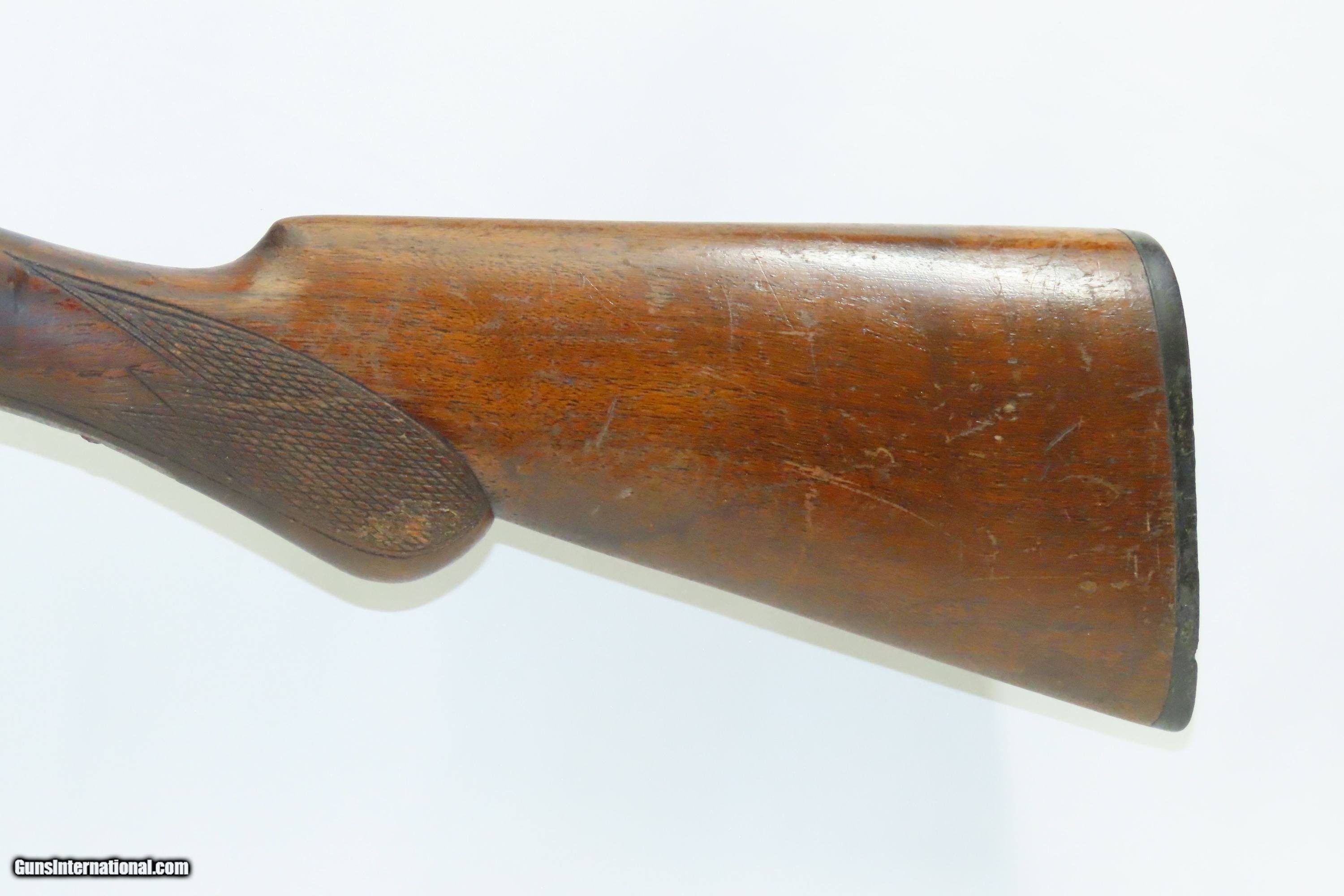 Description: CENTRAL ARMS CO. / SHAPLEIGH HARDWARE Double Barrel SxS HAMMER Shotgun C&R Made for SHAPLEIGH HARDWARE of SAINT LOUIS Here we present a C&R Central Arms Company Double Barrel Side by Side Shotgun made circa the early 1900s. Central Arms Company is a "Trade Brand Name" used by the Shapleigh Hardware Company of St. Louis, Missouri a wholesale sporting goods dealer on shotguns made for them by the Crescent Firearms Company of Norwich, CT (1892 to 1930+), the W.H. Davenport Arms Company also located in Norwich, Connecticut (1875 to 1910), and the Stevens Arms & Tool Company of Chicopee Falls, Massachusetts (1864 to 1916). This would have been primarily a sporting firearm designed for hunting small game and fowl. The overall condition is near fine. Original blue finish and case colors. The actions are excellent. The bores are smooth and bright. Solid lock up. The stock shows use and remains solid throughout. Numbers match. This firearm is classified as a Curio & Relic. Barrels are 30 inches. Gauge: 12 Overall condition as seen in photos. Very Fast. Very Safe. FREE SHIPPING. Will need to be sent to your local FFL or C&R licensee. This firearm is classified as a Curio & Relic. Guaranteed AUTHENTIC & Includes CERTIFICATE OF AUTHENTICITY. ancestryguns $1200 #240612 SOLD Curio/Relic: Yes |