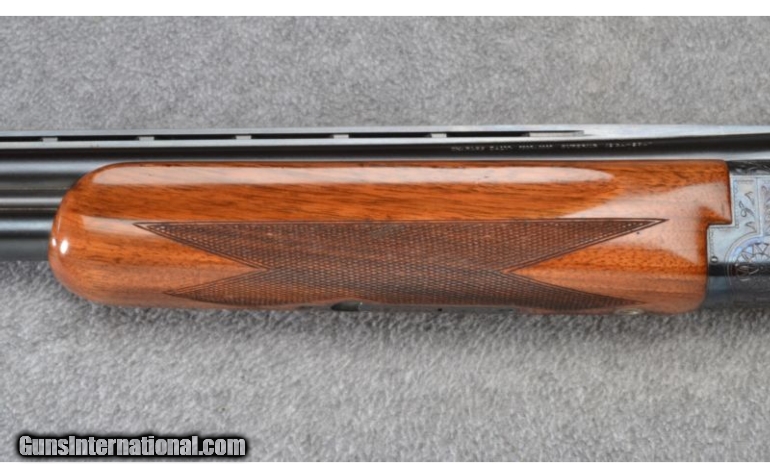 Description: Wood shows some light use marks and remains free of cracks. Blue and bores remain excellent. Lockup remains tight. Miroku manufactured. SOLD Manufacturer: S/N S566XXX Caliber Info: 12 GA Chambers: 2 3/4" with Ejectors Metal Condition: Excellent Wood Condition: Very Good Bore Condition: Excellent Barrels: 32 Triggers: Single-Selective Safety Stock: Checkered Walnut Pistol Grip with Black Cap Stock Dimensions: 14 1/4" LOP Fore End: Checkered Walnut Butt Pad: Red Rubber Weight: 8 1/4 LB Sights: White Front Bead with White Mid-Bead Chokes: Modified/Full Item Location: Wheeling, WV |