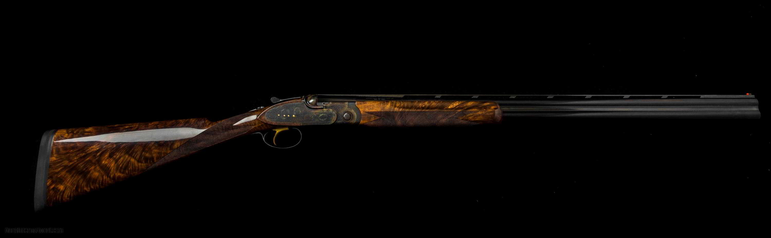 Description: Stunning CSMC A10, .20 bore game bird gun. Gun features include 28" bbls, vent rib, Truclock chokes, single selective trigger, auto-safety, target forearm, exhibition grade wood, with straight grip. True sidelock with color cased frame with nearly full coverage rose and scroll engraving. Top lever, trigger guard, and forearm metal is engraved as well. Length of pull is 14 3/8", over a black, Galzan pad. Drop at comb is 1 1/2". Drop at hell is 2 1/4". Also included is makers case, with cover. As quick to point and shoot, as any bird gun you can pick up. Gun is in our inventory. Ready to ship, today. SOLD Manufacturer: Connecticut Shotgun Model: A10 Serial Number: A10-0014** Bore: 20 Chambers: 2 3/4 Ejectors: Yes Condition: New Barrels: 28 Triggers: Single Selective Stock Dimensions: 14 3/8 x 1 1/2 x 2 1/4 Rib: Vent Weight: 6 lbs. 3 oz. Chokes: Trulock |