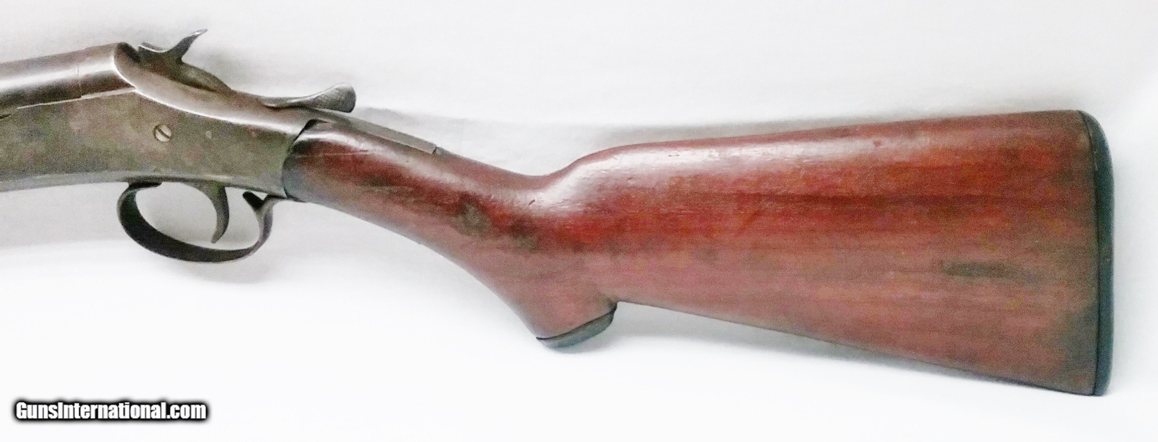 Description: This original 12 Ga 2-1/2" Crescent Firearms Long Tom shotgun has a 36” browned tapered round barrel with a bead front sight with ”GENUINE ARMORY STEEL” stamped on top of barrel. The bore has some light pitting but is good condition. The Walnut buttstock and forend are good; the stock has some scratches, dents and repaired cracks on the bottom and top of the wrist near the tang. The forend has some light scratches. The stock features a plastic buttplate with a small chip on the left edge. This shotgun overall is in good condition. The length of pull is 14”. Overall length is 51-1/2”, weight is 6.6 lbs. Our stock number is A889. Will ship to anywhere in the United States. Buyer pays freight and insurance. SOLD Manufacturer: Cresent Firearms Model: Long Tom Bore: Smooth Condition: Good Metal Condition: Good Wood Condition: Good Bore Condition: Good Barrels: One Barrel Type: Tapered Round Action: Break Open Triggers: One Gauge Info: 12Ga Stock: Walnut Butt Pad: Synthetic LOP: 14 in Finish: Browned Weight: 6.6 lbs Sights: Bead Item Location: OR |