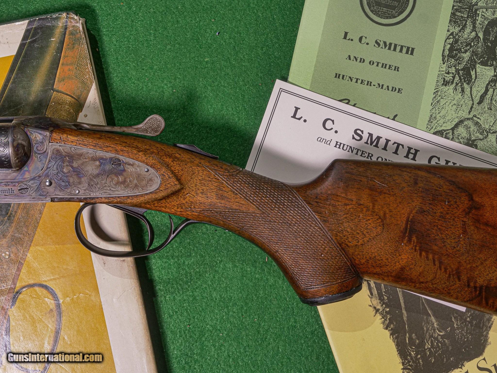 Description: L.C. Smith - Specialty Grade, SxS, 16ga. 28" Barrels Choked M/F. Raised rib, twin brass beads, factory beavertail forend with Schnabel, 99% case color with specialty grade engraving, hunter factory LC smith trigger, non-automatic safety, automatic ejector, pistol grip stock, silvers type recoil pad, 2 ½” chamber. Shows some handling marks but the blue, checkering and wood finish are excellent. Rib has some small marks in it. Solid, tight gun in a rare configuration. Inv: 88551 7 lbs. 4 oz. 14 1/8" x 1 ¼" x 2 1/8" $4,100.00 The largest, most diverse, high-grade shotgun and firearms inventory in history. There is no one even close and a service department to back up everything we sell with our unparalelled warranty to support our customers exclusively. If someone tells you they have a larger inventory, just look for yourself. Price: $4,100.00 Contact Seller |