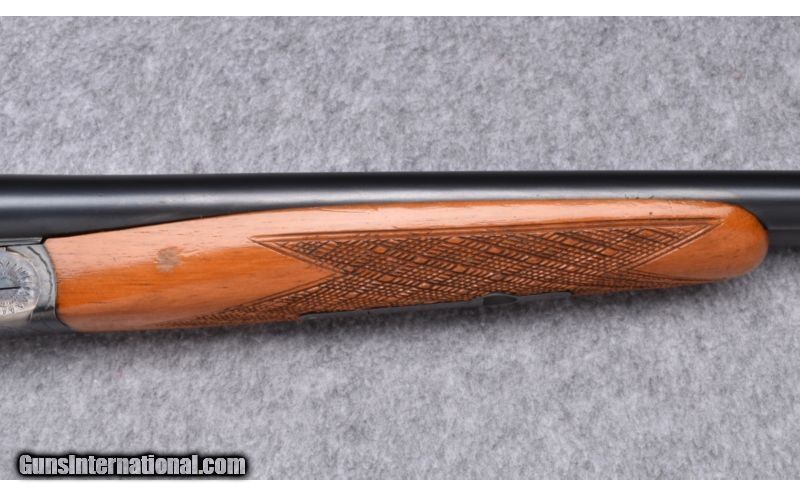 Description: Barrel blue shows a bit of wear at the muzzle edges. Remainder of metal remains excellent with excellent bores. Wood shows light use marks and remains free of cracks. SOLD Manufacturer: S/N 88XXX Caliber Info: 20 GA Chambers: 2 3/4" with Extractors Metal Condition: Very Good Wood Condition: Very Good Bore Condition: Excellent Barrels: 28 Triggers: Double Stock: Checkered Walnut Pistol Grip with Black Cap Stock Dimensions: 14 3/8" LOP Fore End: Checkered Walnut Butt Pad: Black Plastic Checkered Weight: 6 LB Sights: Brass Front Bead Chokes: Improved Cylinder/Modified Item Location: Wheeling, WV |
