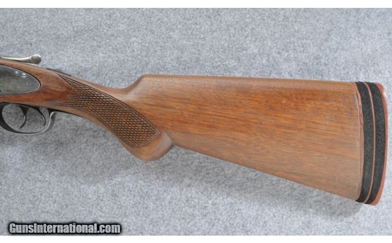 Description: New York Arms Co. was a trade name for shotguns made by the H.D. Folsom Arms Co. (Crescent Arms) SOLD Manufacturer: early 1900s Caliber Info: 12 Gauge Chambers: 2 3/4 Metal Condition: Faint case colors on the receiver & side locks, barrels have lost most of the orginal finish and have turned to brown patina or bare metal sheen. Wood Condition: The checkering on this shotgun seems unusual, like it was done sometime long after its manufacture and appears rather crude Bore Condition: Shows some streaking but may clean up nicely Barrels: 32" Solid Rib with Extractors Triggers: Double Stock: Checkered round knob pistol grip Stock Dimensions: 15" LOP, 1 3/8" DAC, 2 1/8" DAH Fore End: Checkered splinter with spring release Butt Pad: Jostam red rubber Weight: 8 lbs 8 oz Sights: Metallic front bead Chokes: Fixed Full & Modified Item Location: Grand Junction, CO |