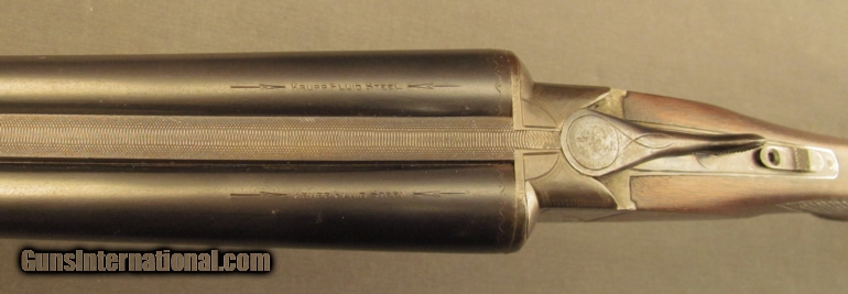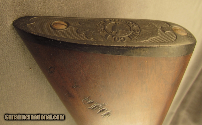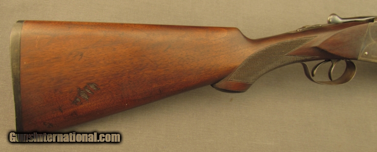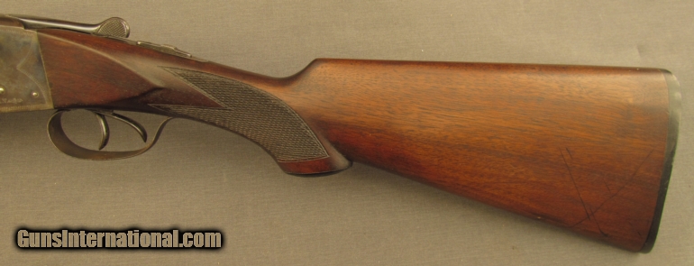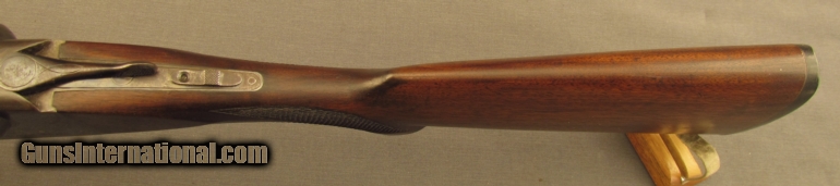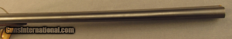 Description: S# 265851, 12 gauge 2 3/4 inch , 28 inch Krup fluid steel barrels choked full and cylinder, bright excellent bores. This 1915 manufactured flues grade 1 gun features the pointer engraving on action sides with simple line engraving on action and fences. Other features include a capped semi-pistil grip, this is a very early gun to have a capped grip, and flying duck butplate. Gun looks great with about 65% case colors on frame, strongest on sides and mostly silvered on bottom. barrel shows evenly scattered specks of staining with about 70% blue. Wood is sound with sharp checkering. Butstock shows scratches on left and a few small gouges on right with a little added oil wiped on long ago. LOP remains 13 3/4 inches with a drop of 1 3/4 and 3 inches. Action remains tight and locking lever stops at right side of center. FFL or C+R SOLD Curio/Relic: Yes Manufacturer: Ithaca Model: Double Serial Number: 265851 Caliber Info: 12ga Gauge Info: 12ga |