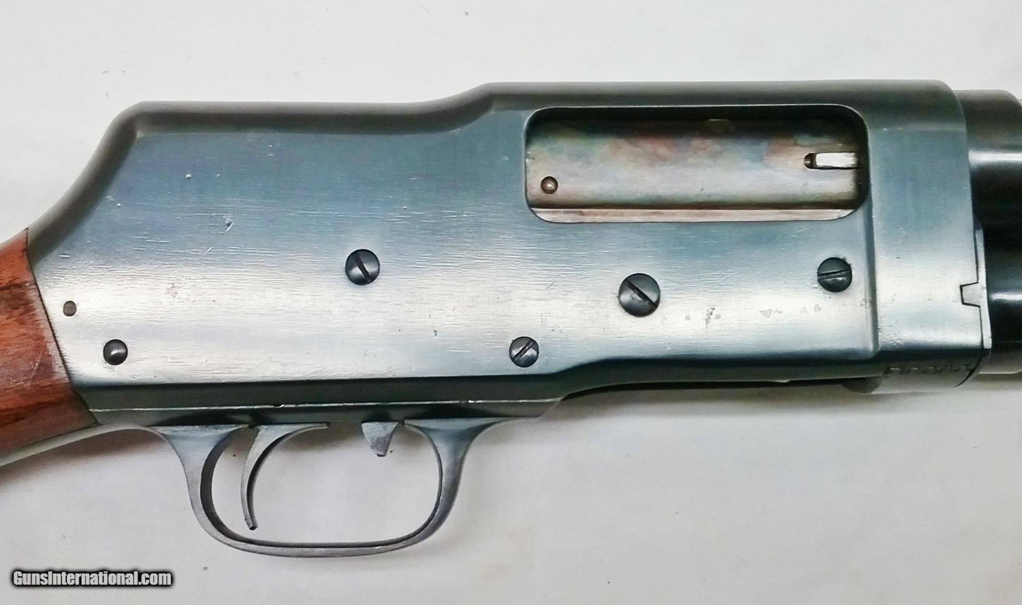Description: This 12 Ga Riverside Arms Model 520 Pump Shotgun is chambered for 2-¾” shells and features a 28” blued tapered round barrel that is in good condition and has a full choke. The bore is very good. The blued is in very good condition and features a color case hardened bolt. The checkered Walnut forend and buttstock are in good condition with the exception of some handling marks and finish wear. The buttstock features Winchester rubber recoil pad. Length of pull is 14”, overall length is 47-3/4”, and weight is 7.4 lbs. Our stock number is #C163. Will ship to any FFL in the United States, buyer pays freight and insurance. SOLD Manufacturer: Riverside Arms Model: 520 Bore: Rifled Condition: Very Good Metal Condition: Good Wood Condition: Very Good Bore Condition: Very Good Barrels: One Barrel Type: Tapered Round Action: Pump Action Triggers: One Stock: Walnut Fore End: Walnut Butt Pad: Rubber LOP: 14 Finish: Blued Sights: Bead Chokes: Full Item Location: OR |
